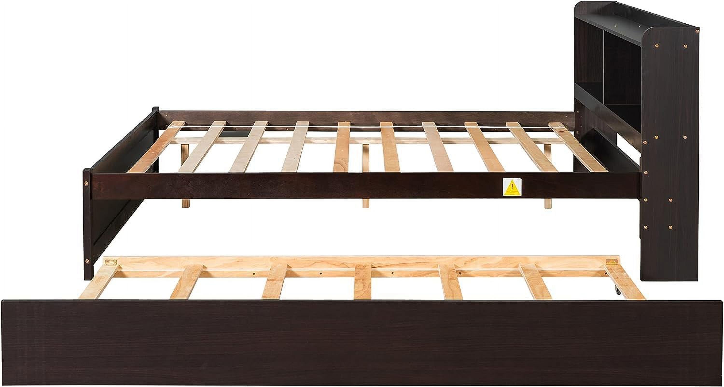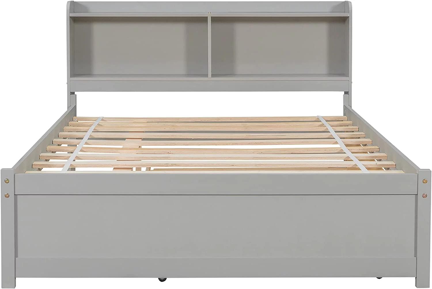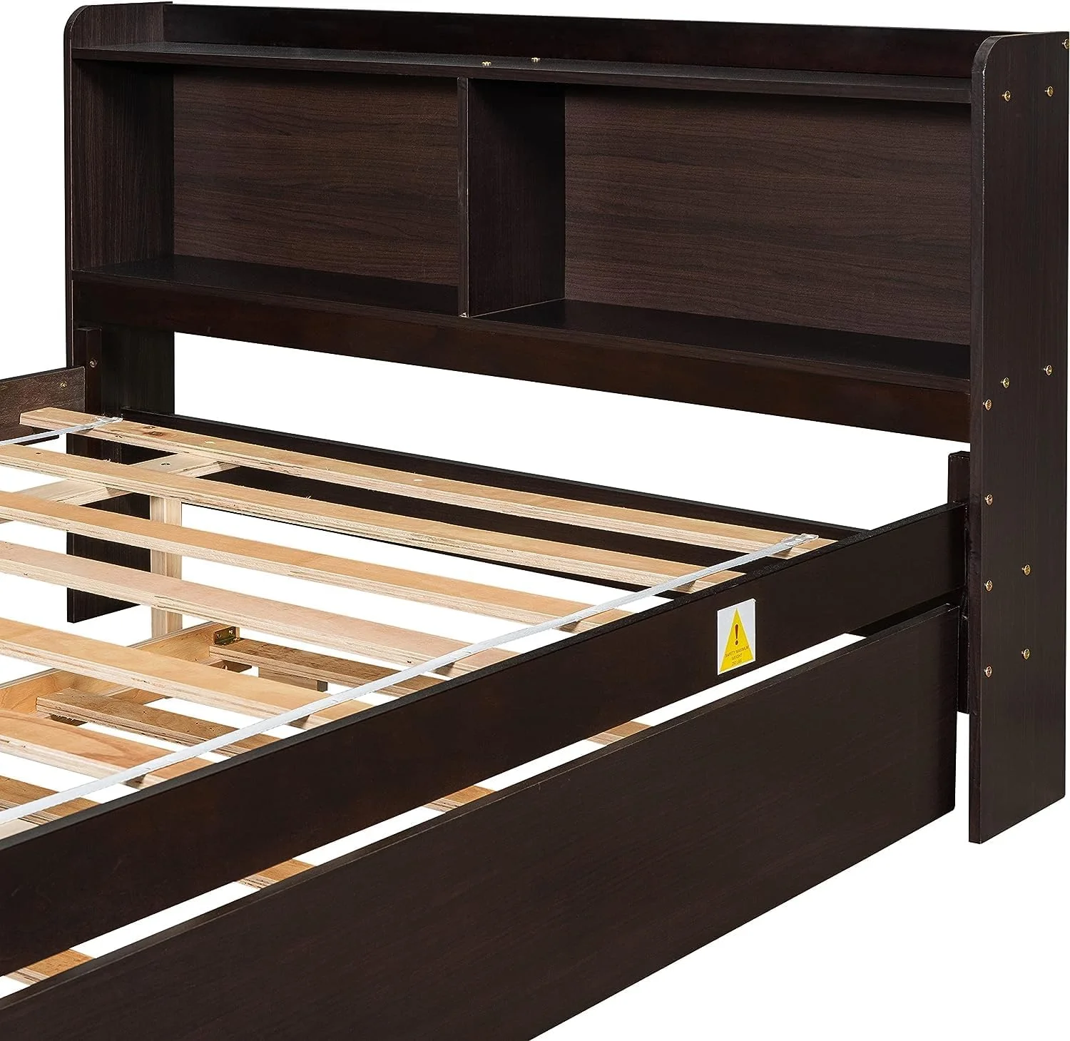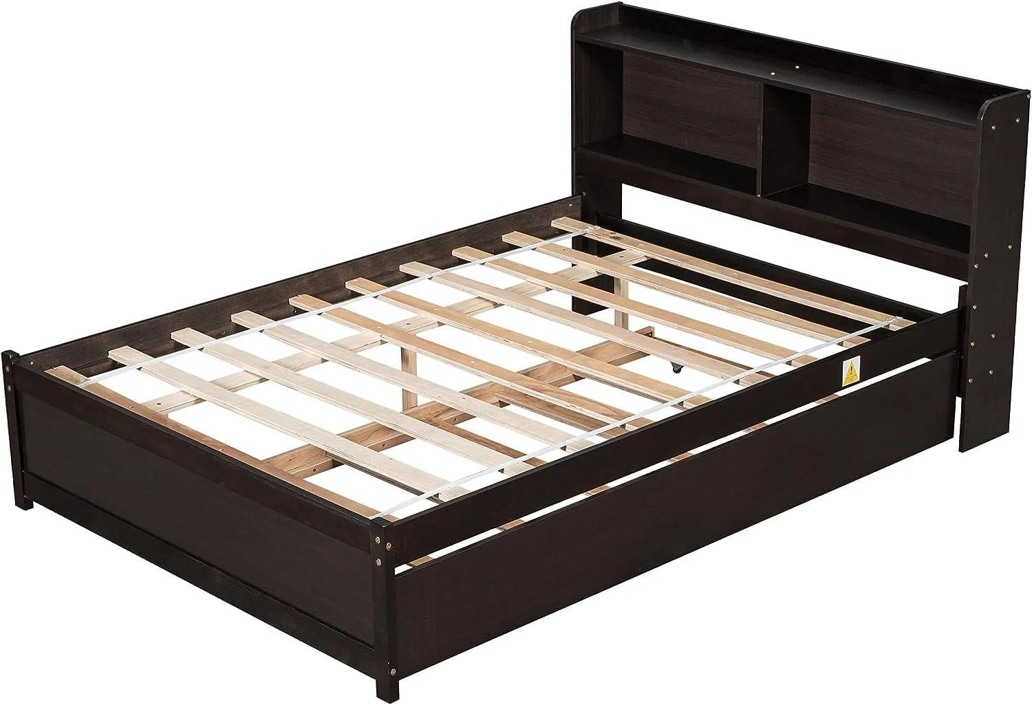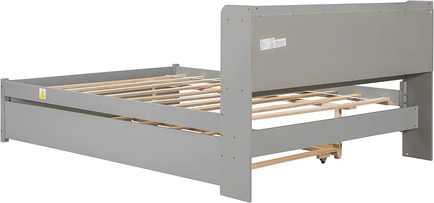 Full Size Solid Wood Platform Bed Frame with Trundle - Perfect for Limited Space, Kids, Teens, Adults, White