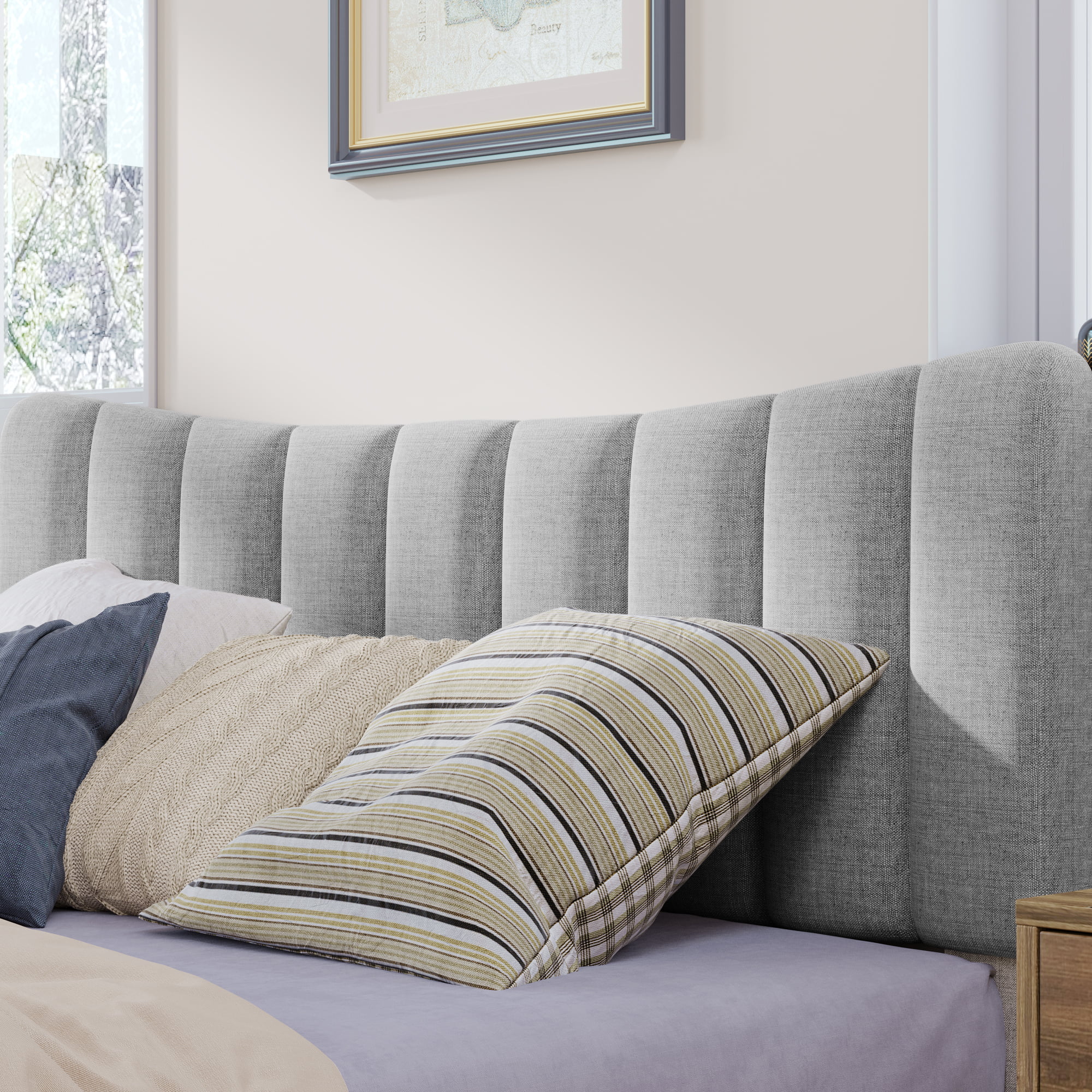 Docooler Upholstered Platform Bed Frame with Vertical Channel Tufted Headboard, No Box Spring Needed, Full,Gray