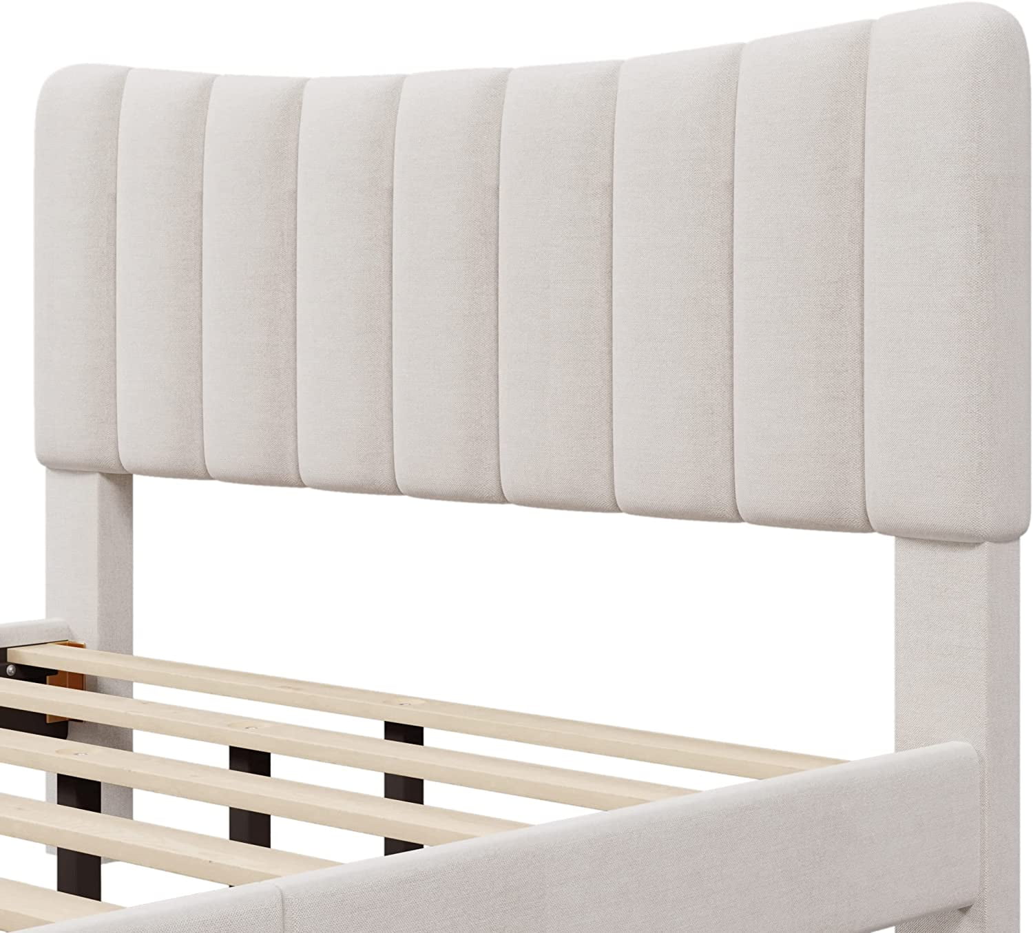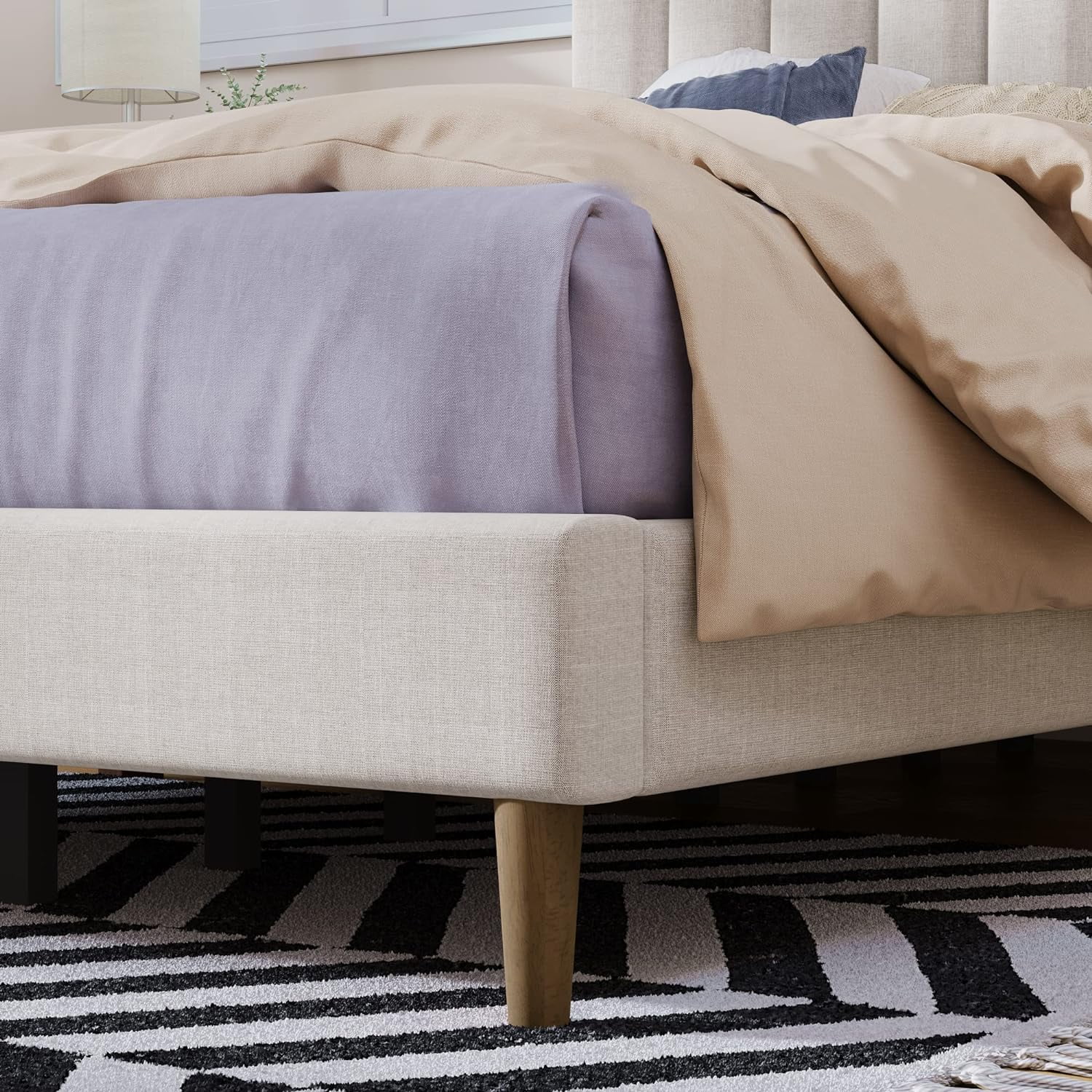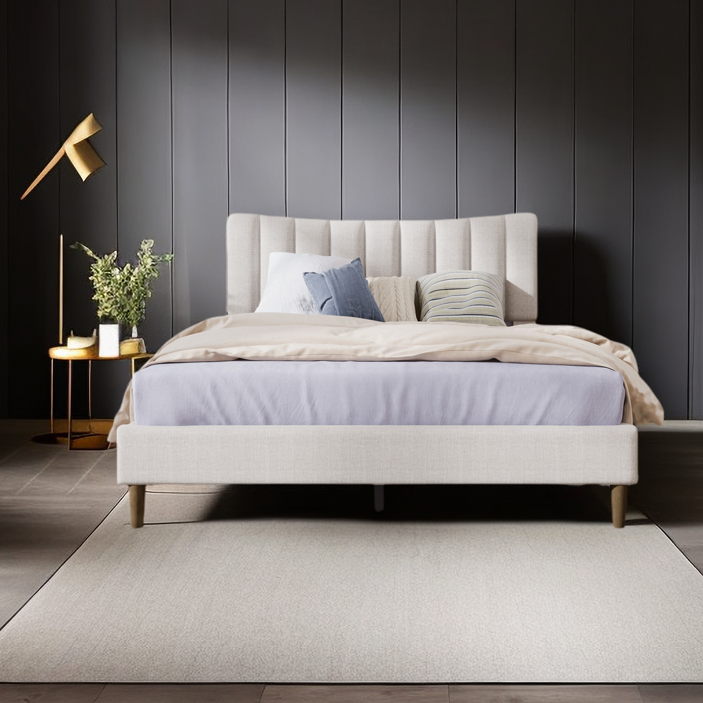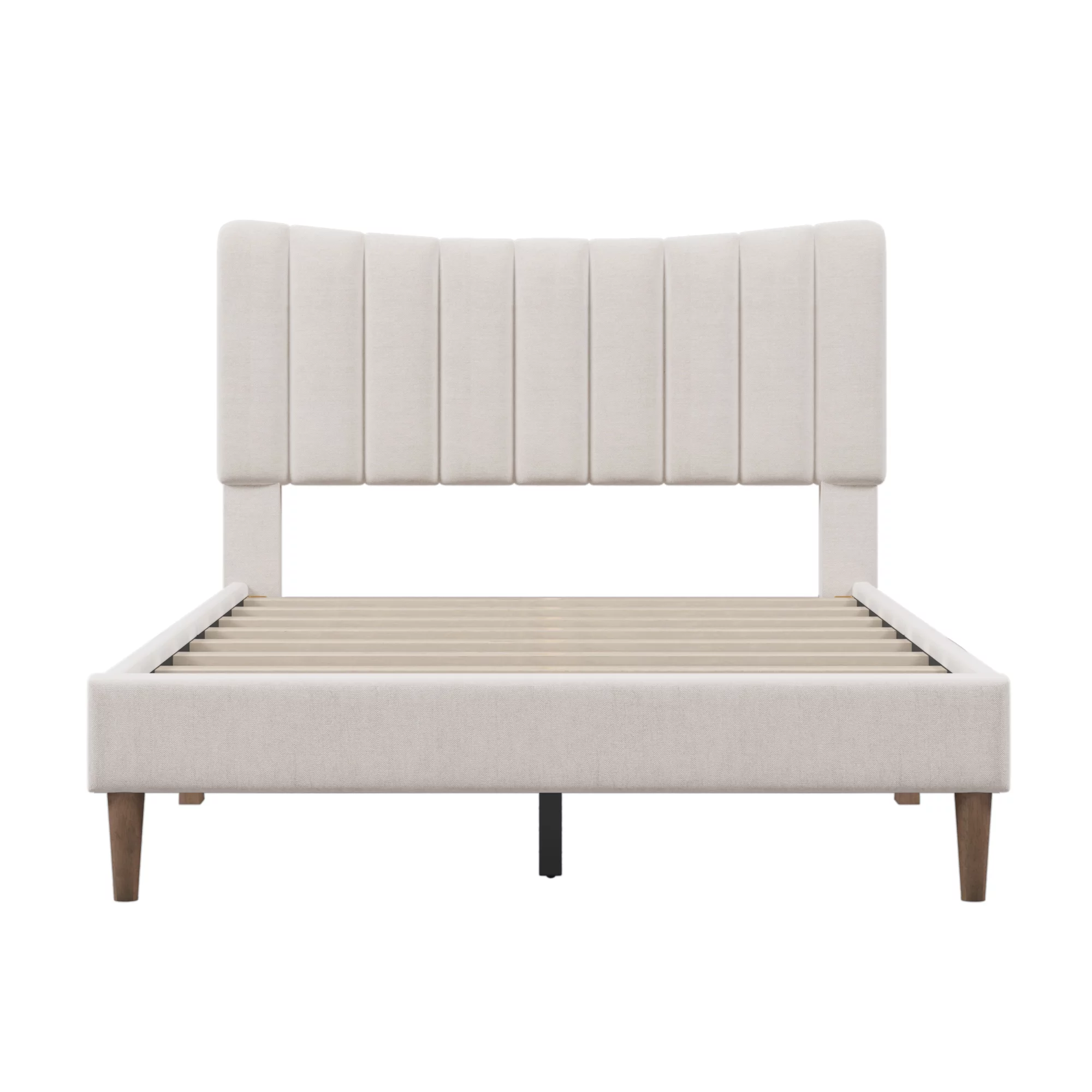 Saim Upholstered Platform Bed Frame with Vertical Channel Tufted Headboard, No Box Spring Needed, Queen,Cream