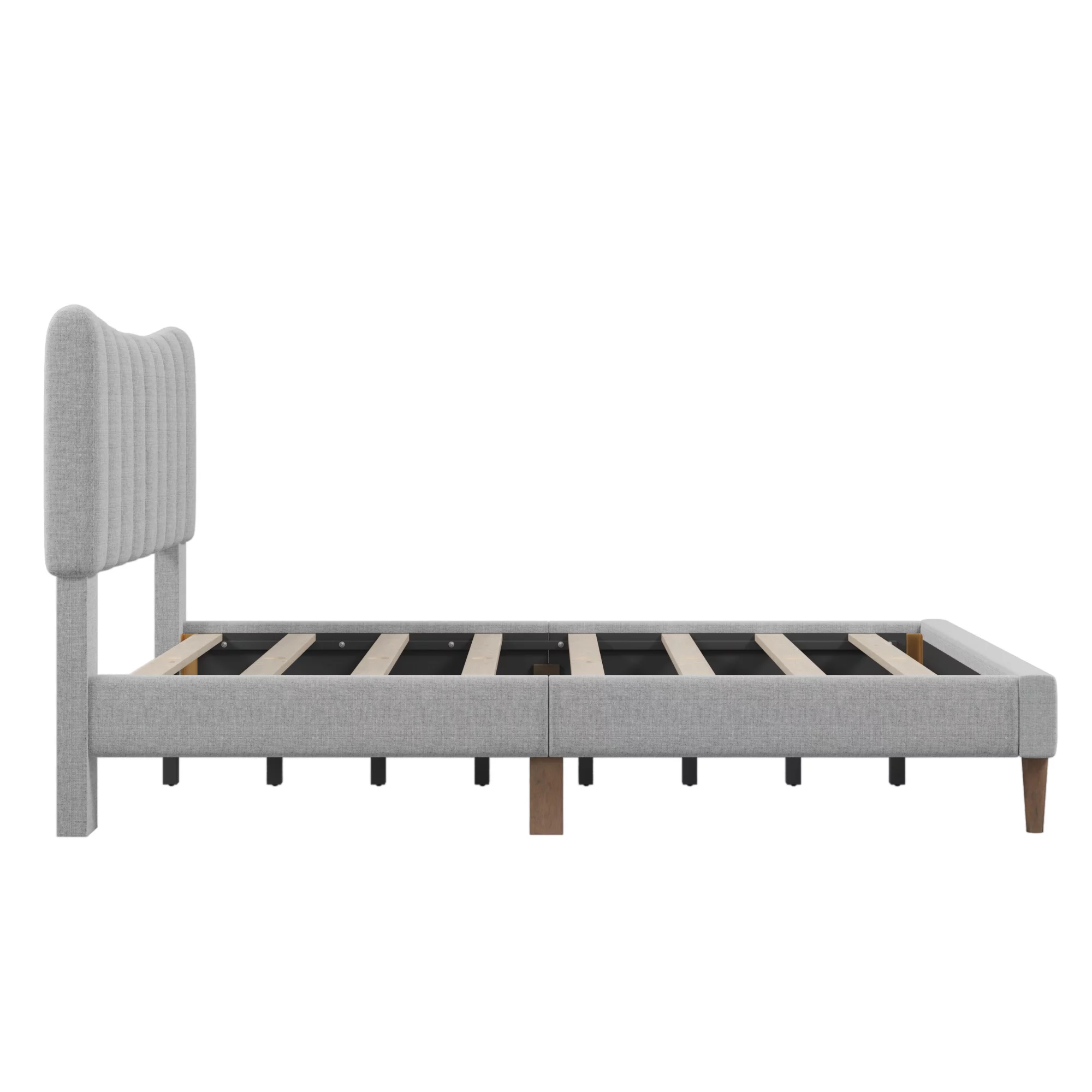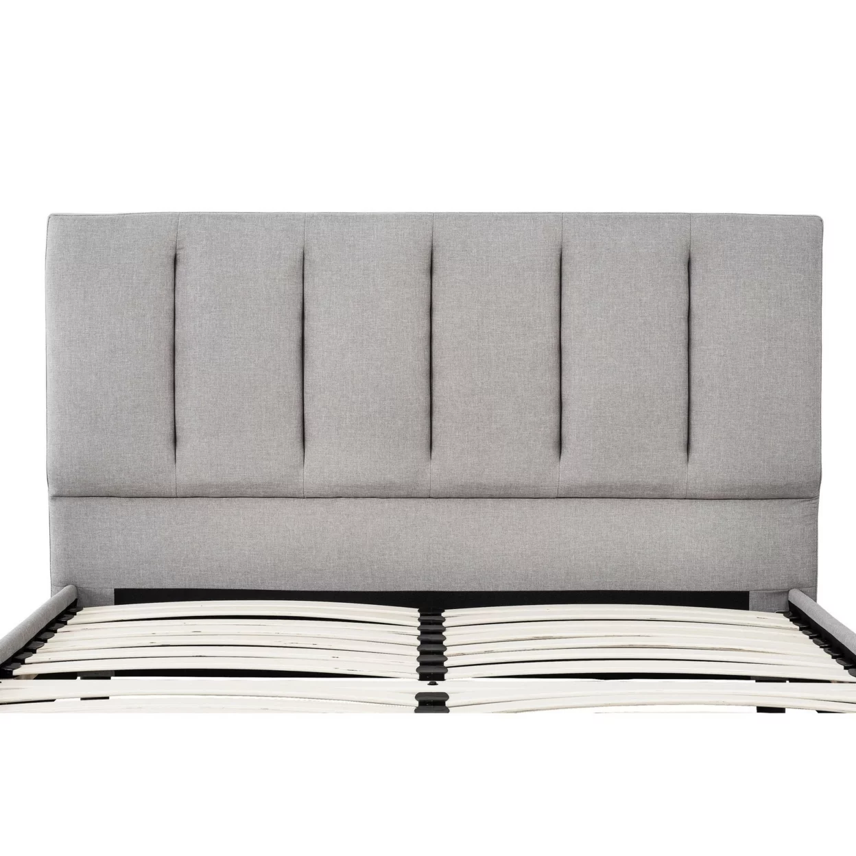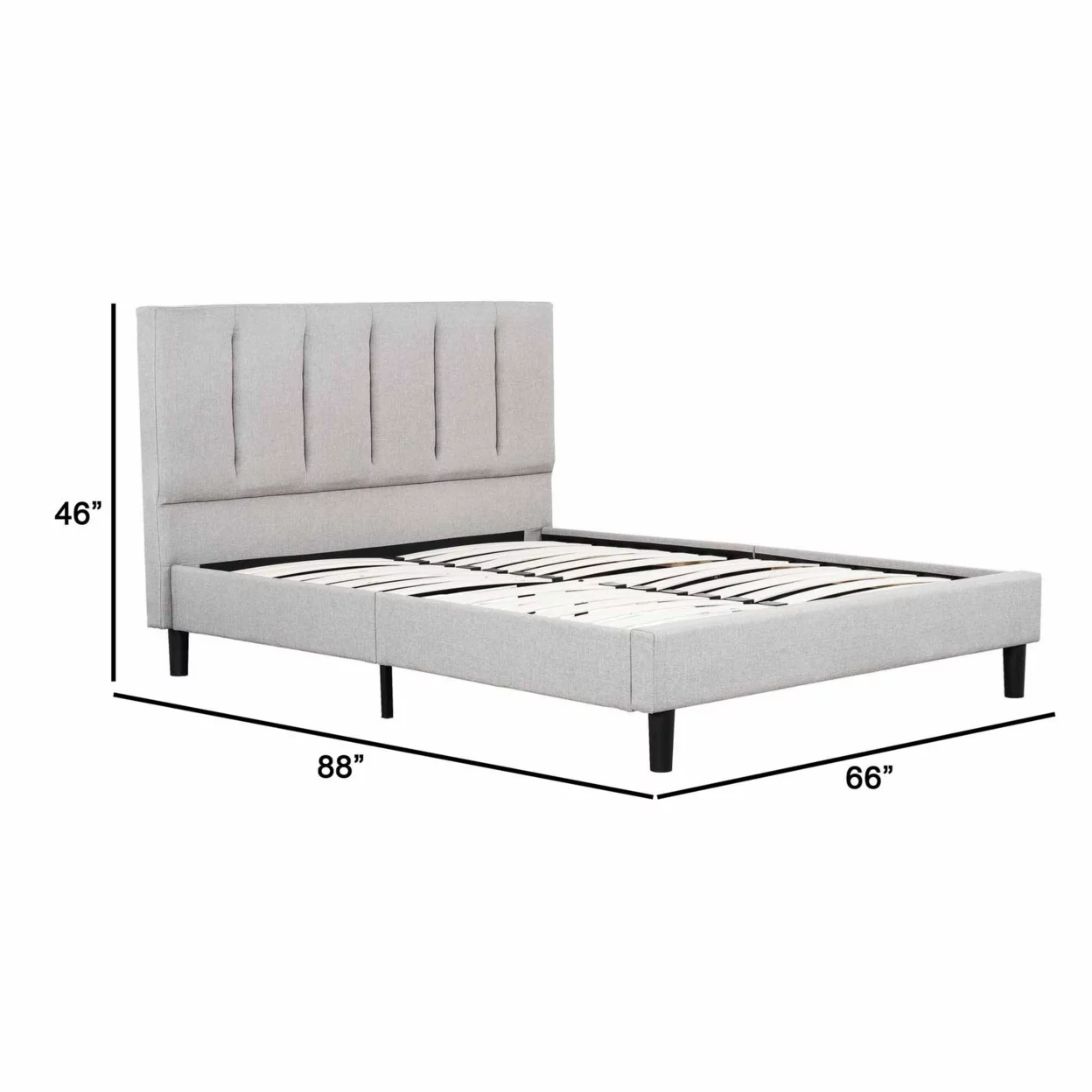 Heli Queen Bed, Gray Linen Upholstered Frame, Vertical Tufted Headboard- Saltoro Sherpi