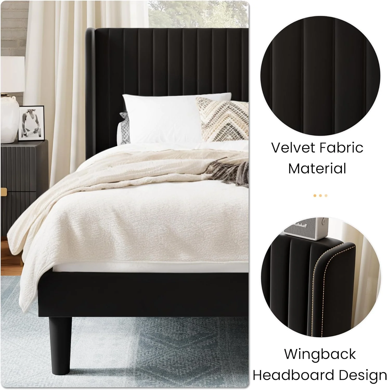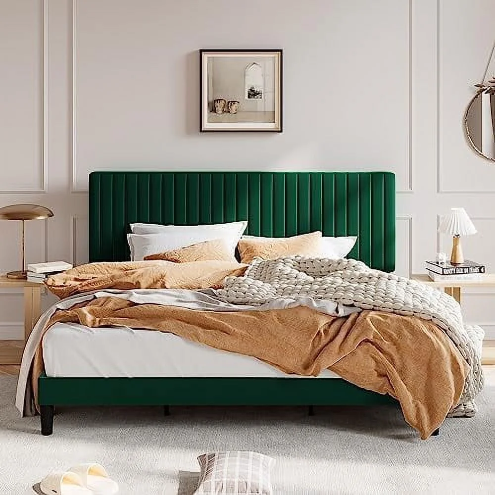 Valentina Velvet Platform Bedframe-Nailhead Trim-King- Queen- Full- Twin Size-Inspired Home