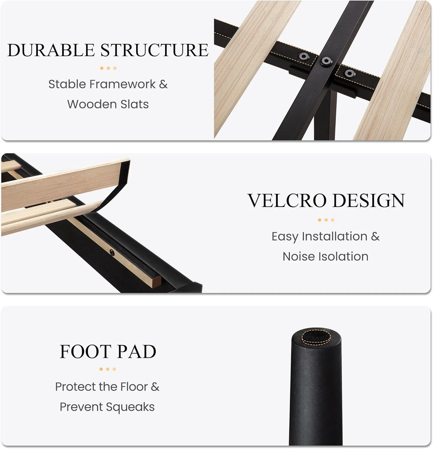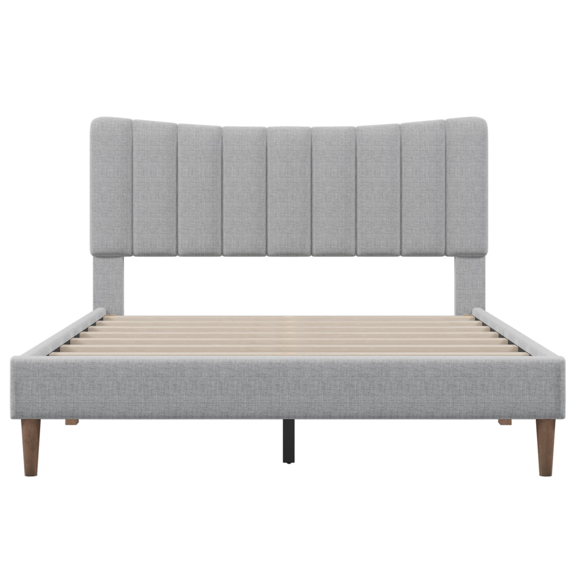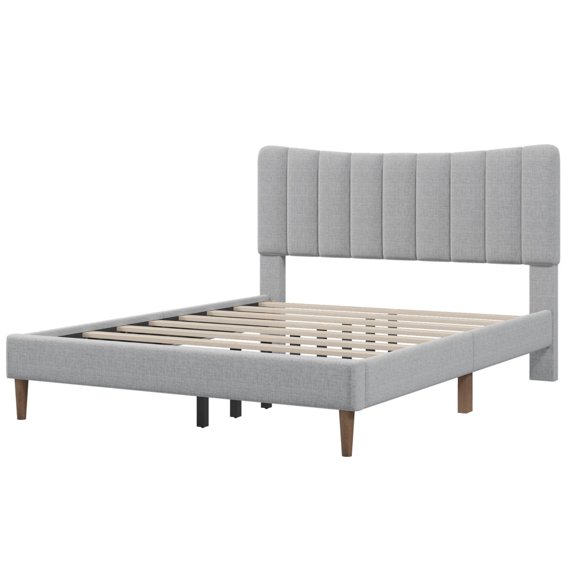 Upholstered Platform Bed Frame with Vertical Channel Tufted Headboard, No Box Spring Needed, Queen