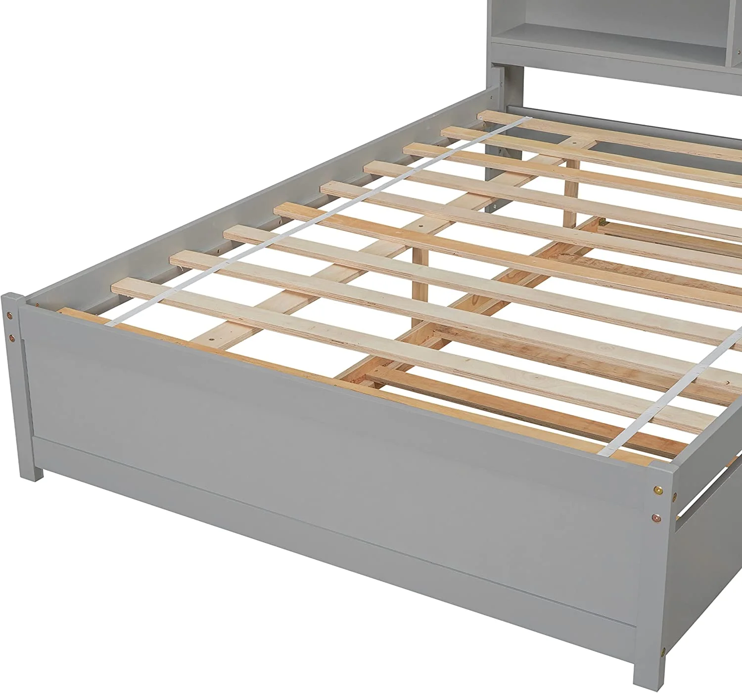 Full Bed With Storage Drawers And Trundle, Solid Wood Platform Bed Frame For Kids Teens Adults (Full Size, White)