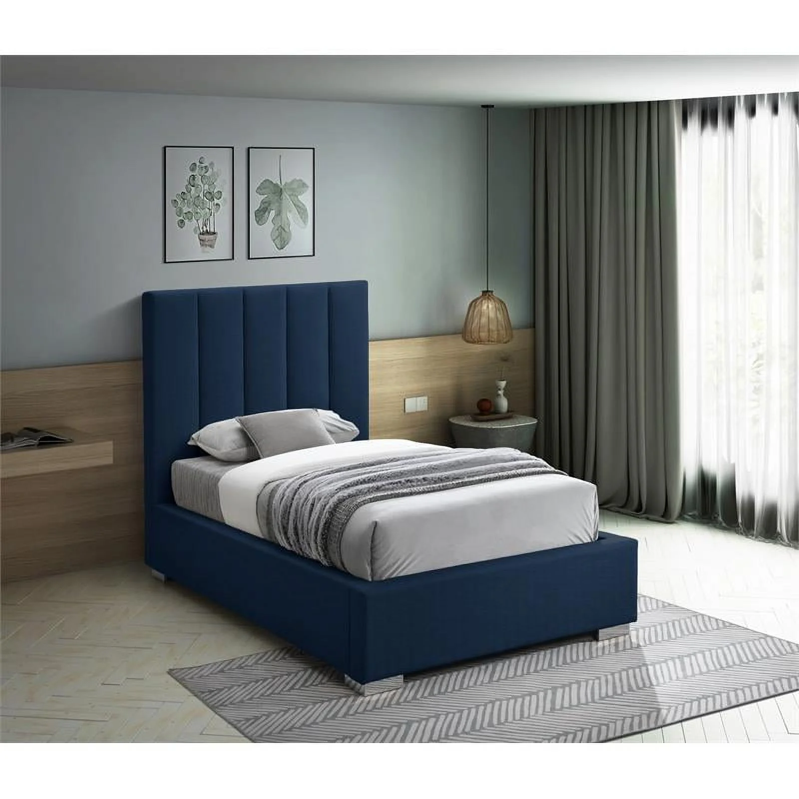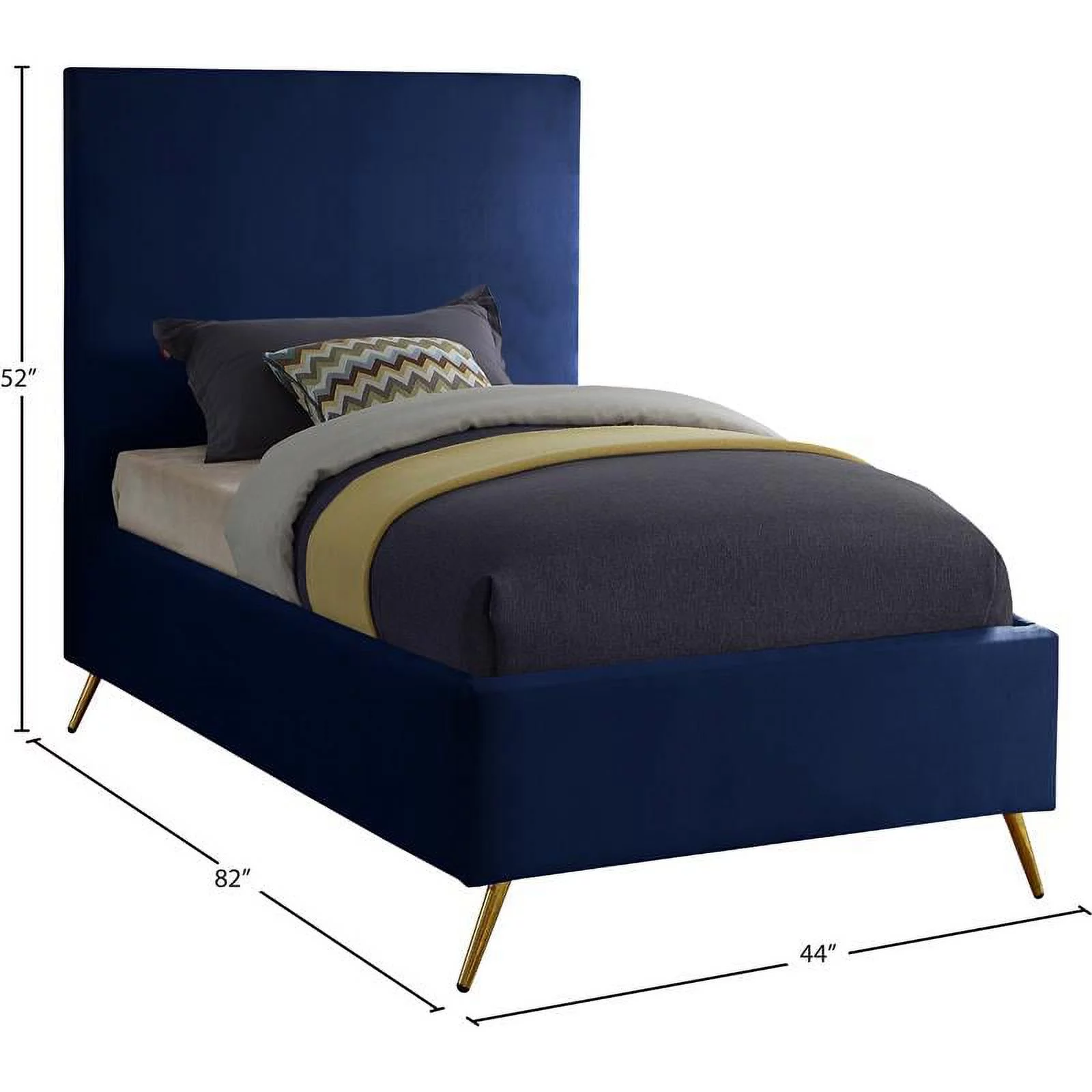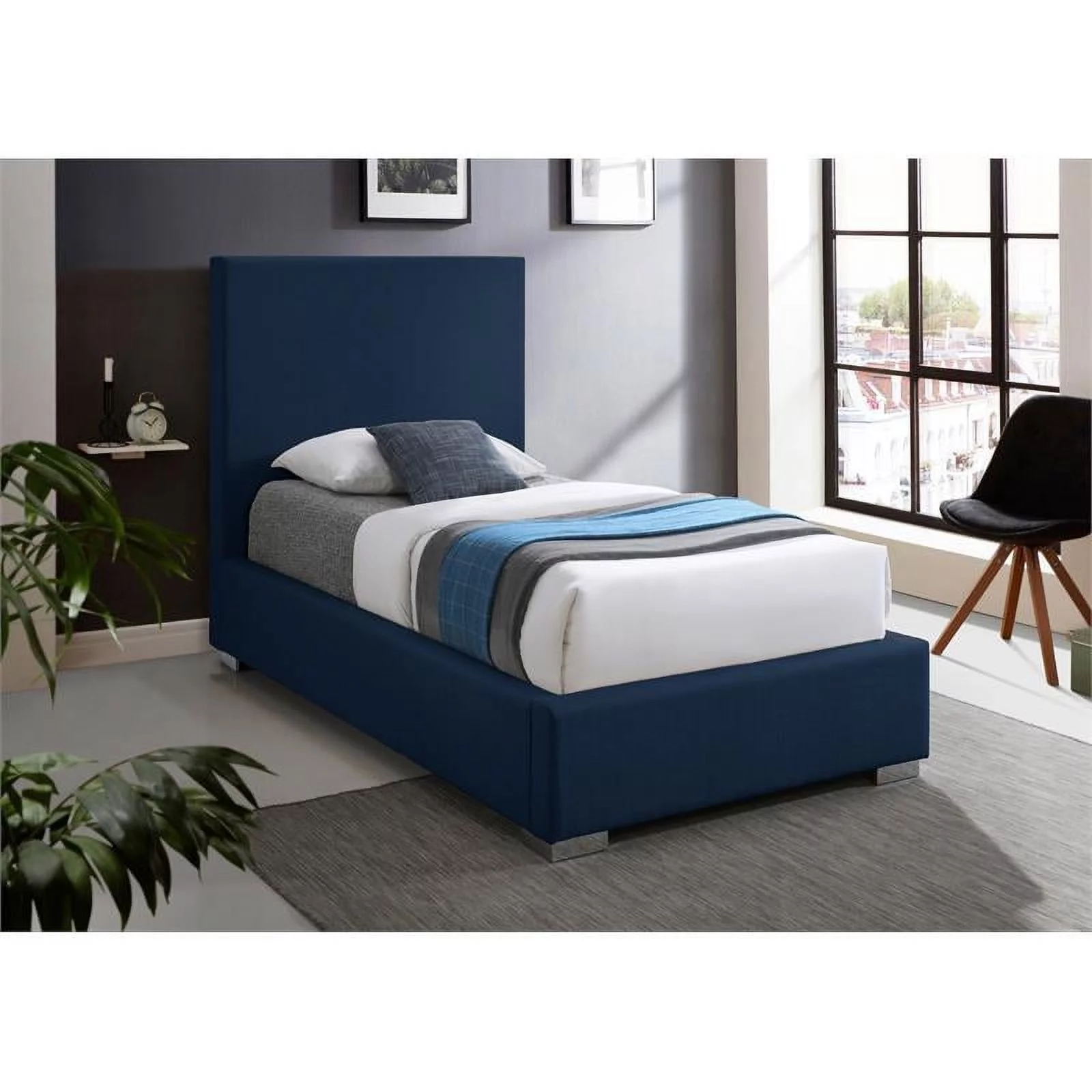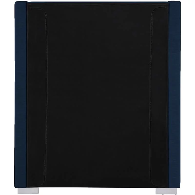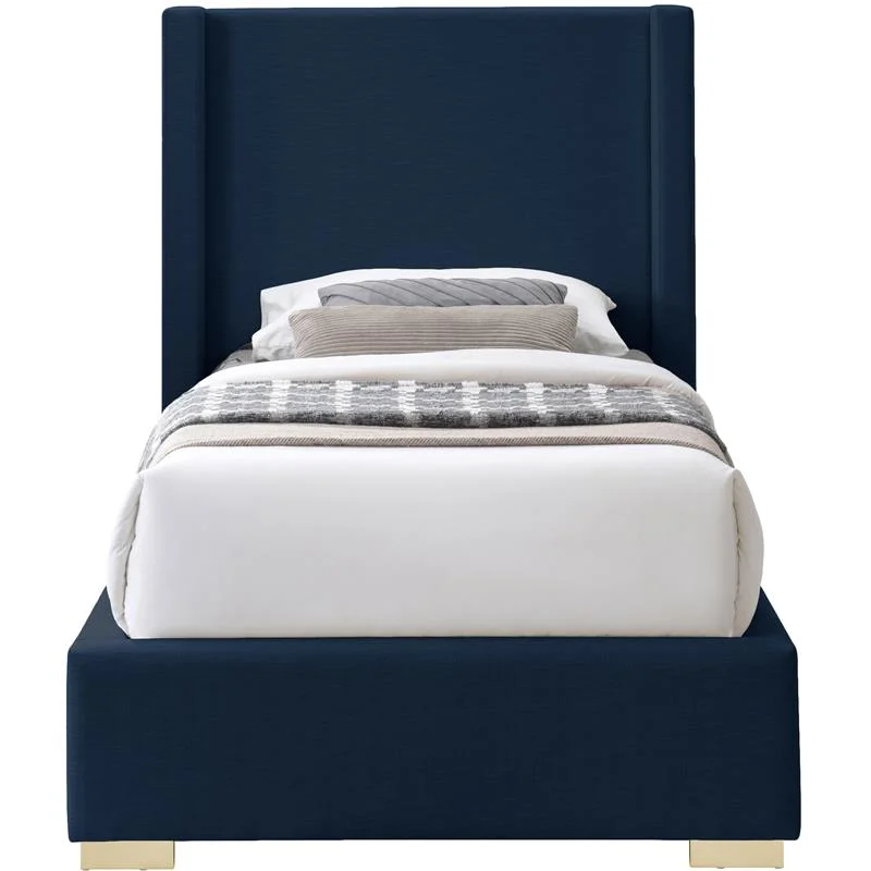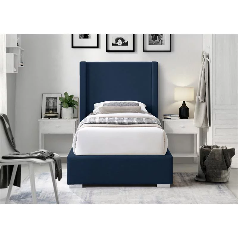 Contemporary Modern Urban Designer Bedroom Twin Size Bed Frame, Fabric, Navy Blue, Box Spring Required