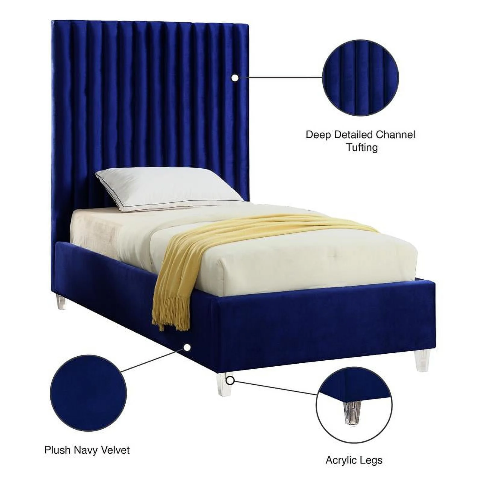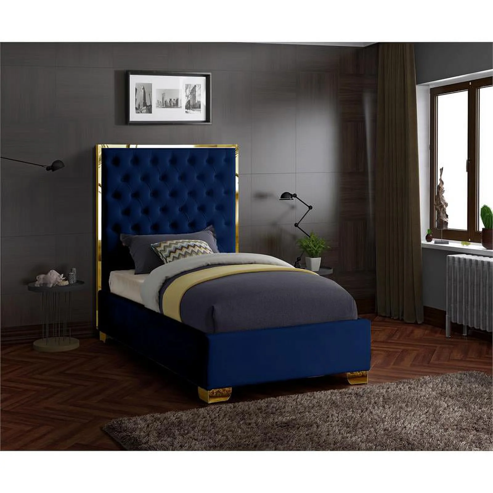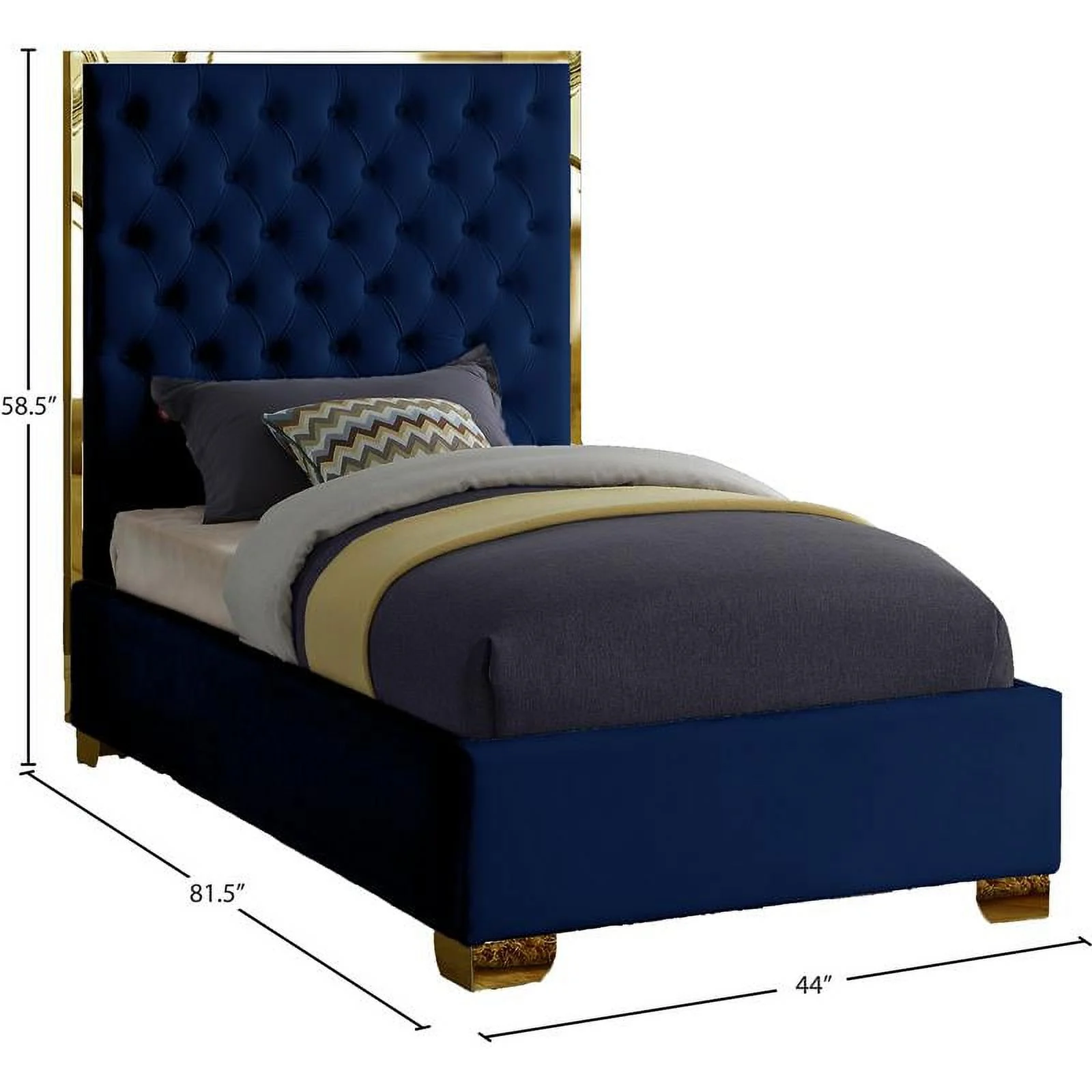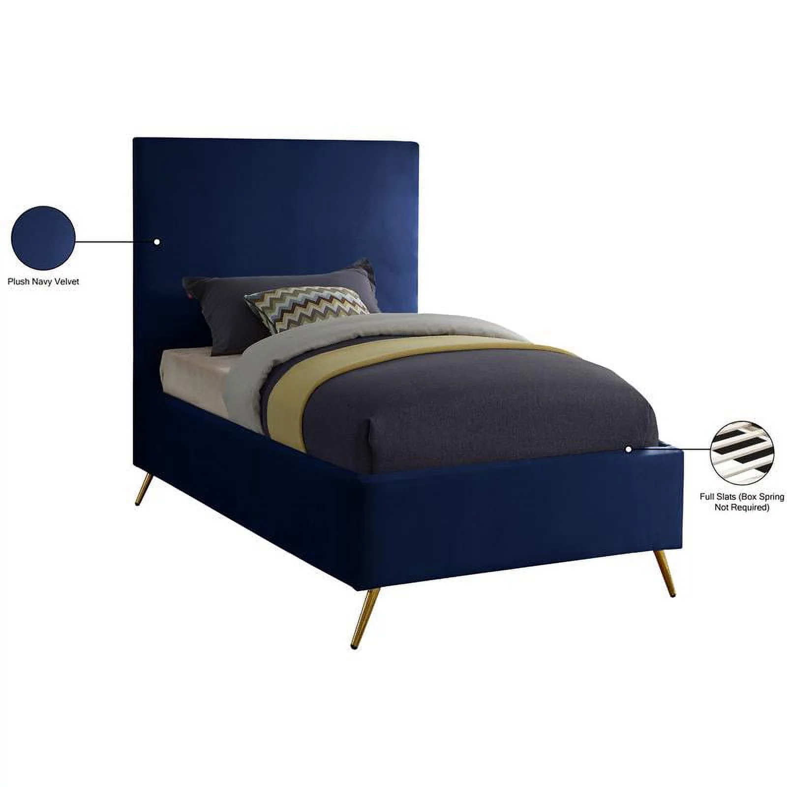 Contemporary Modern Urban Designer Bedroom Twin Size Bed Frame, Fabric, Navy Blue, Box Spring Required