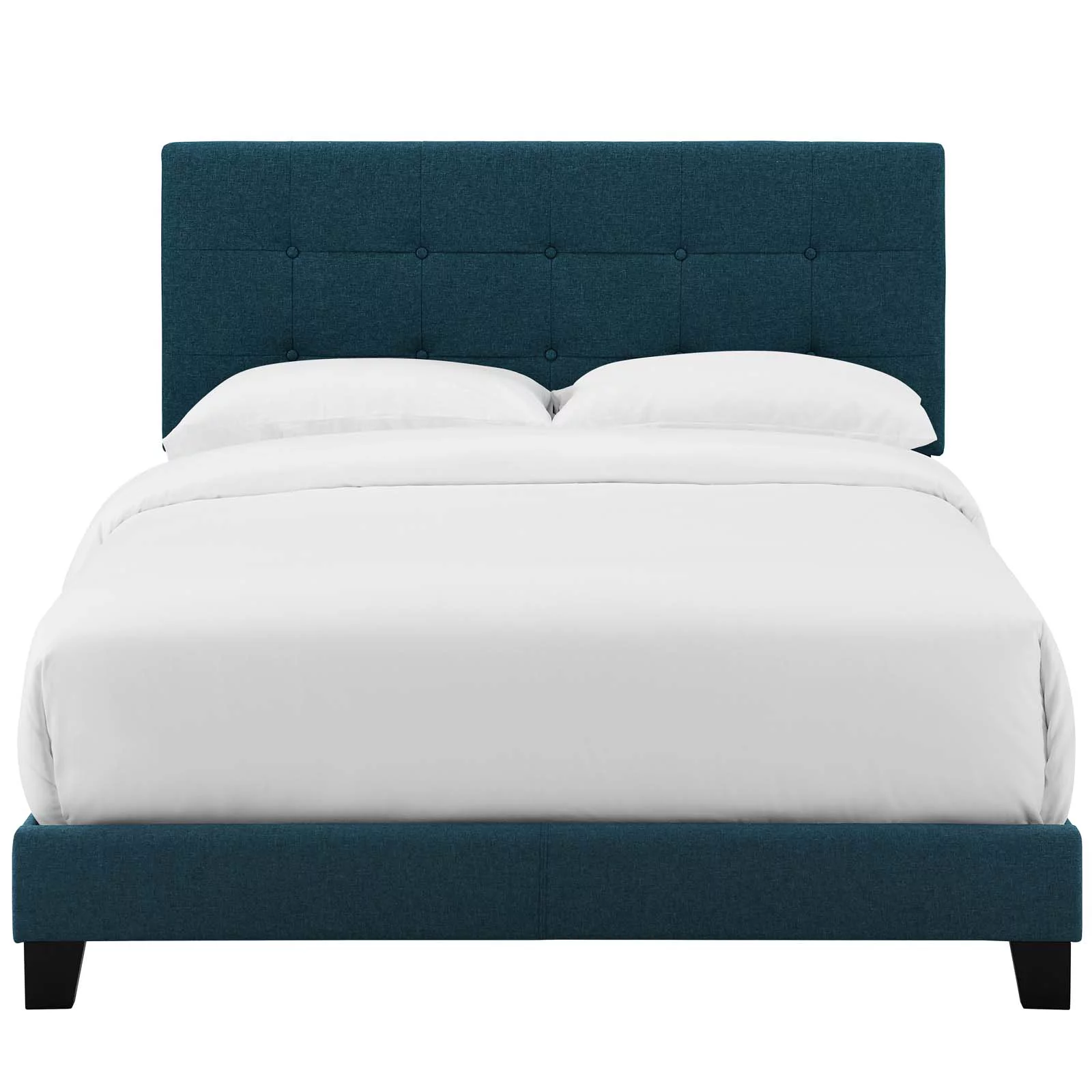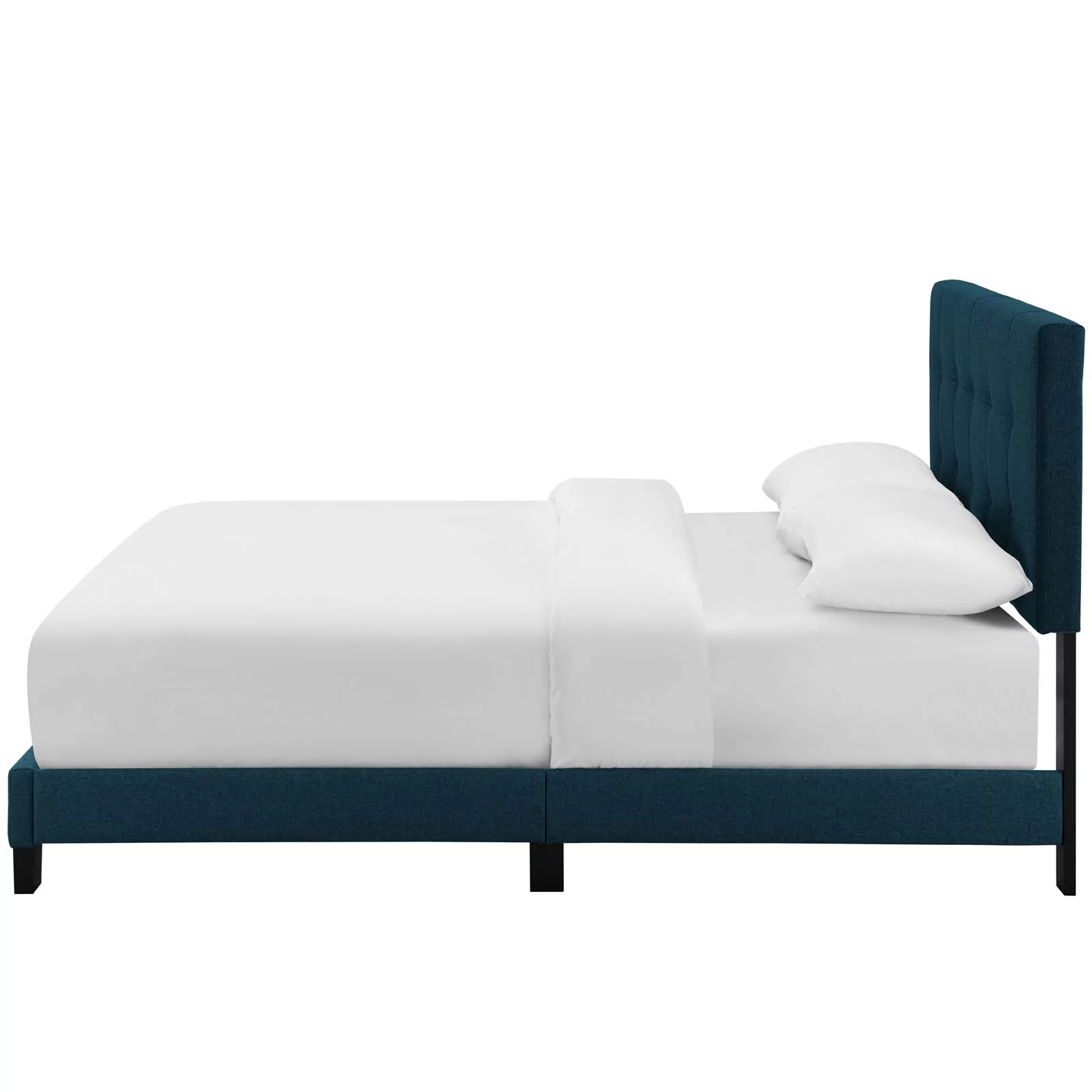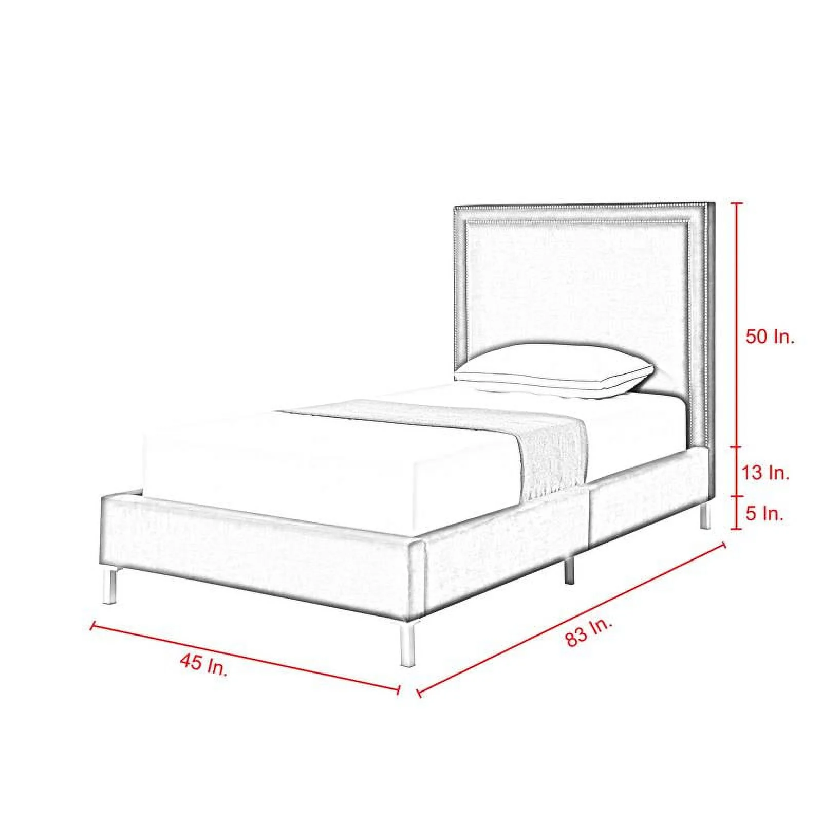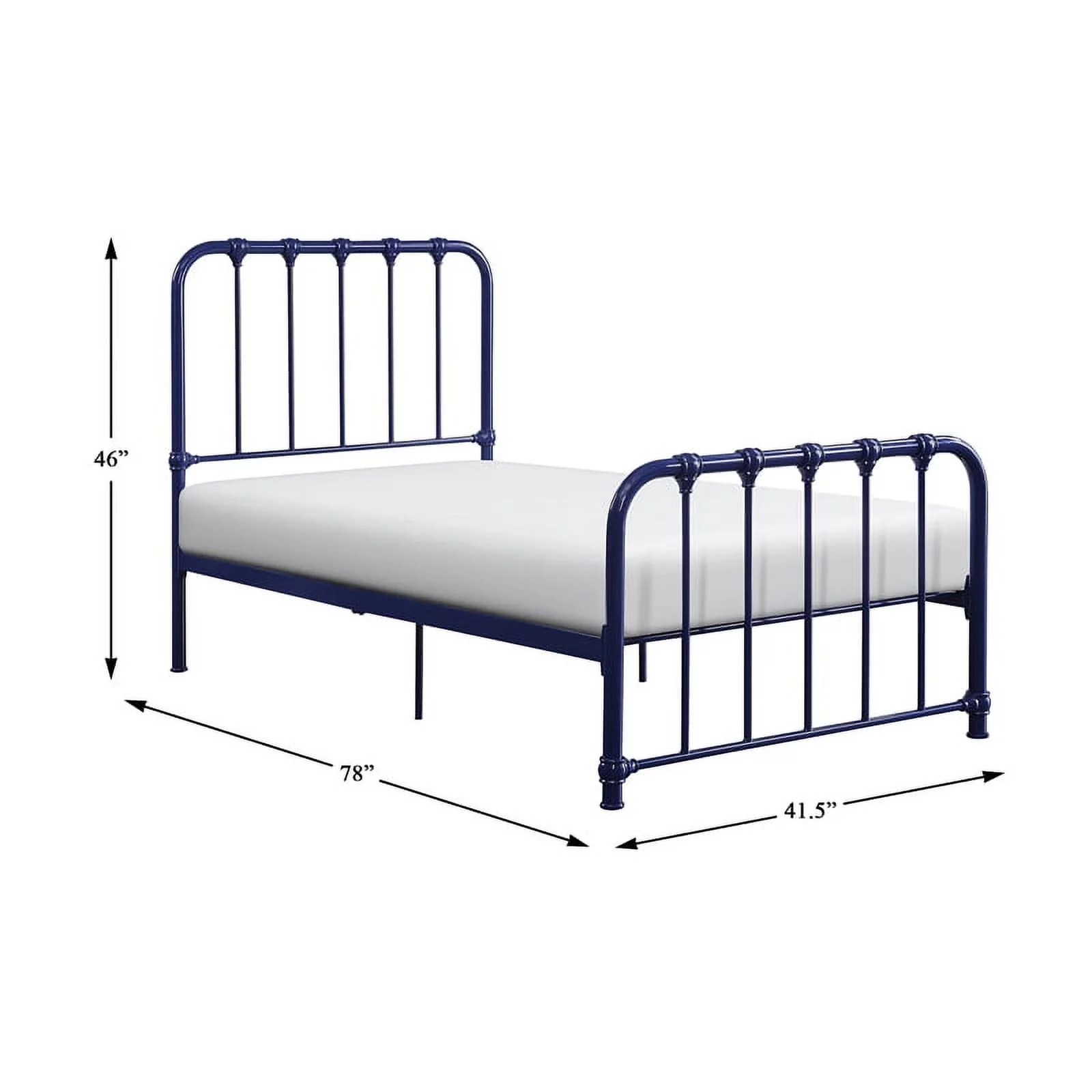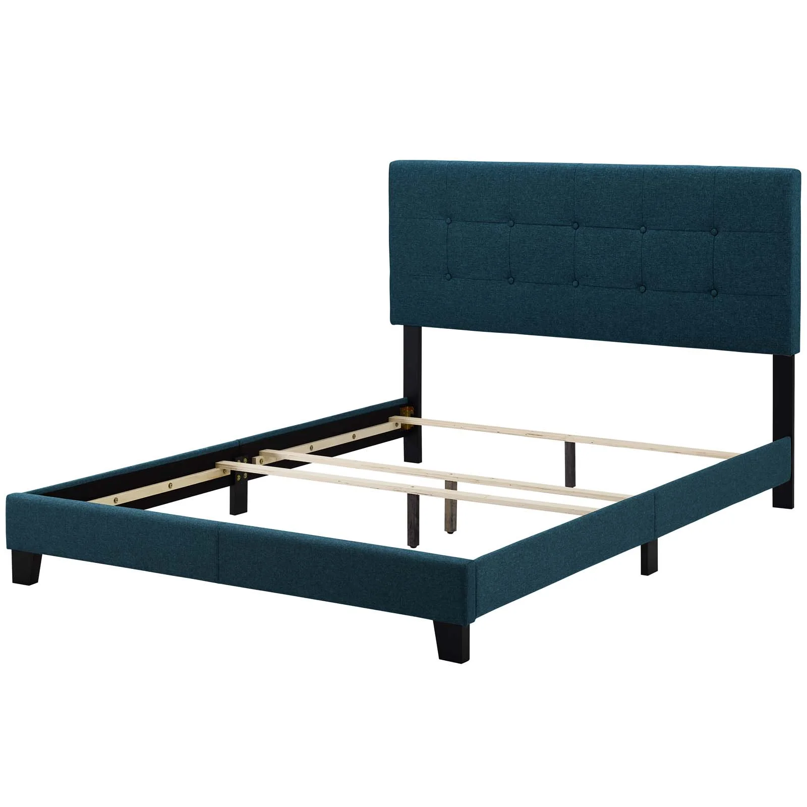 Contemporary Modern Urban Designer Bedroom Twin Size Bed Frame, Fabric, Navy Blue, Box Spring Required