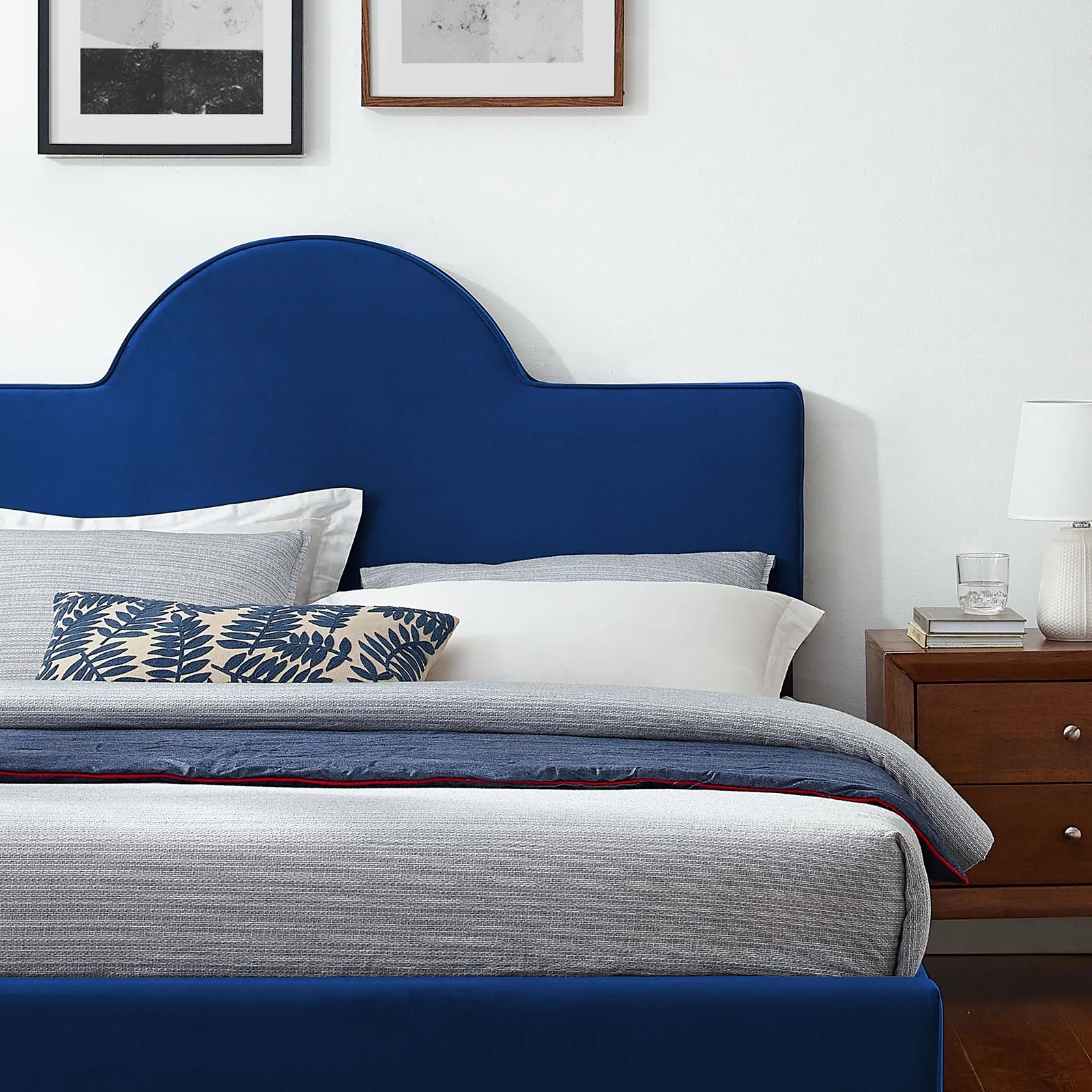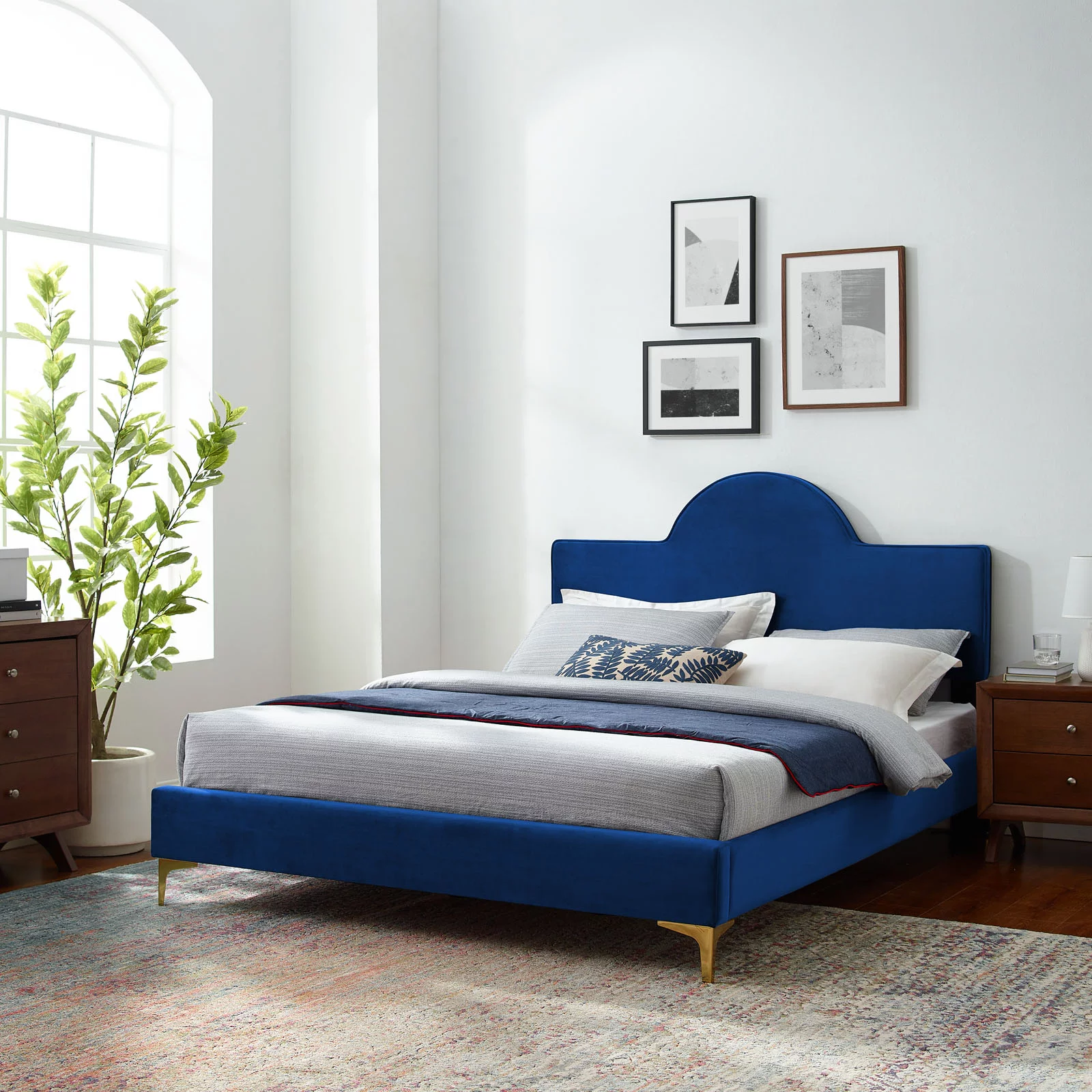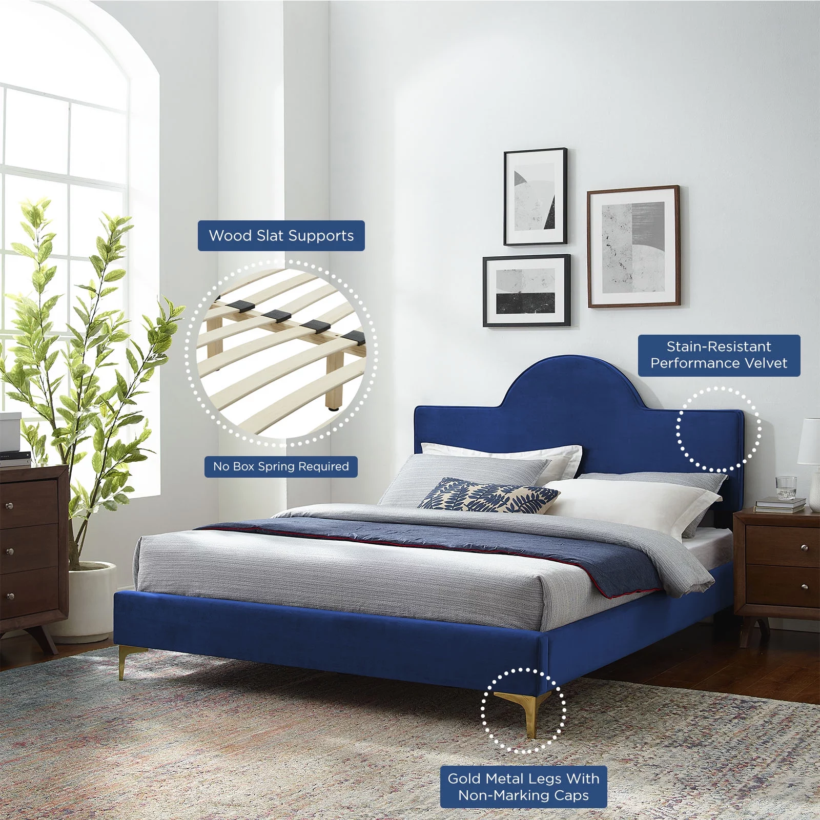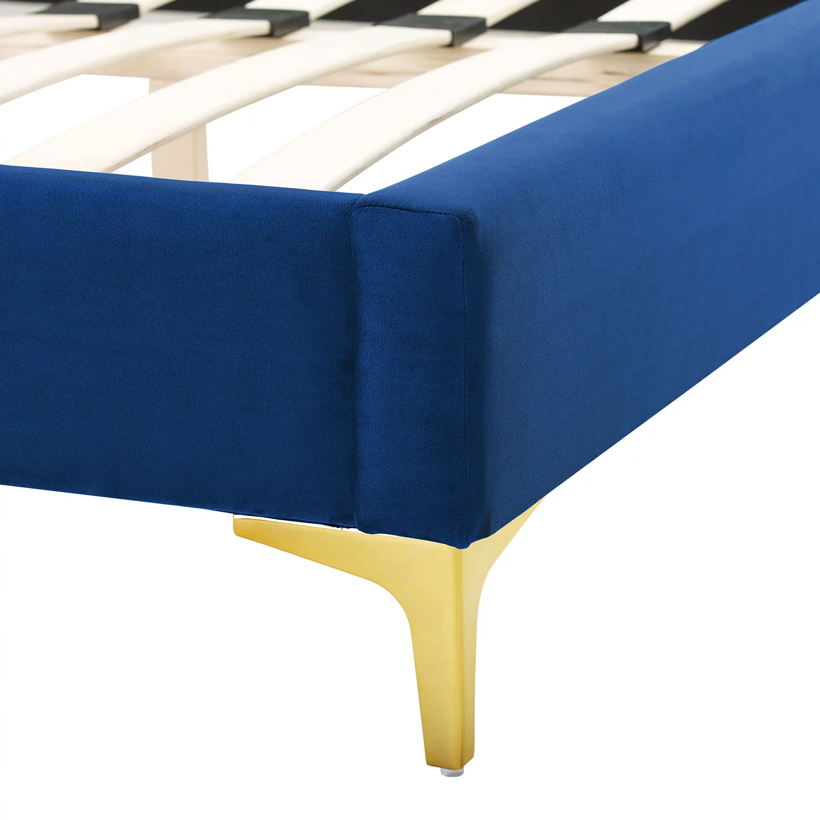 Contemporary Modern Urban Designer Bedroom Twin Size Bed Frame, Fabric, Navy Blue, Box Spring Required