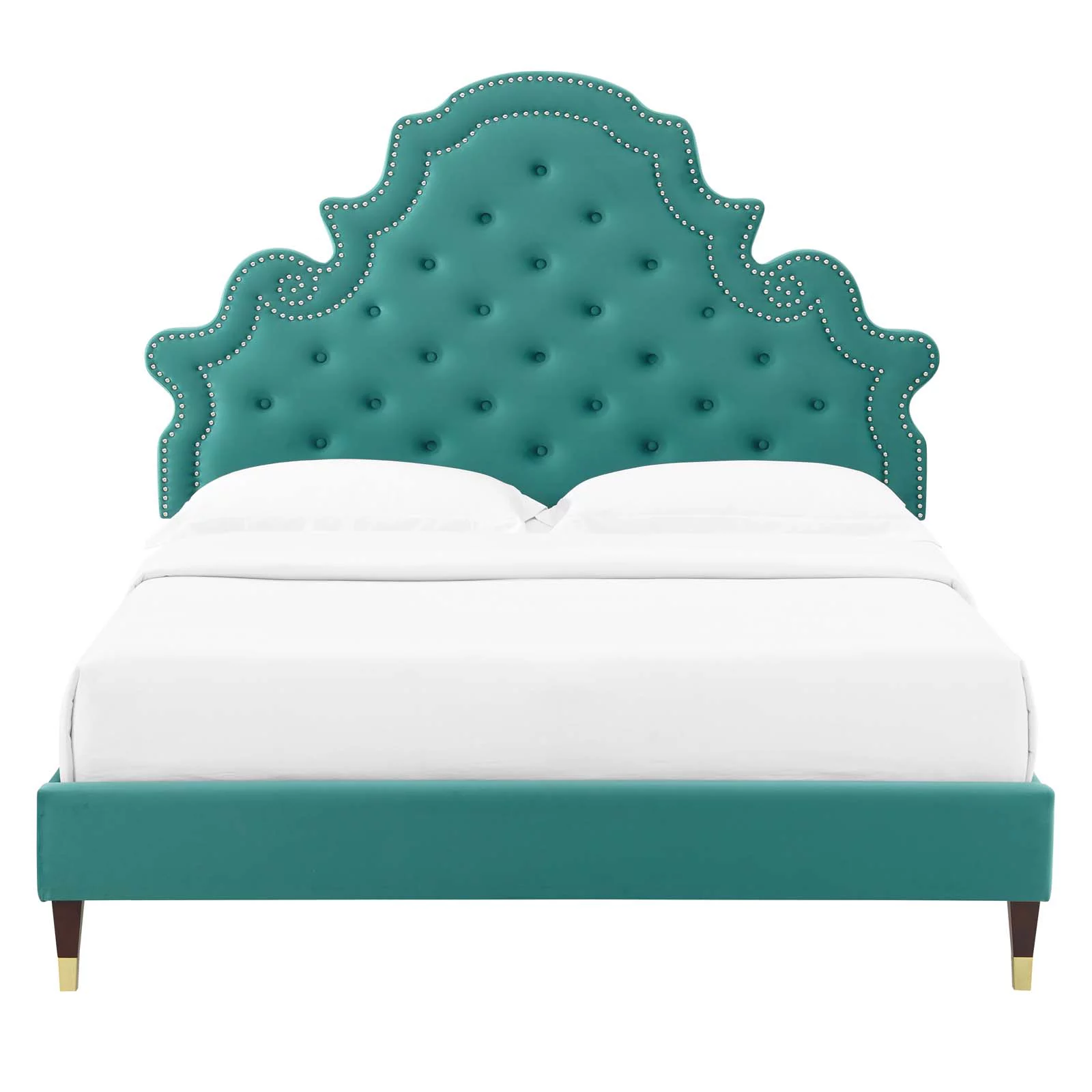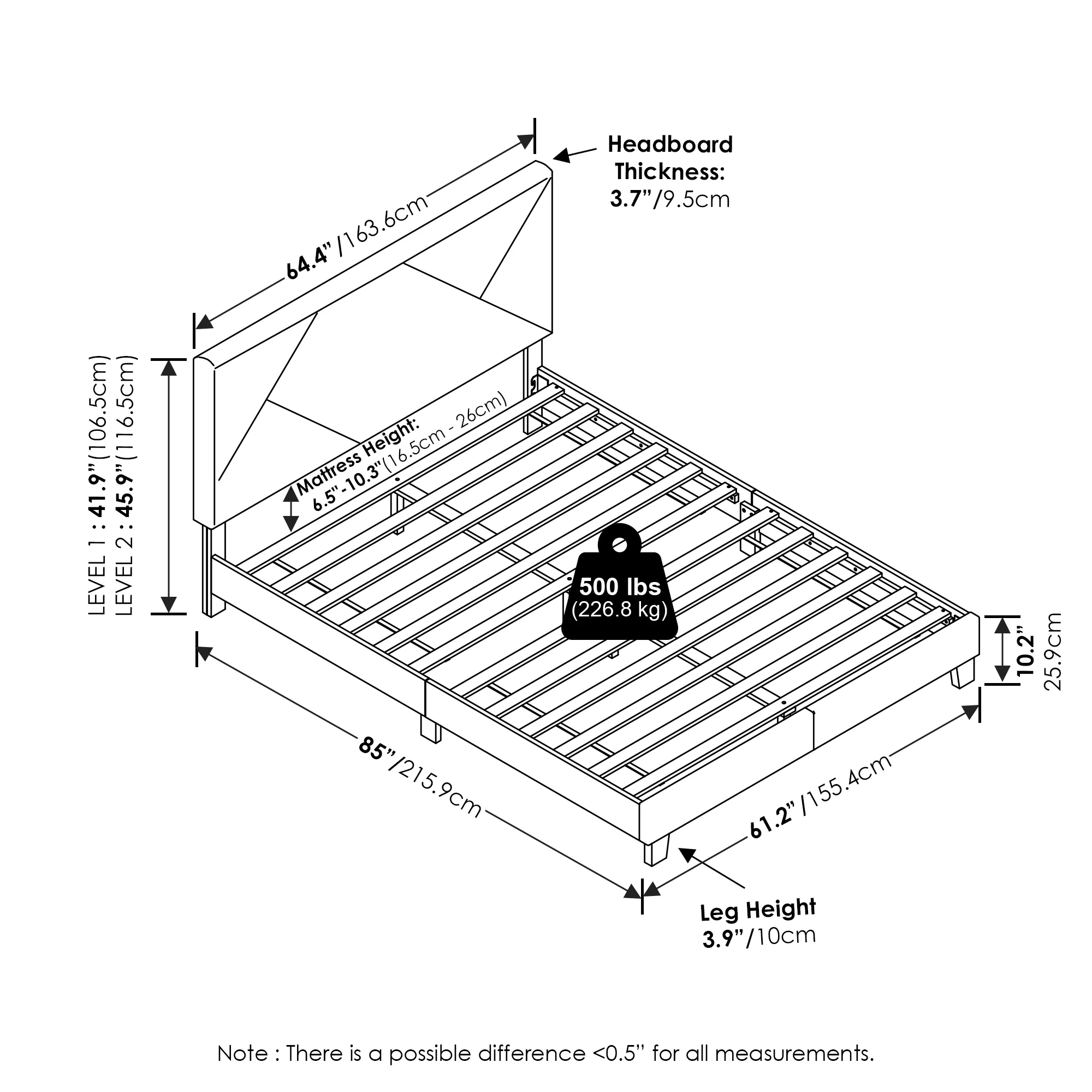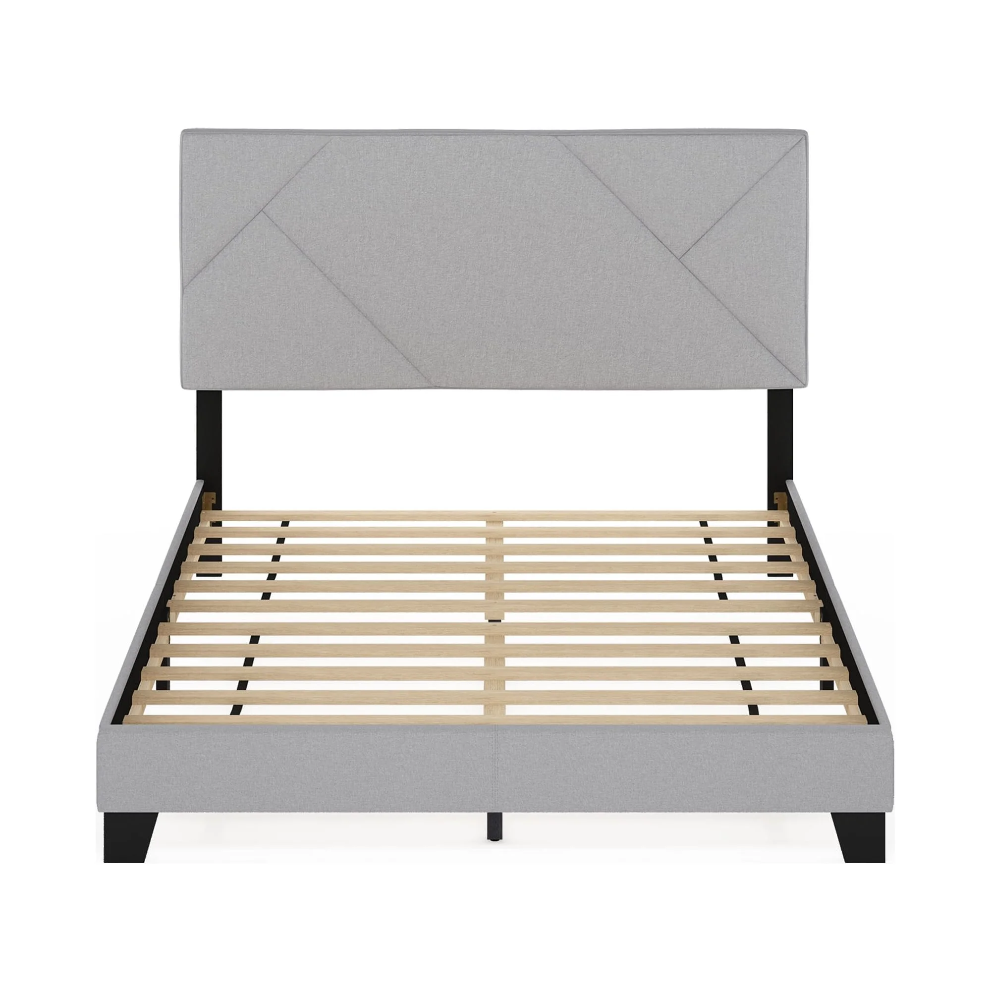 Furinno Skylar Geometric Design Headboard Bedframe, 12PC Slat Style, Glacier, Queen