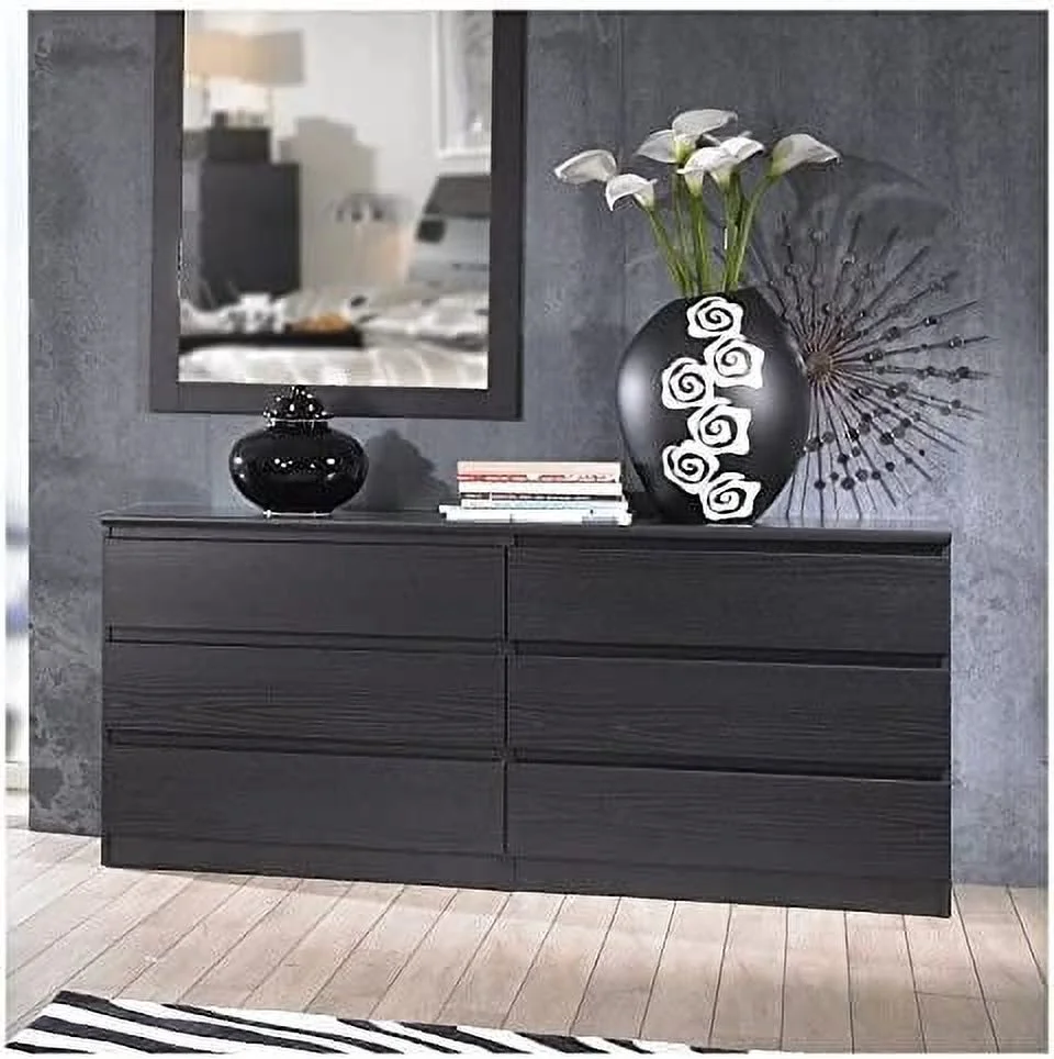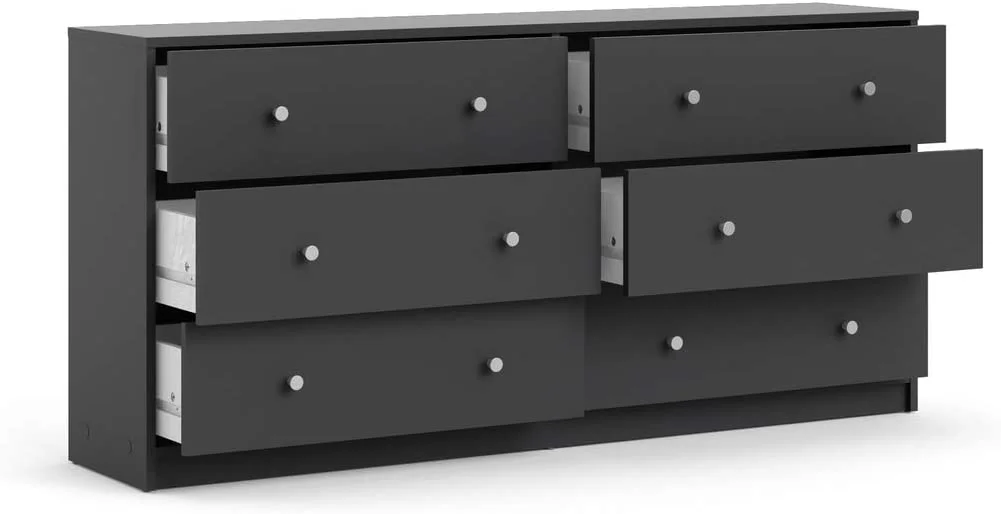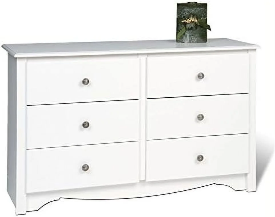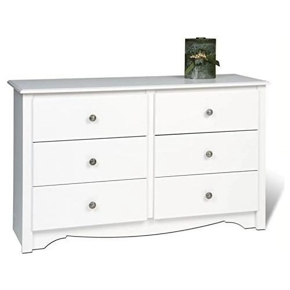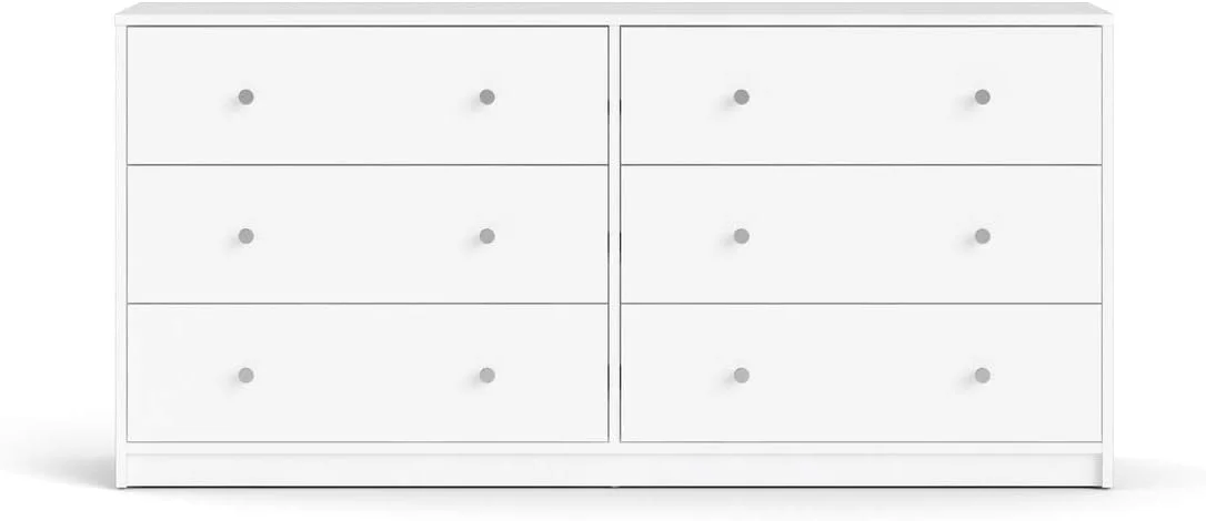 MARSON LLC Contemporary Wide 6 Drawer Double Bedroom Dresser in White