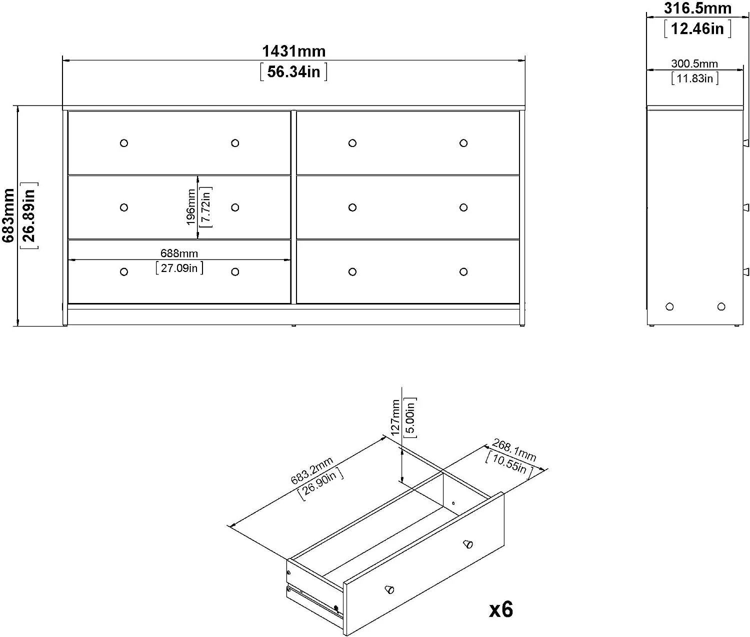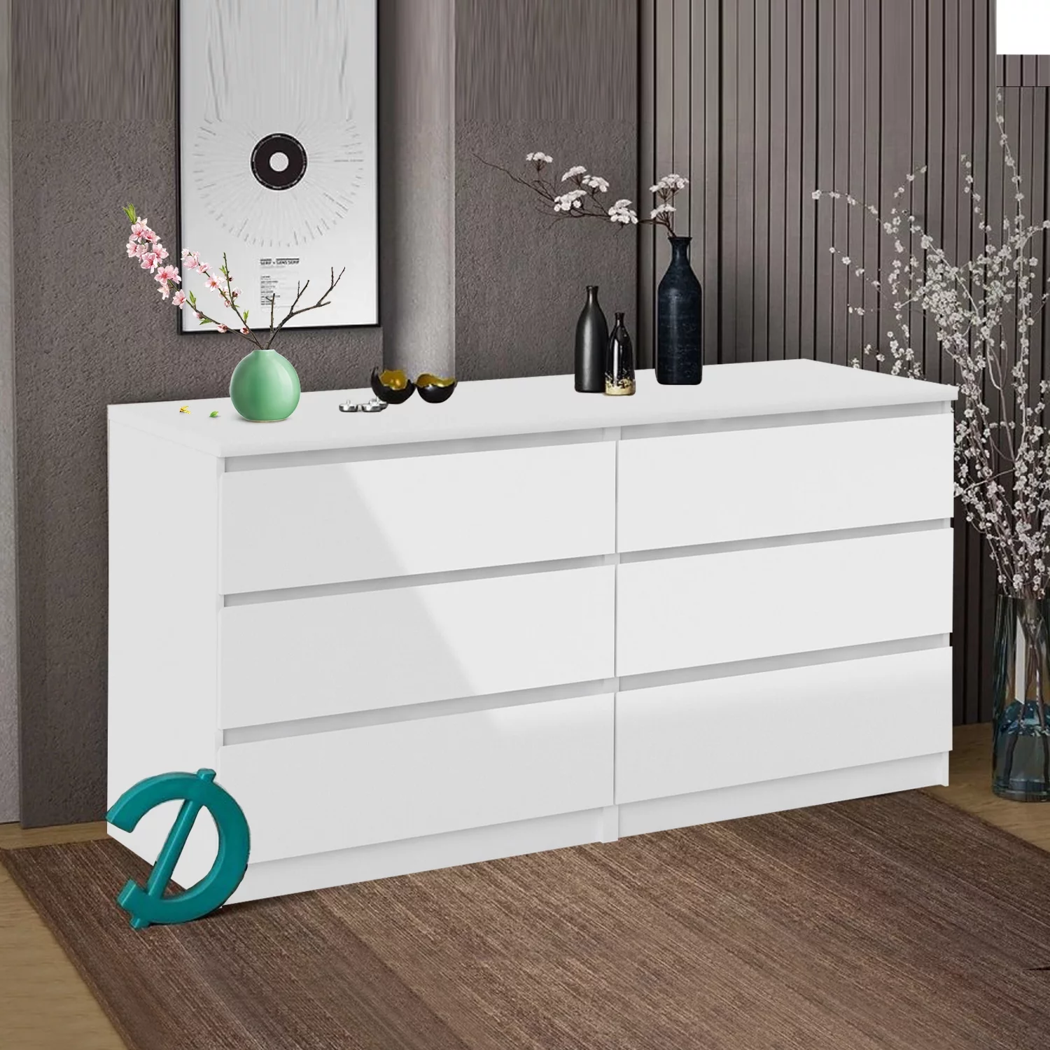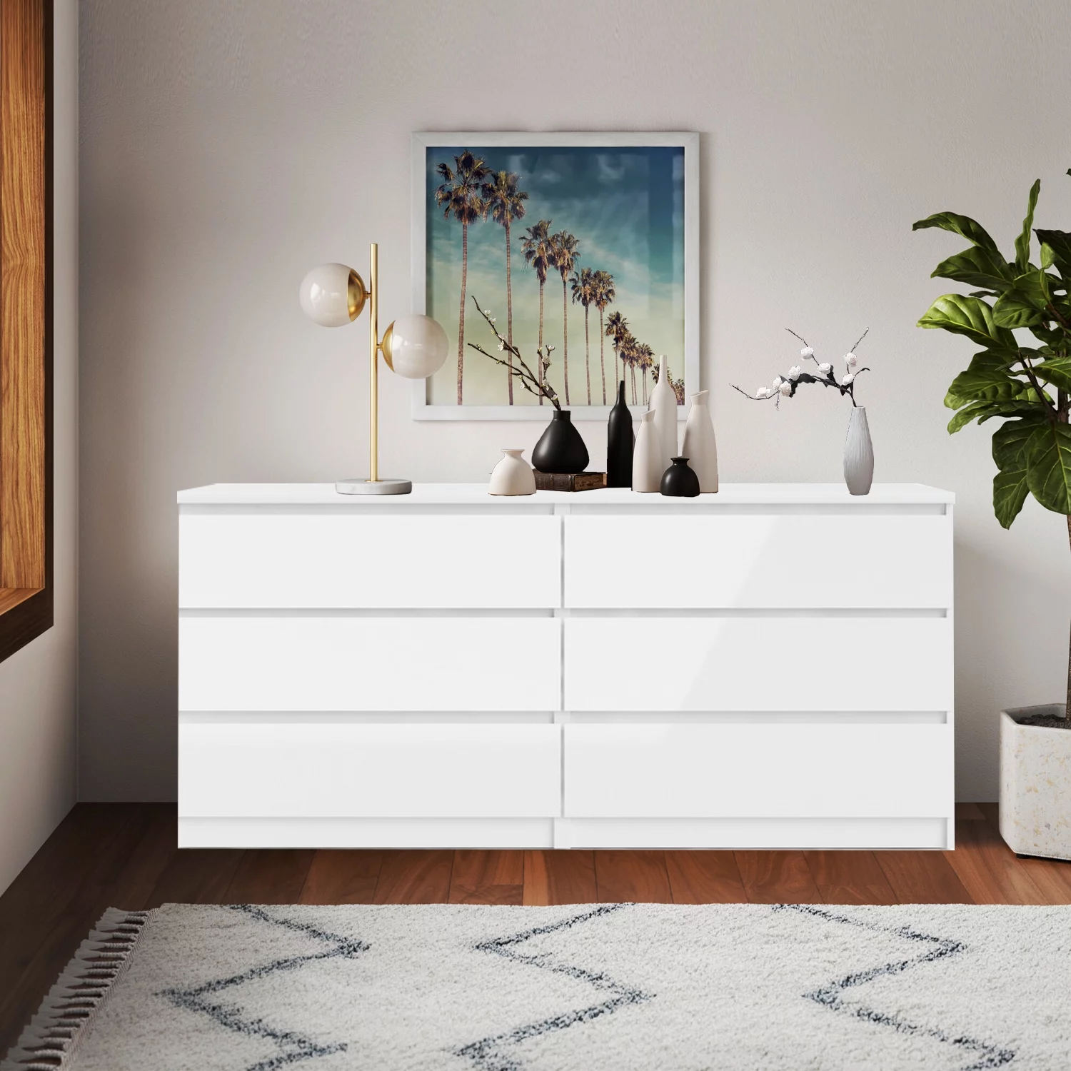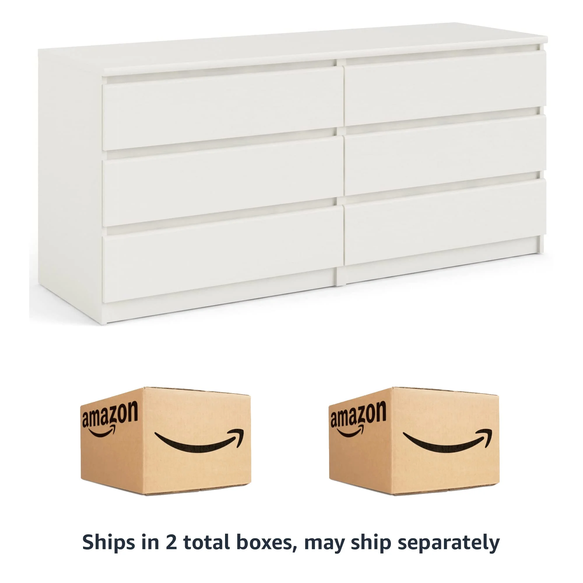 MARSON LLC Contemporary Wide 6 Drawer Double Bedroom Dresser in White