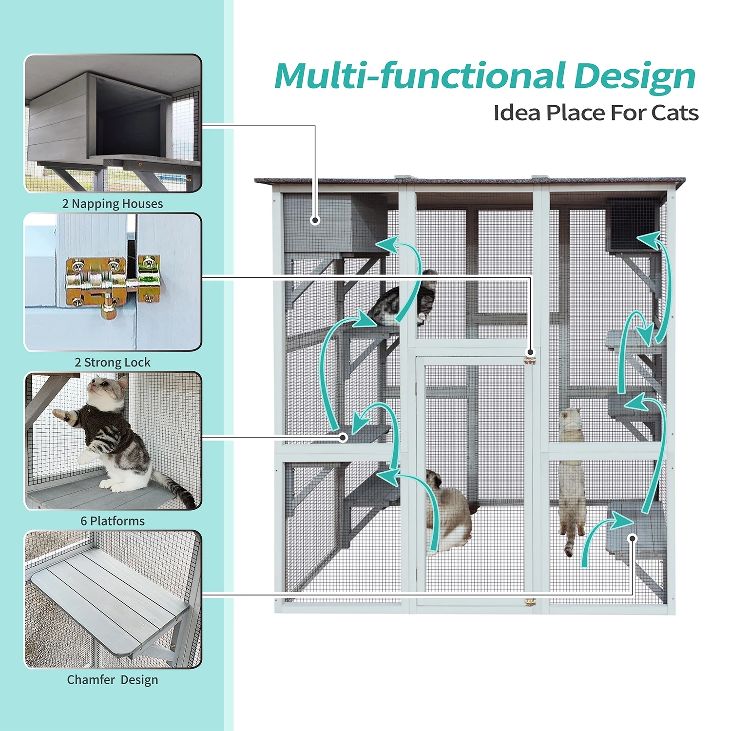 Holaki 110" Cat House Outdoor Cat Enclosures Large Kitten Playpen with Platforms,Upgrade Waterproof Cover