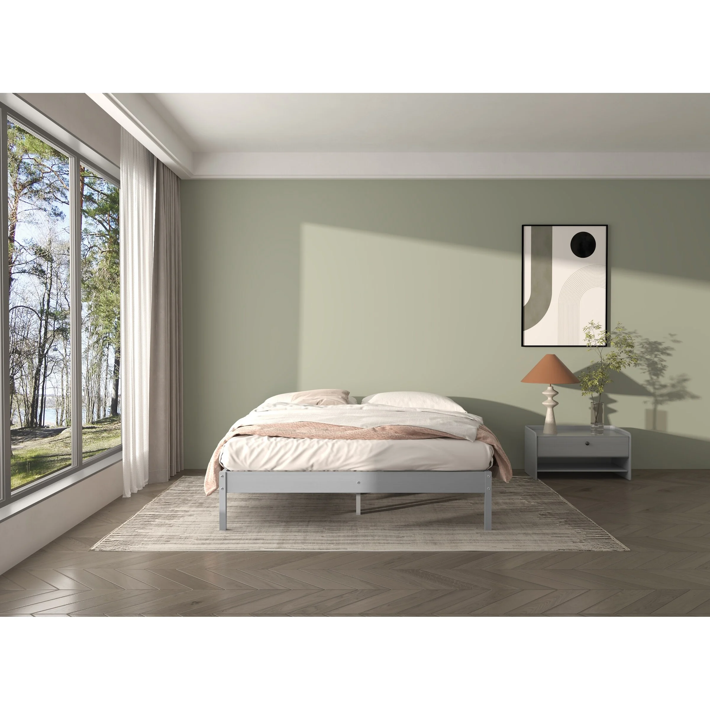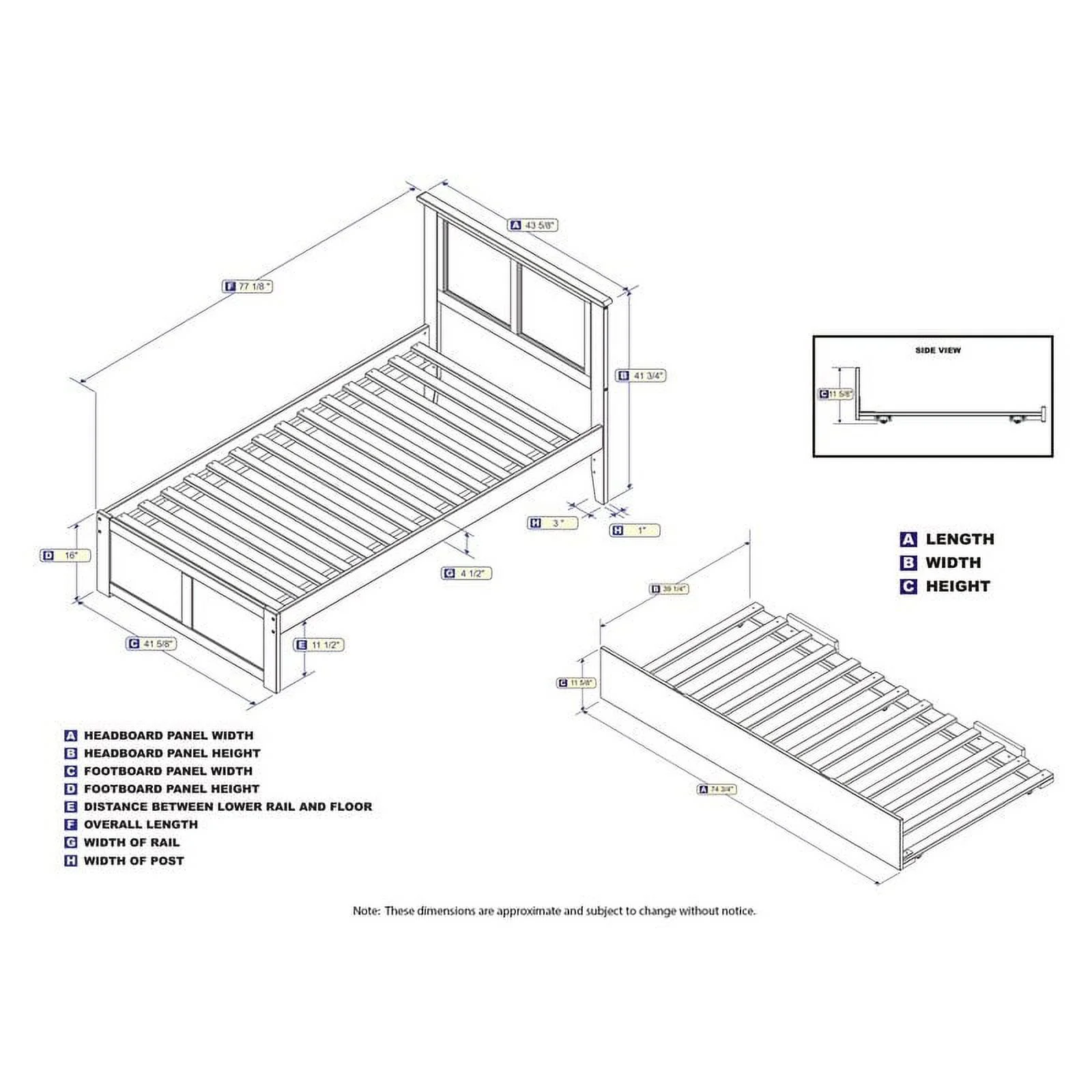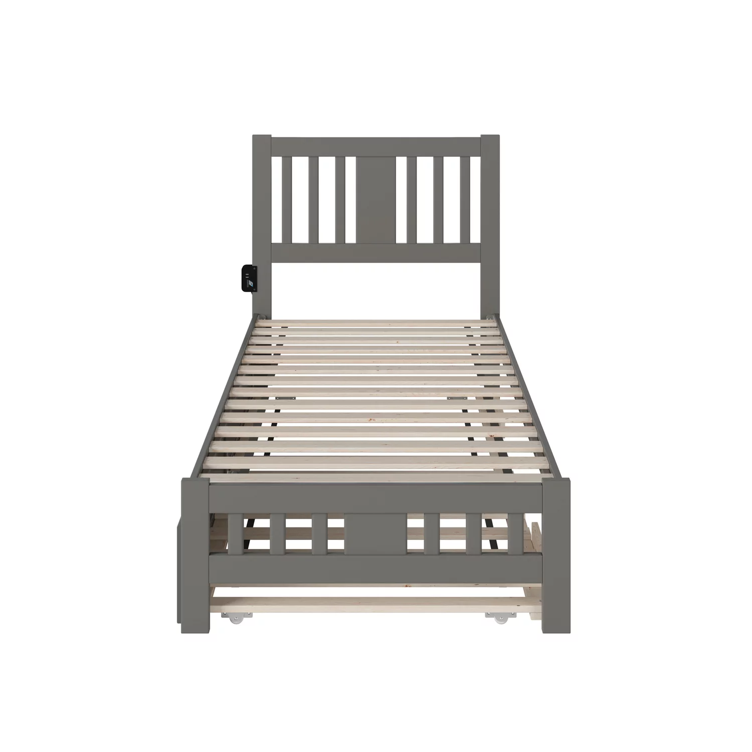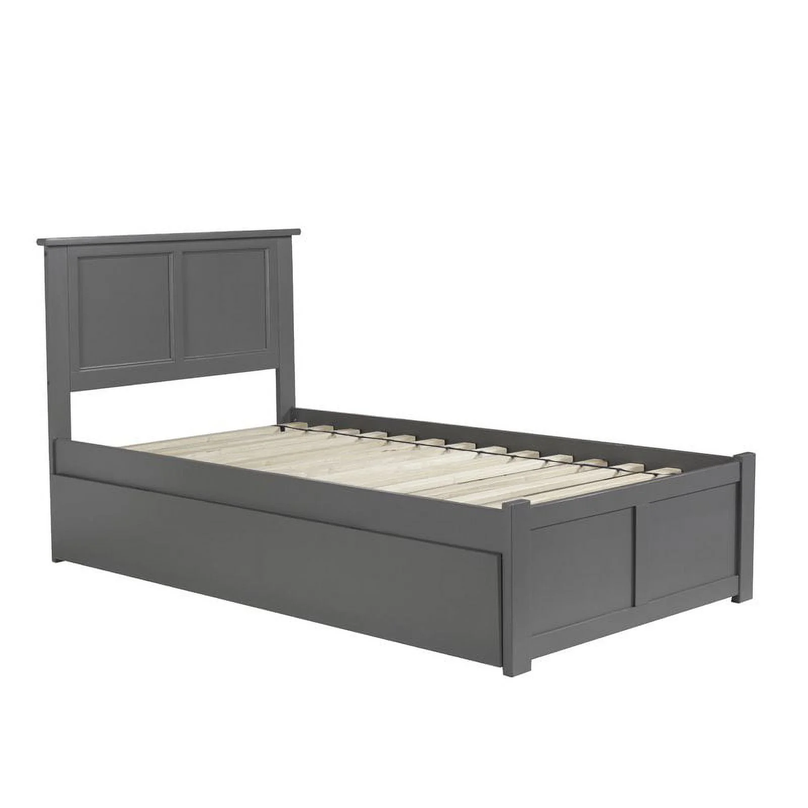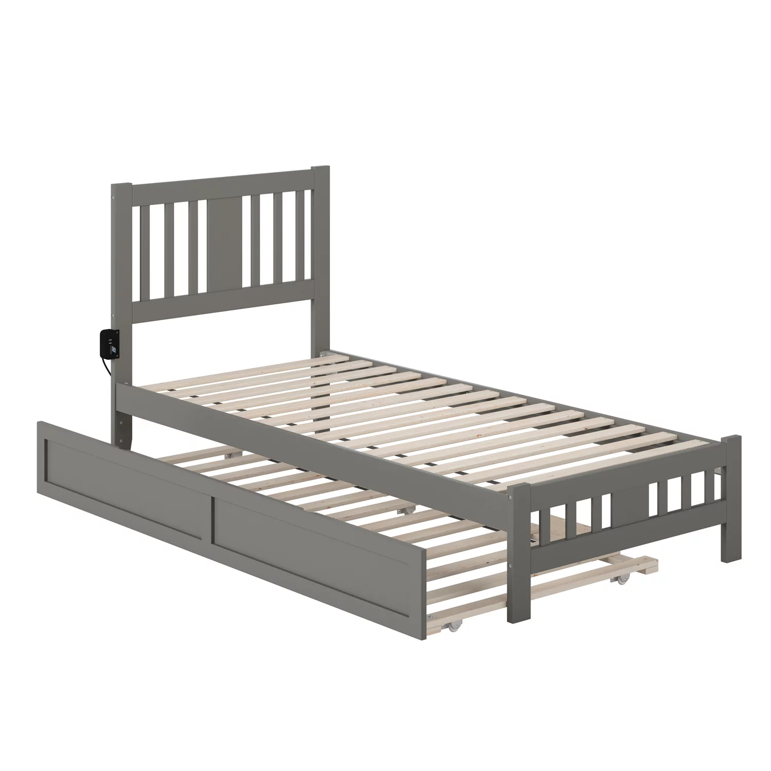 Leo & Lacey Twin Platform Bed with Footboard and Twin Trundle in Gray