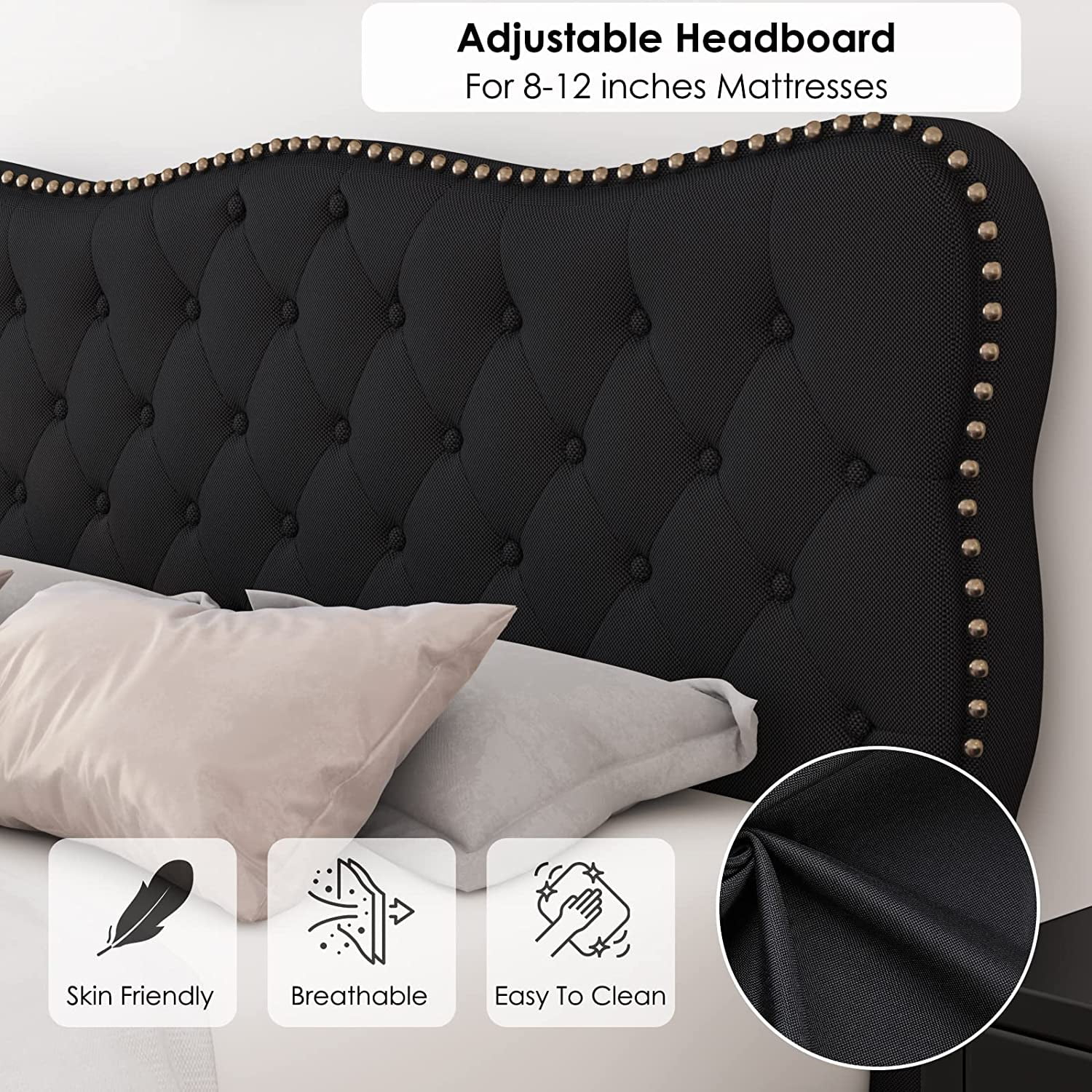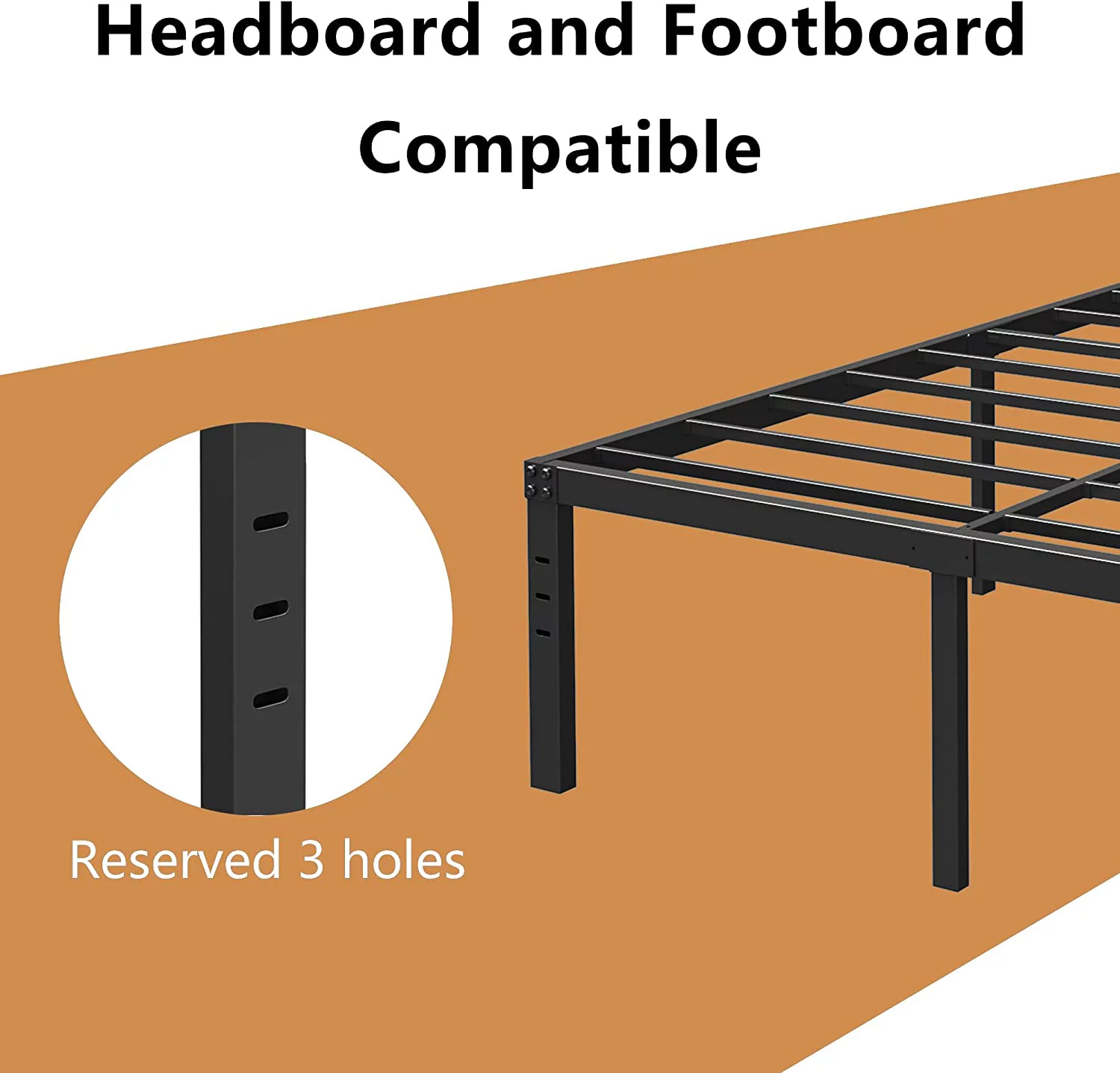 Fithood 195.5*142.2*45.7cm Bed Height 18" Simple Basic Iron Bed Frame Iron Bed Black