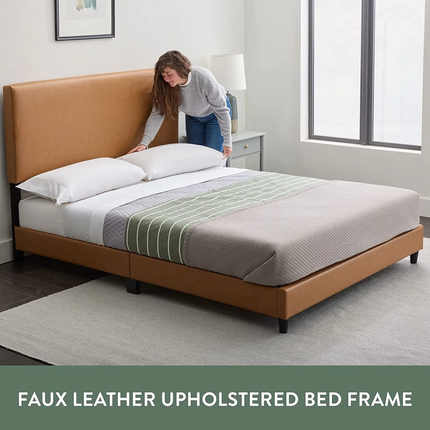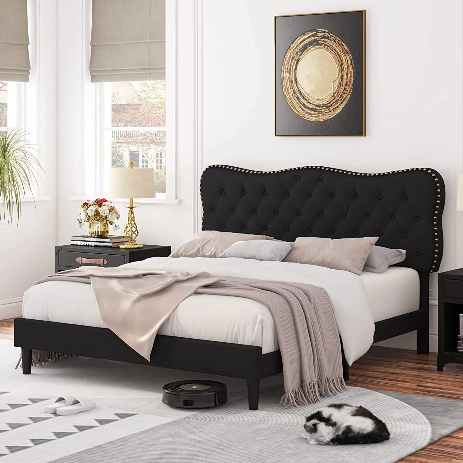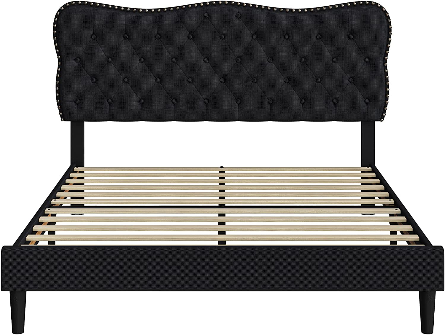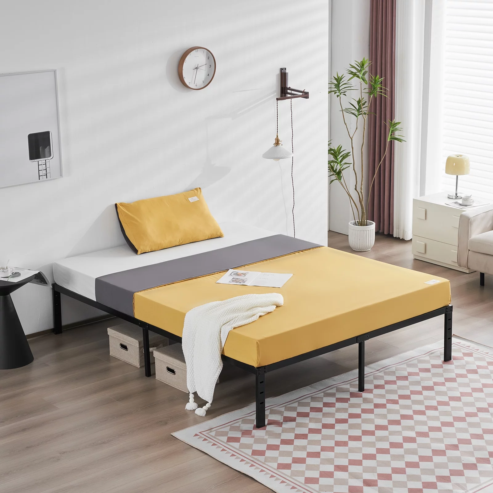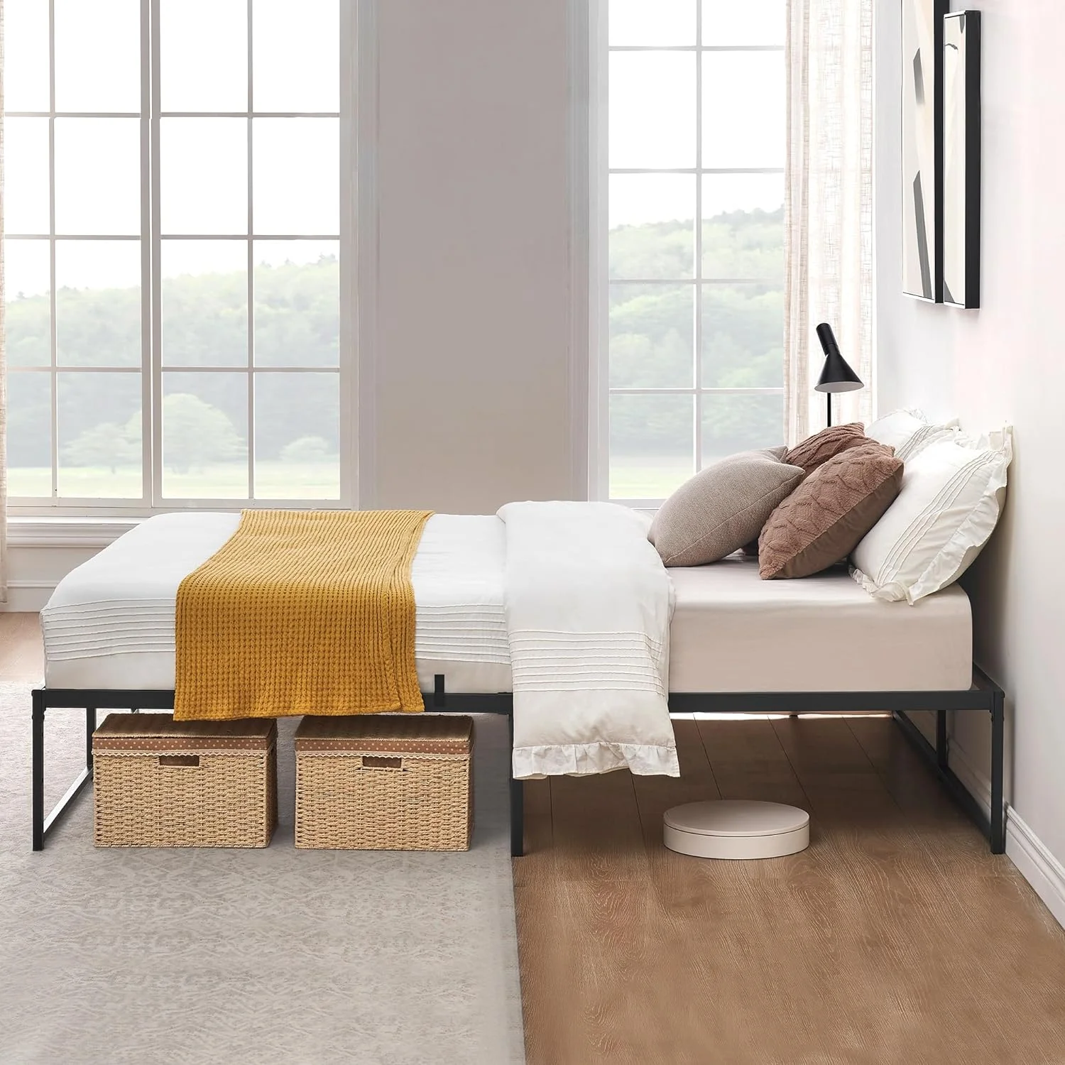 Roxona Simple Basic Iron Bed Frame Iron Bed 195.5*142.2*35.5cm Bed Height 14" Black