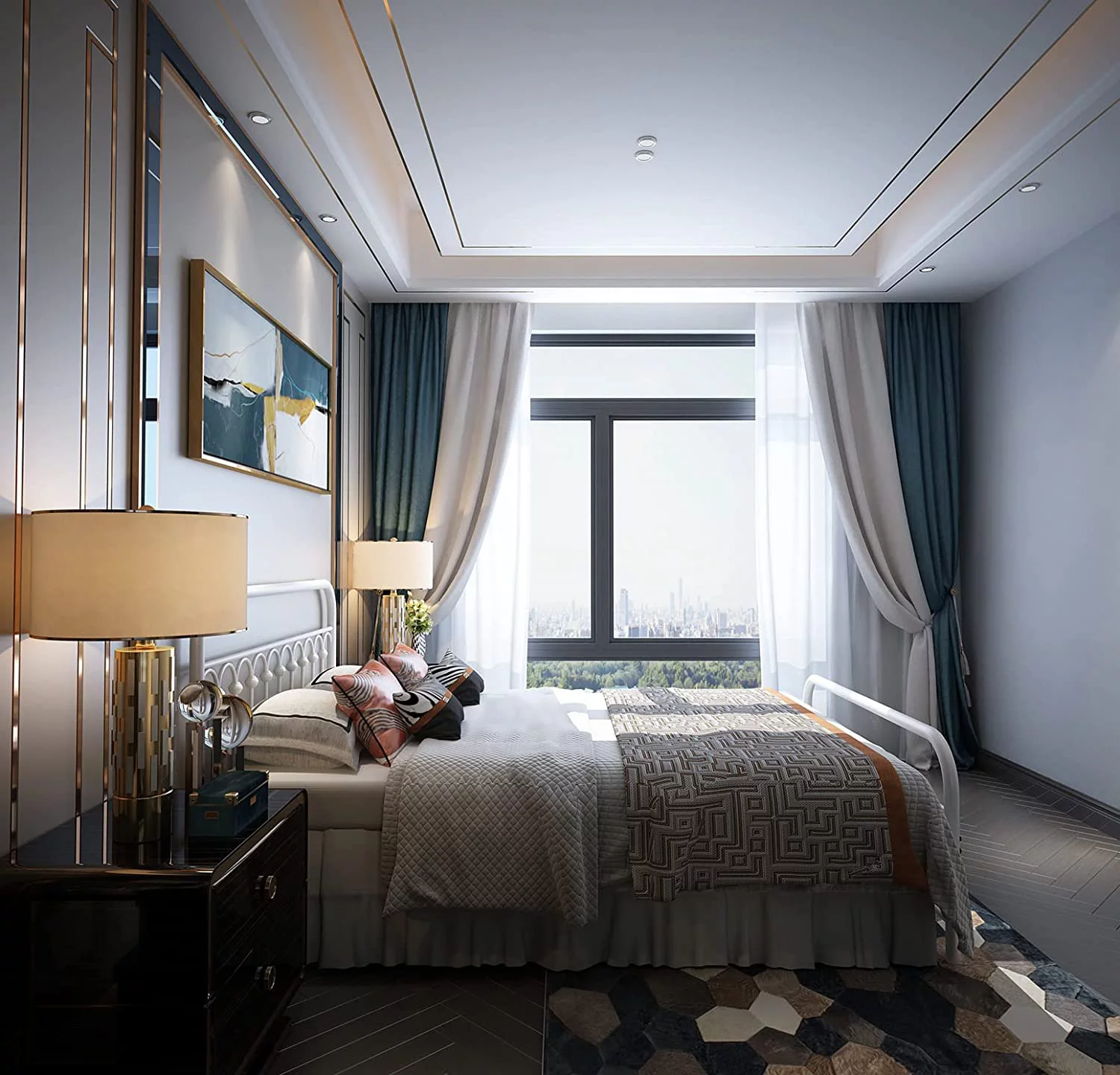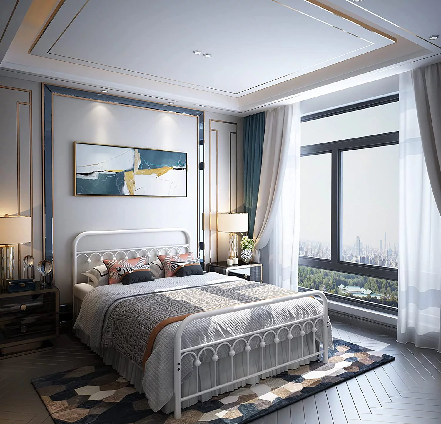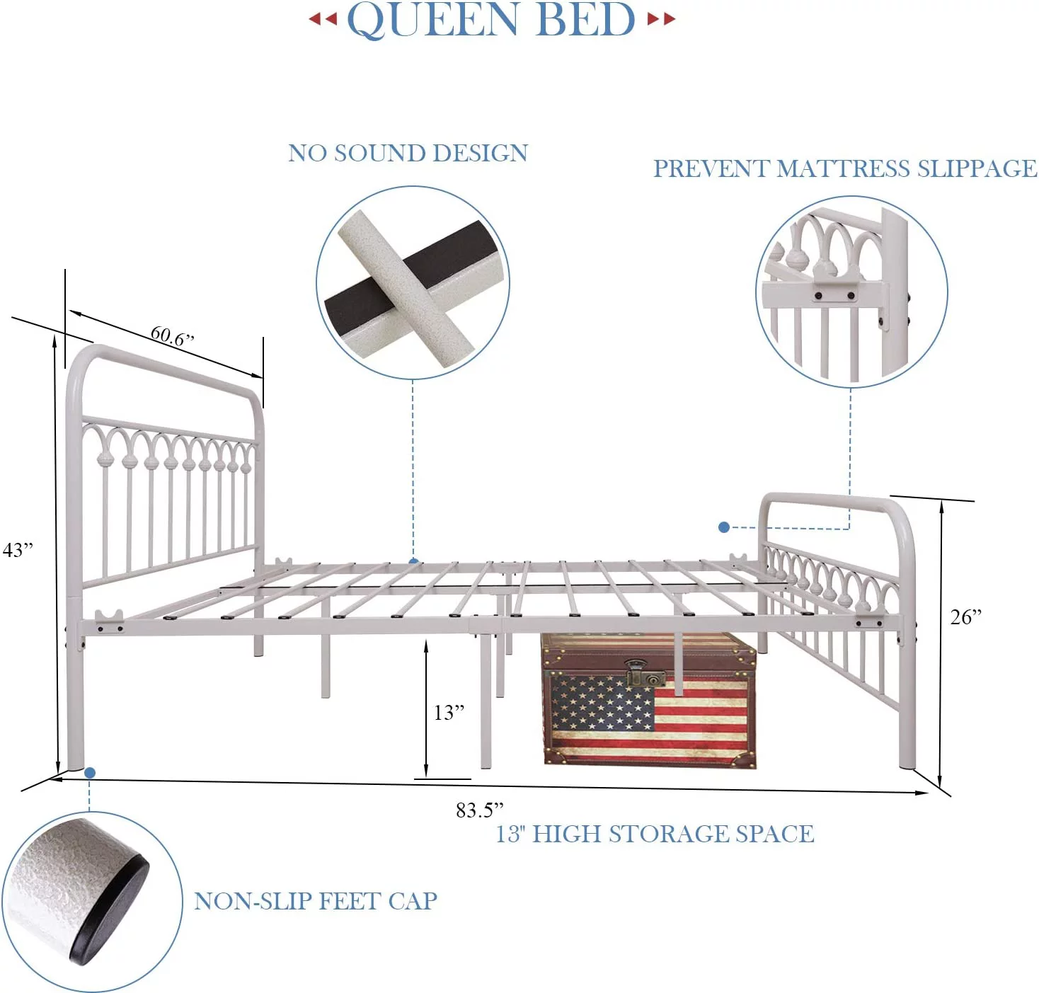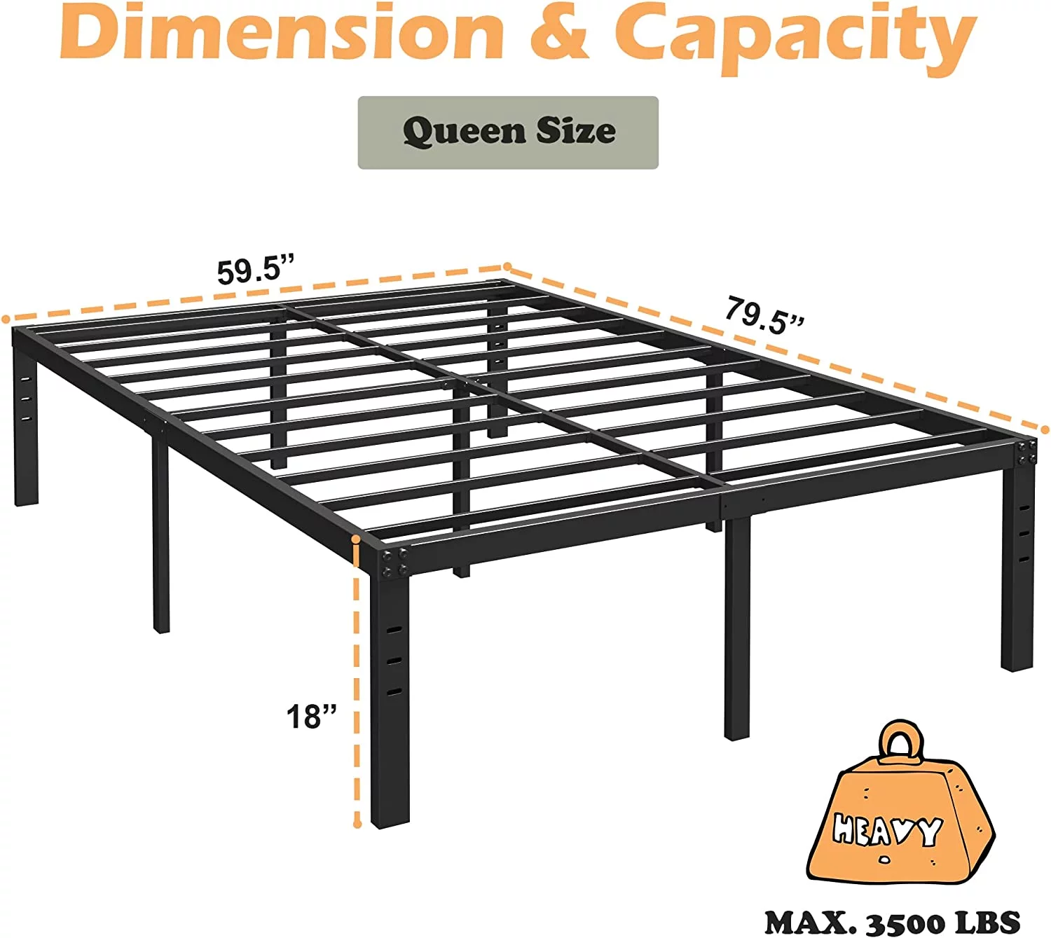 Bornmio 208.2*157.5*45.7cm Bed Height 18" Simple Basic Iron Bed Frame Iron Bed Black