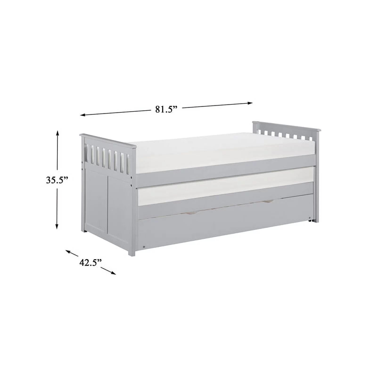 Rosebery Kids Traditional Twin Captain's Bed with Twin Trundle in Pebble Gray