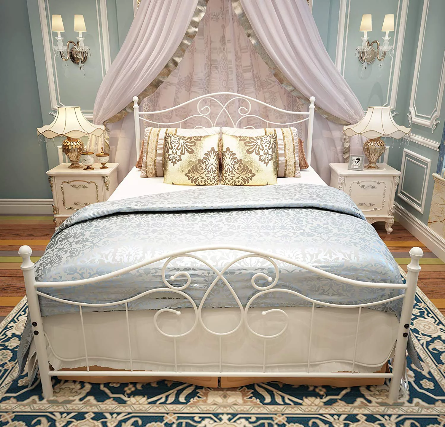 Fithood 208.2*198*35.5cm Bed Height 14" Simple Basic Iron Bed Frame Iron Bed Black