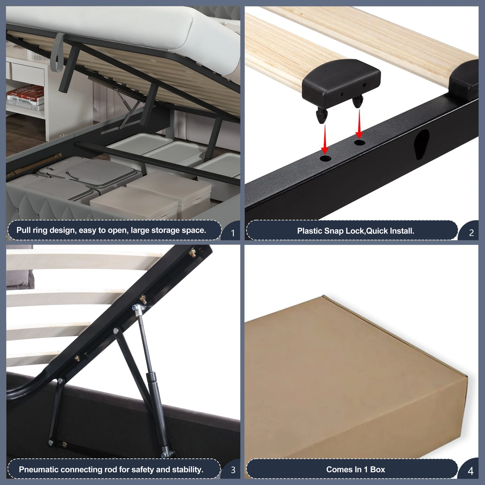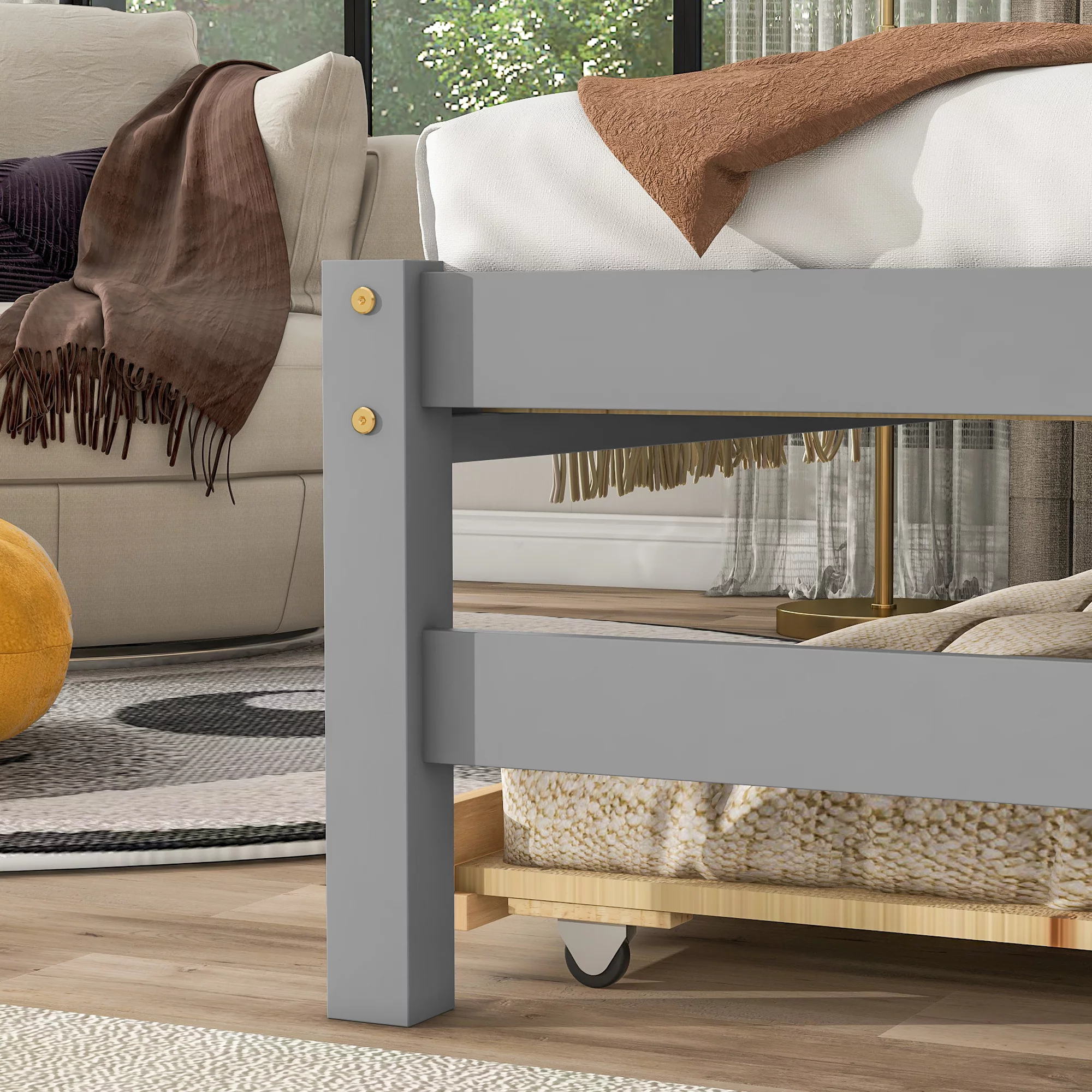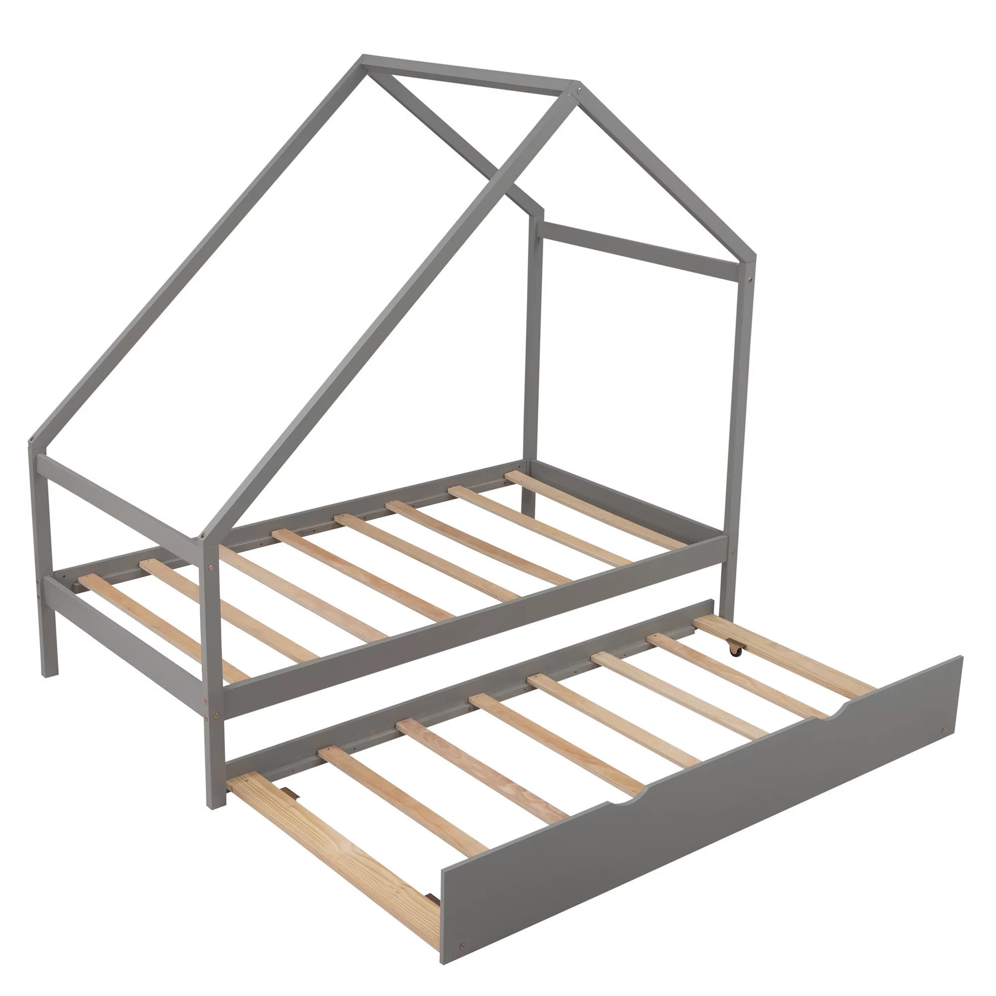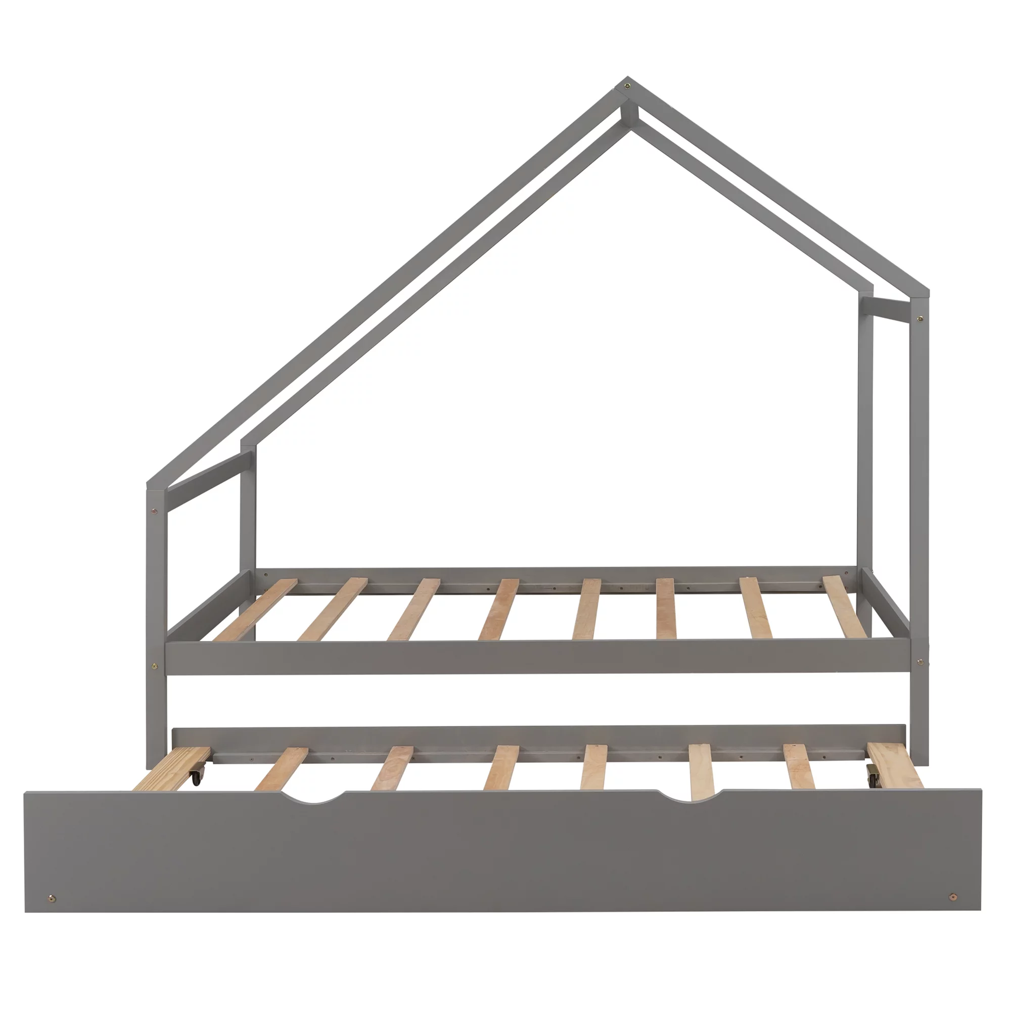 Twin Storage House Bed for kids with Bedside Table Under Bed Storage Mattress, Trundle, Grey