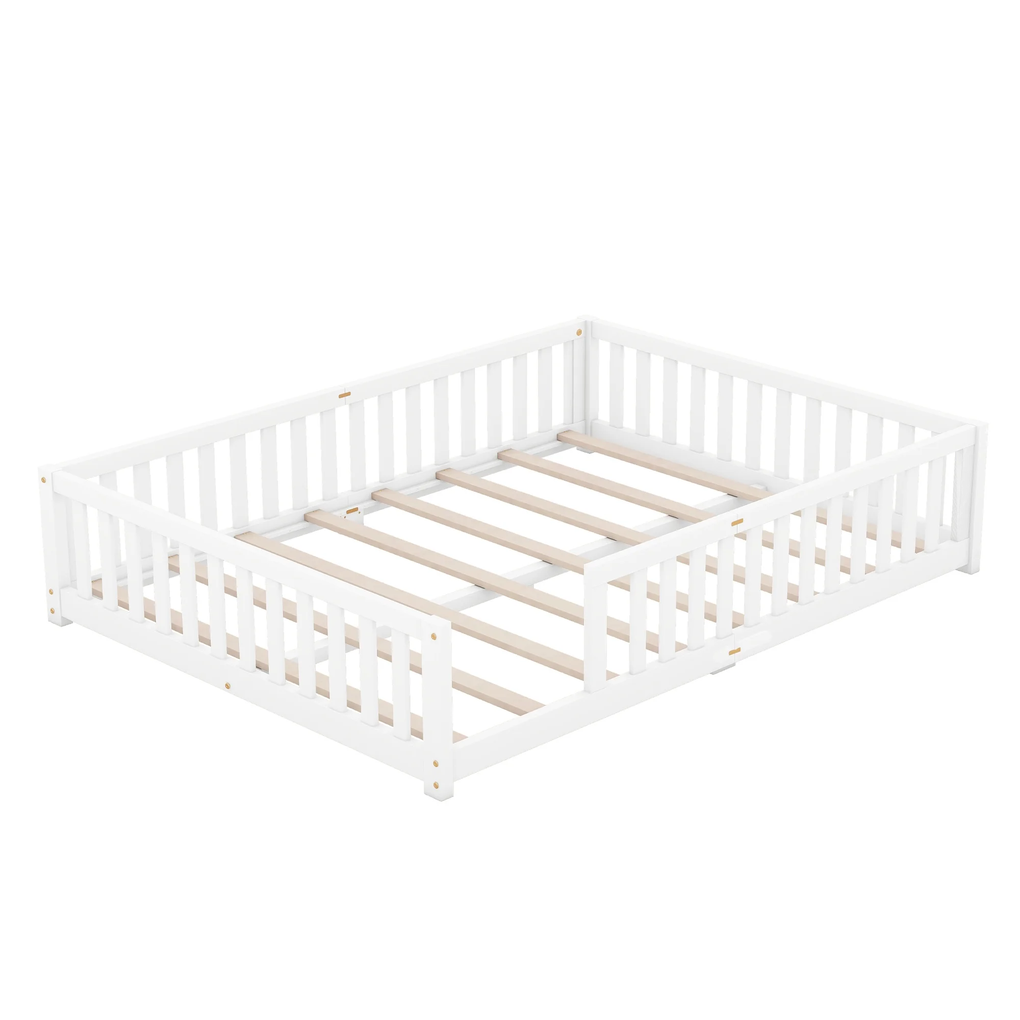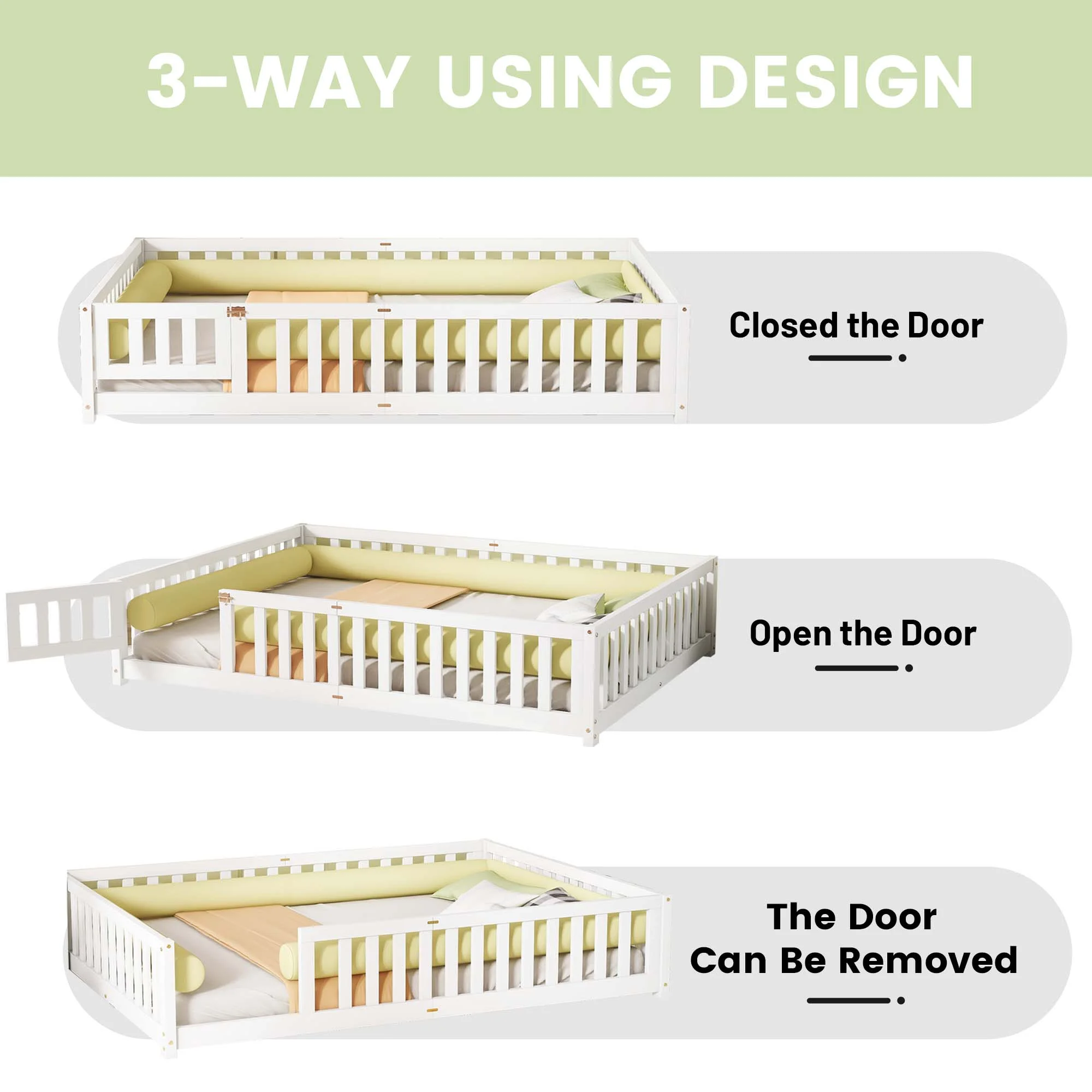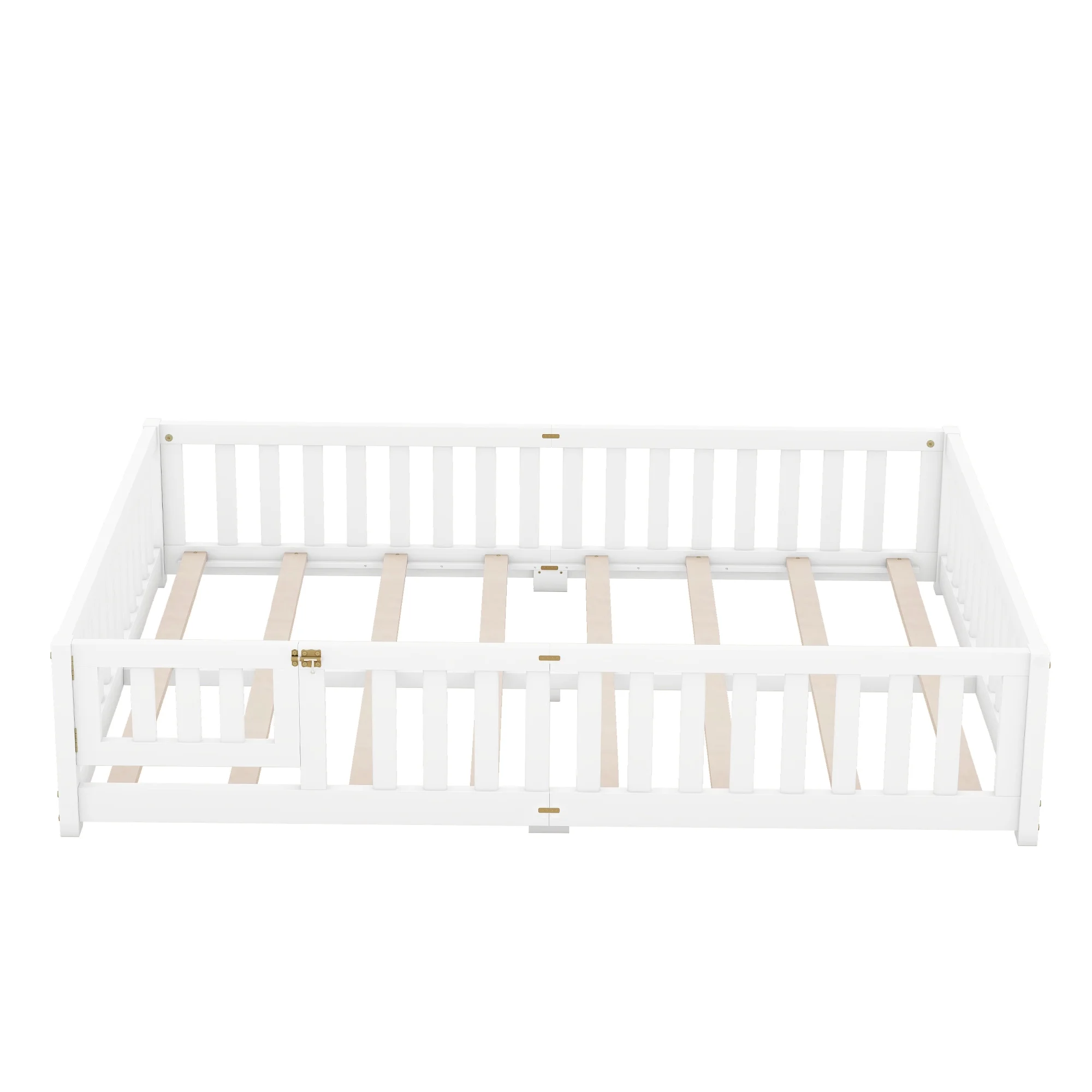 CoSoTower Queen Size Bed Floor Bed with Safety Guardrails and Door for Kids, White (Expect Arrival Date Nov.2Nd)