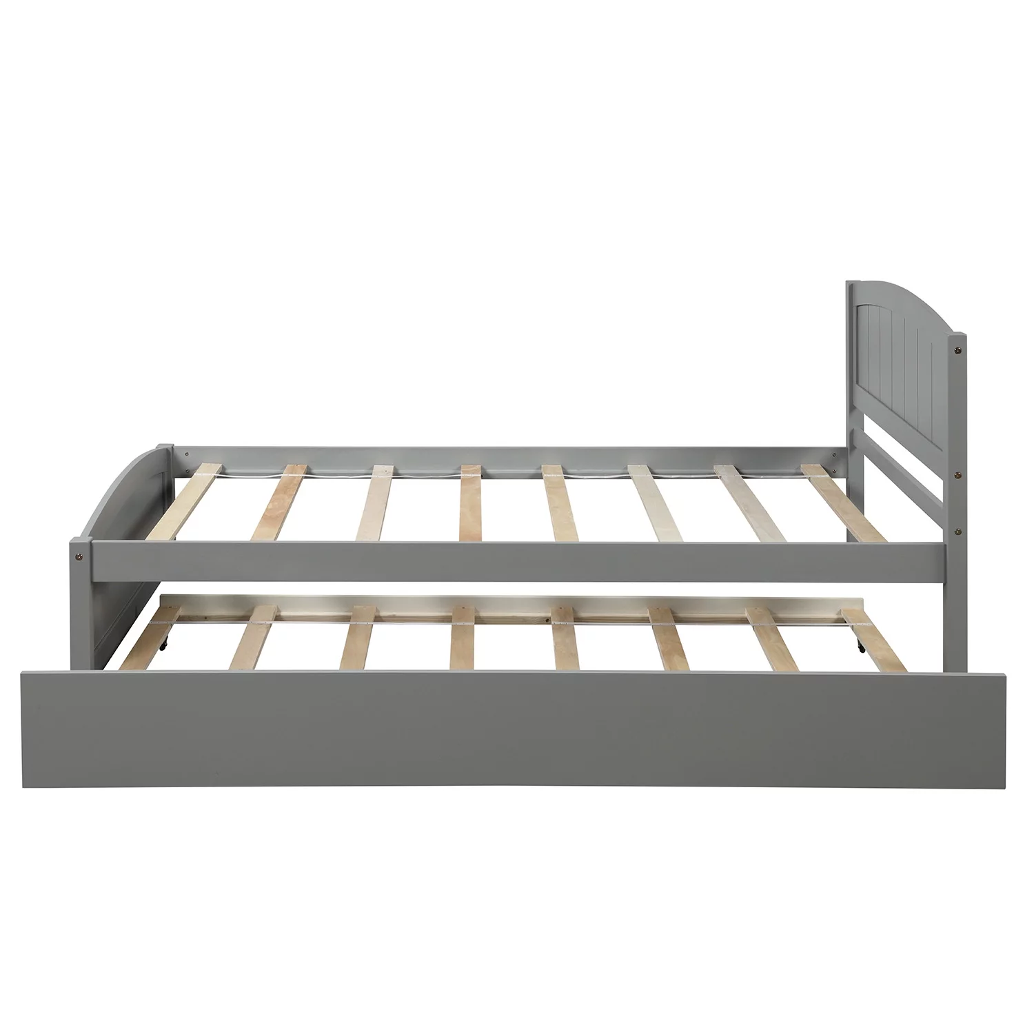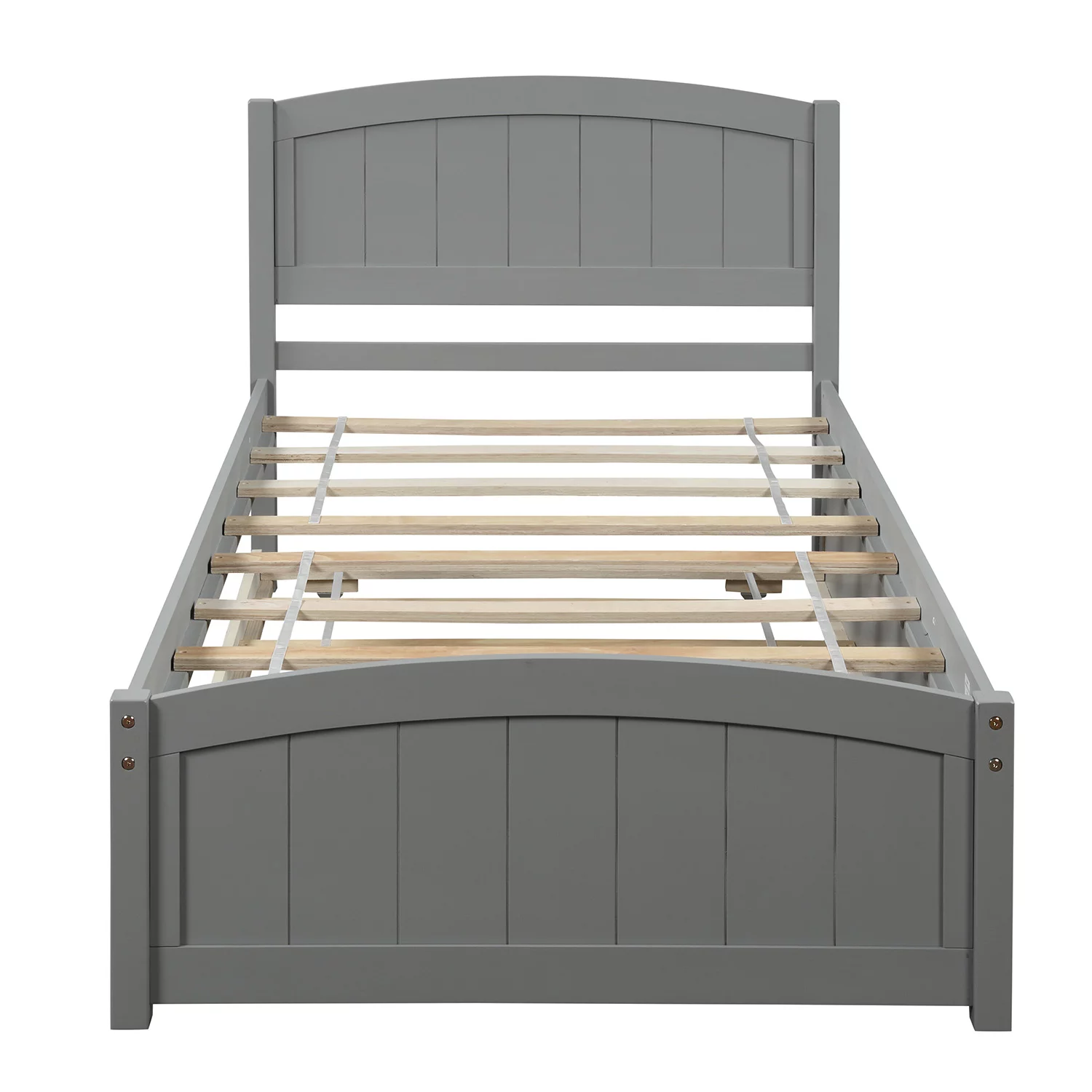 Leo & Lacey TW Platform Bed w Matching FtBoard and Twin Trundle in Gray