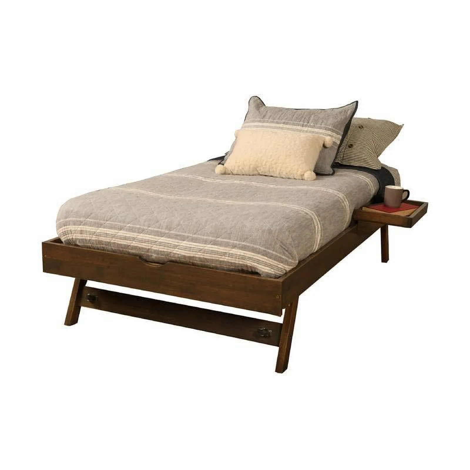 Kodiak Furniture Boho Wood Pop Up Bed in Rustic Walnut Brown Finish with Tray