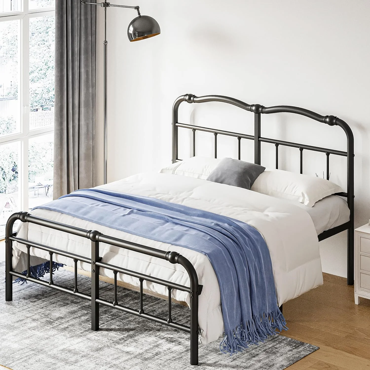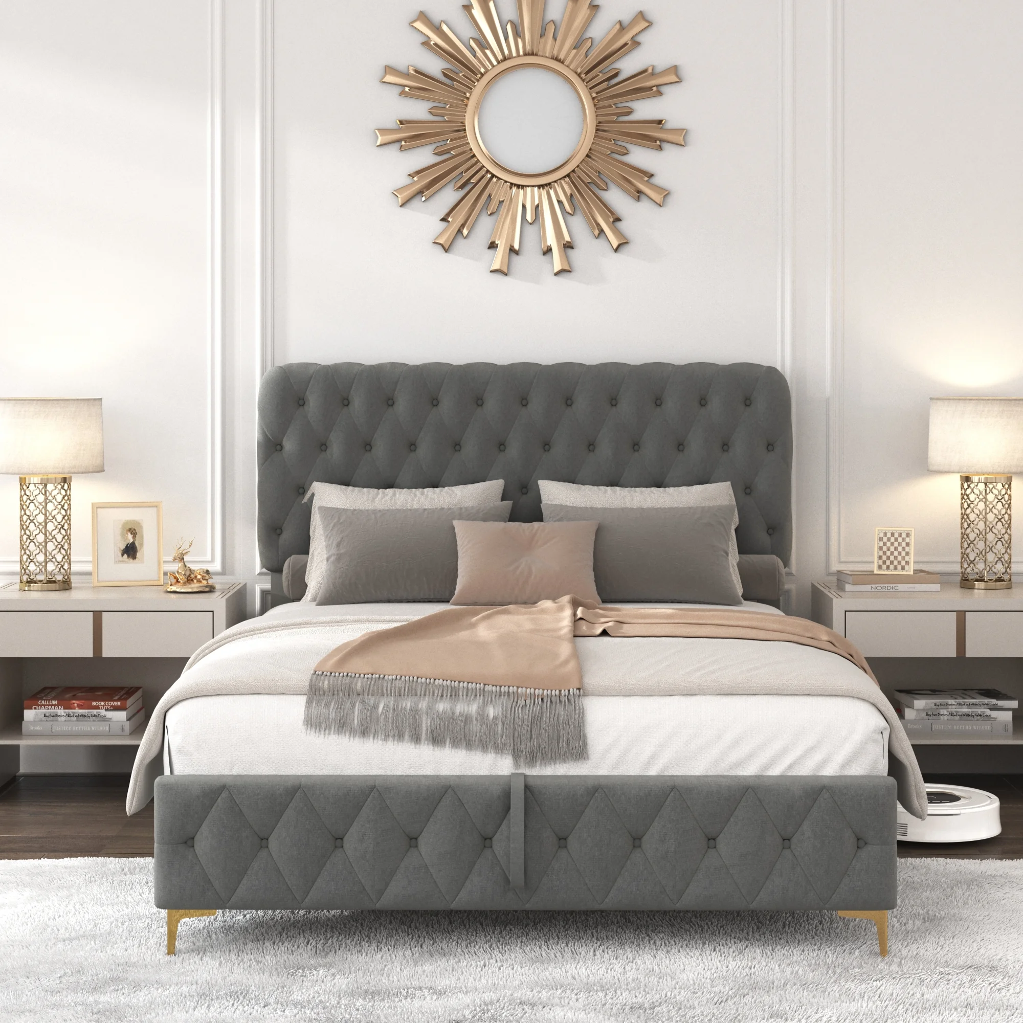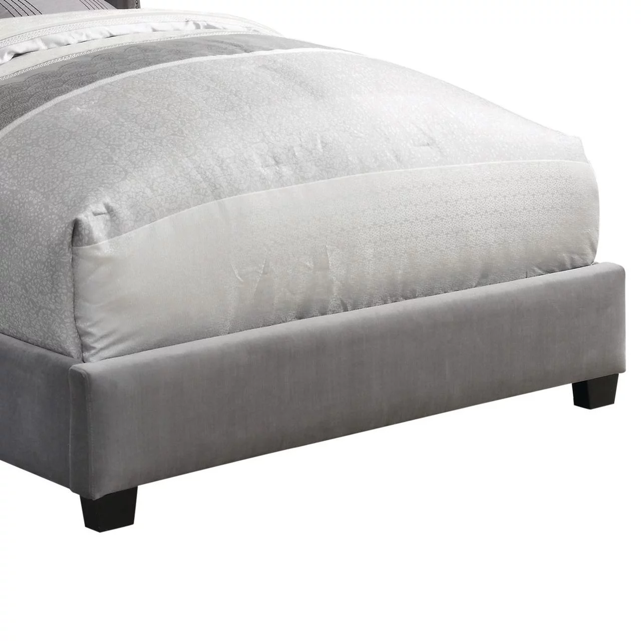 Benjara Fabric Upholstered Wooden Eastern King Size Bed with Winged Headboard, Gray