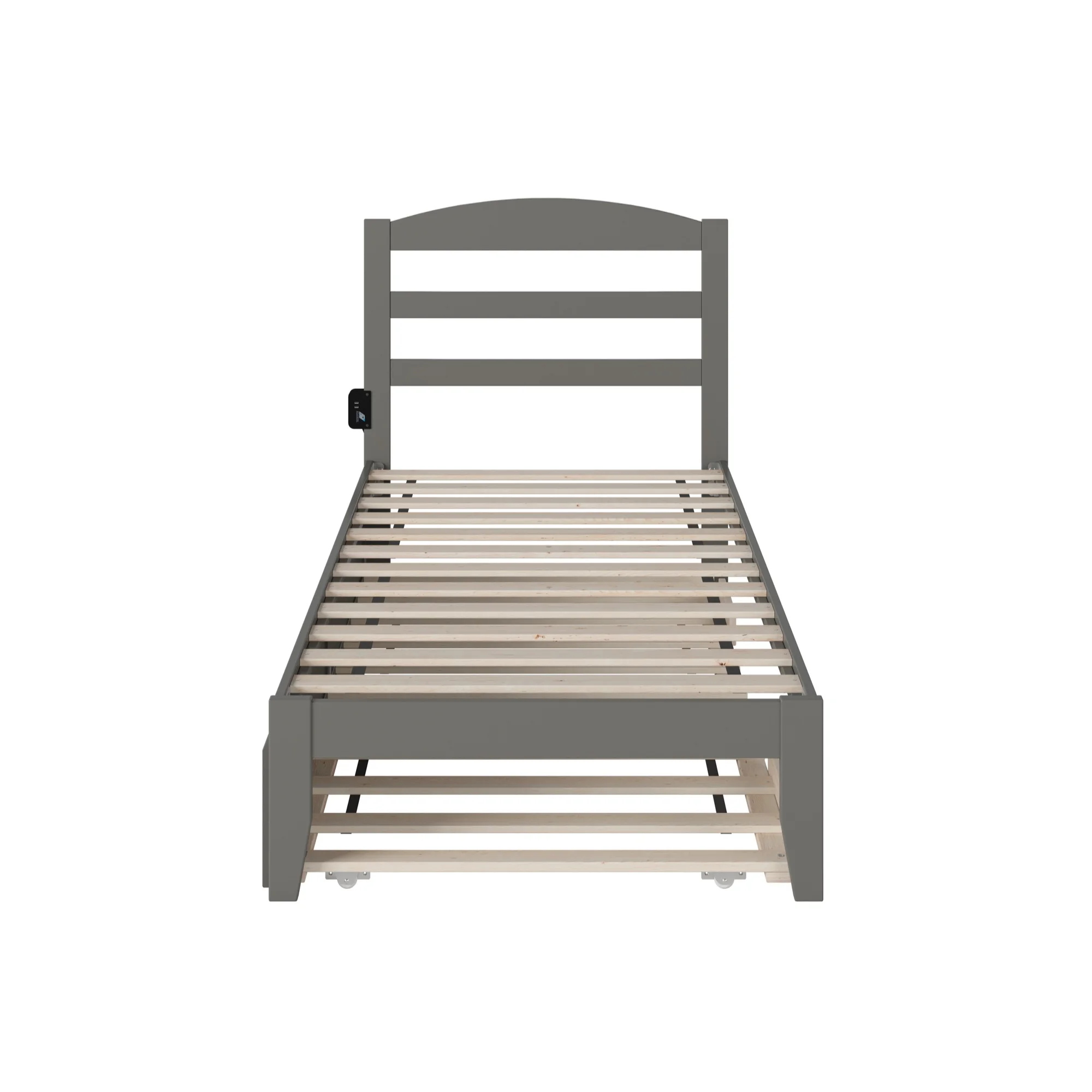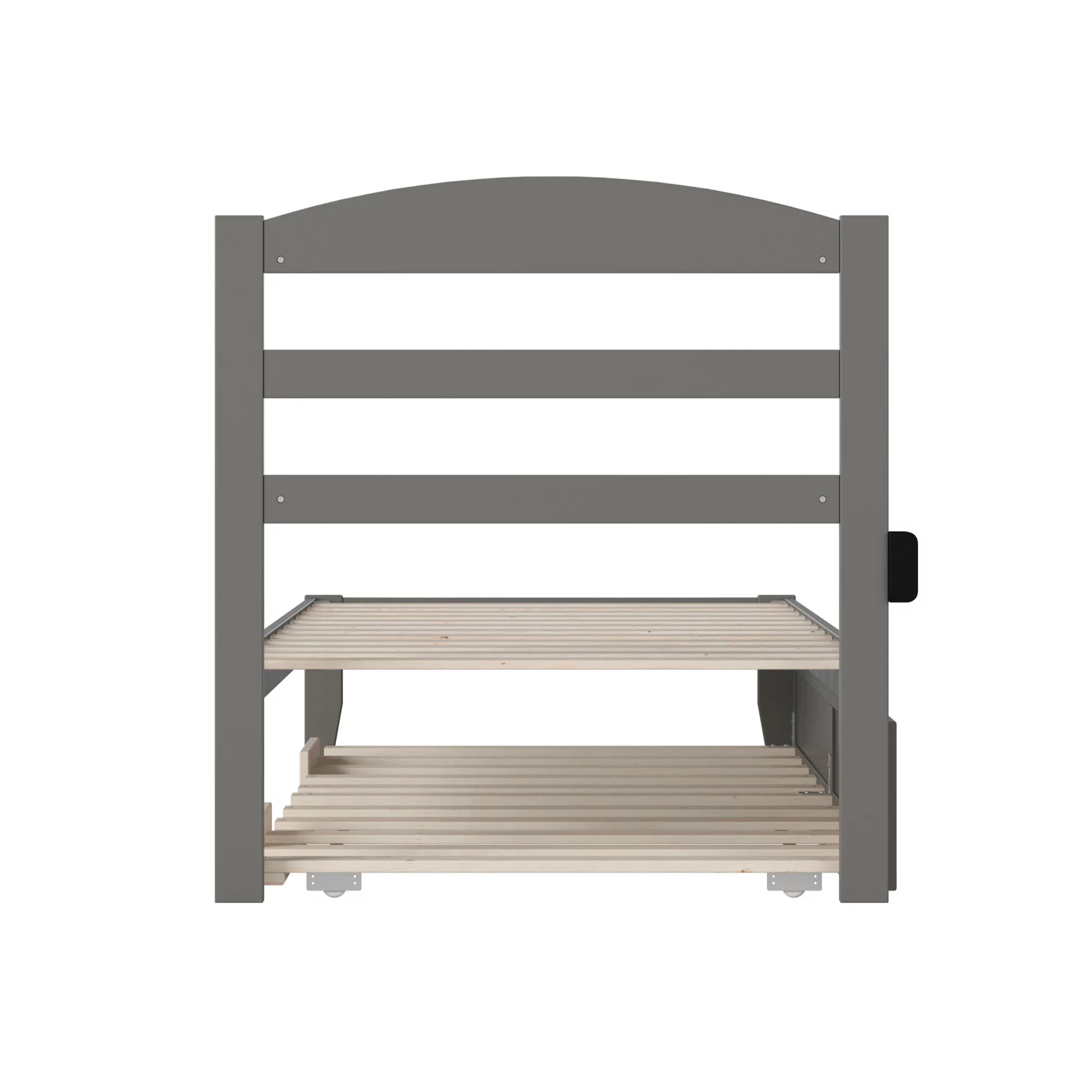 AFI Warren Solid Wood Twin Bed with Twin Trundle and USB Charger in Gray