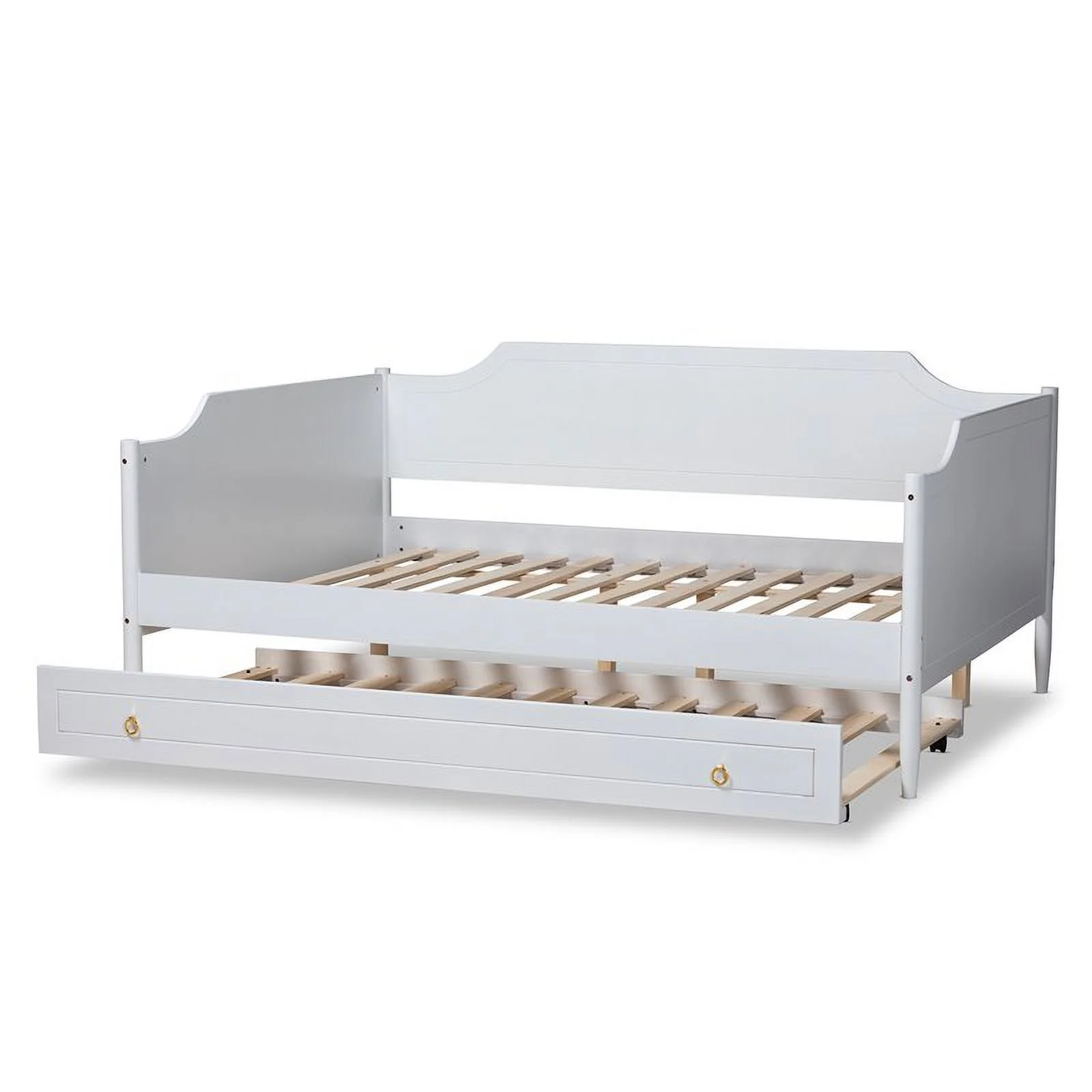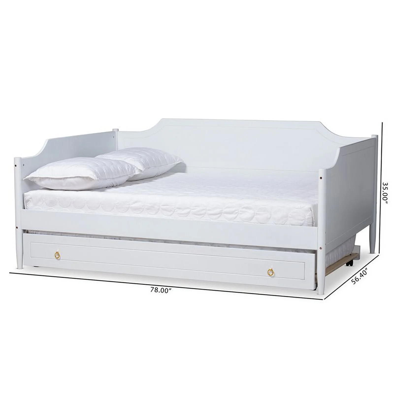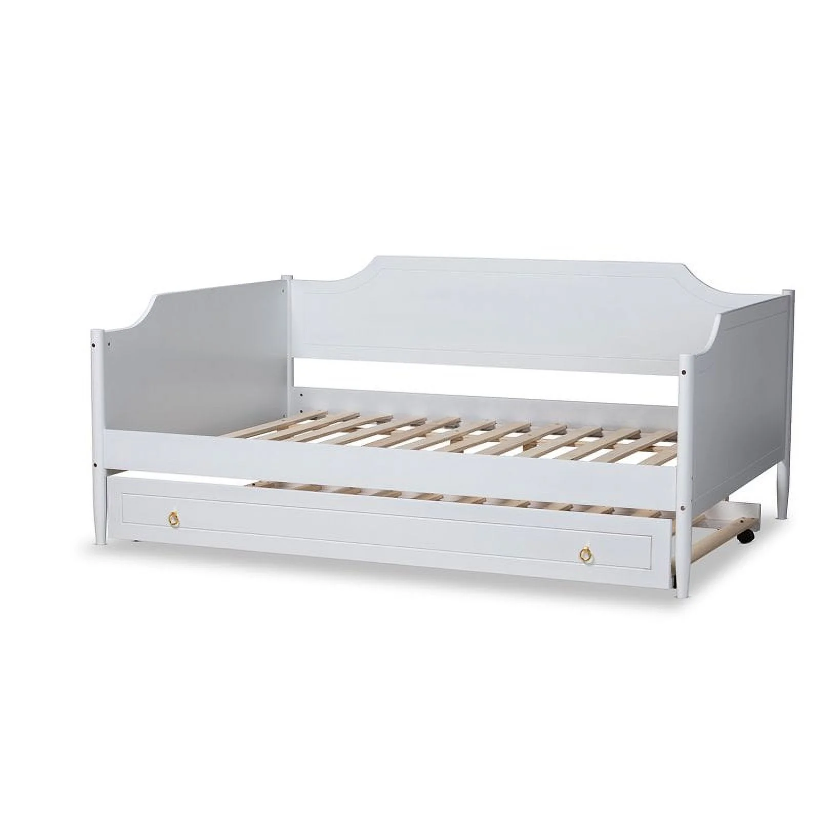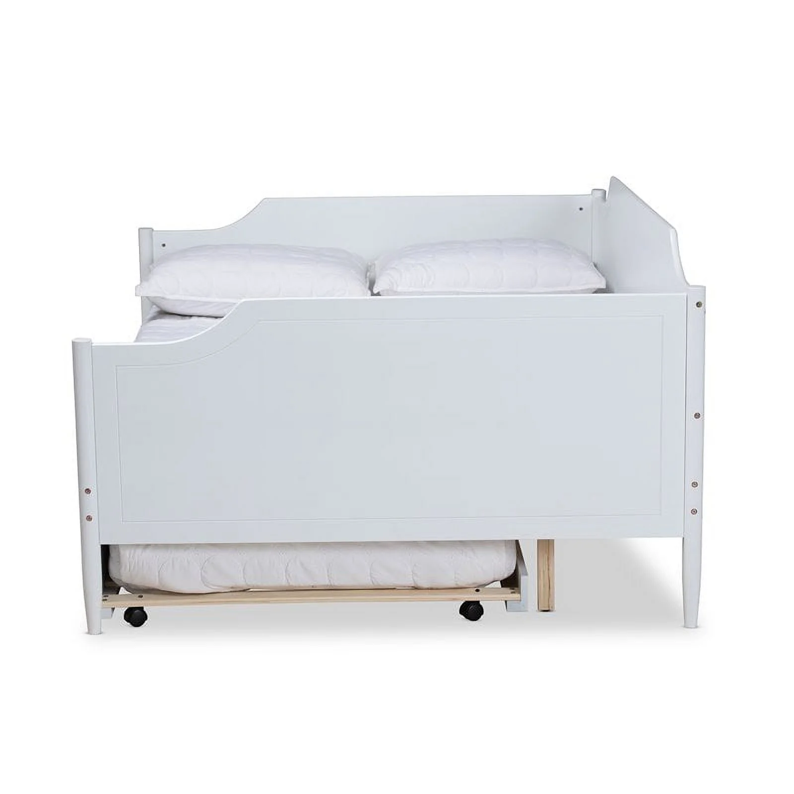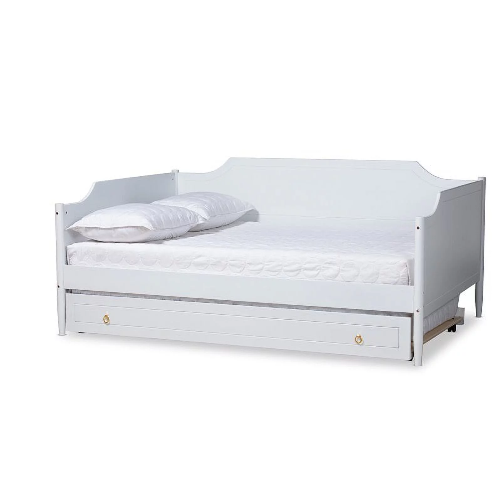 HomeStock Classic Traditional Retro Relaxation White Finished Wood Full Size Daybed With Roll-Out Trundle Bed