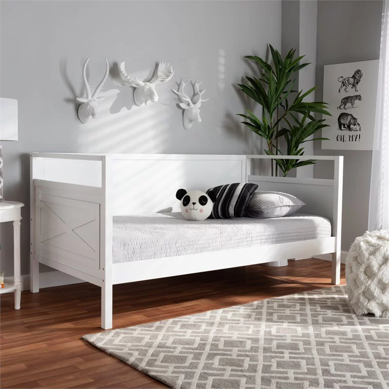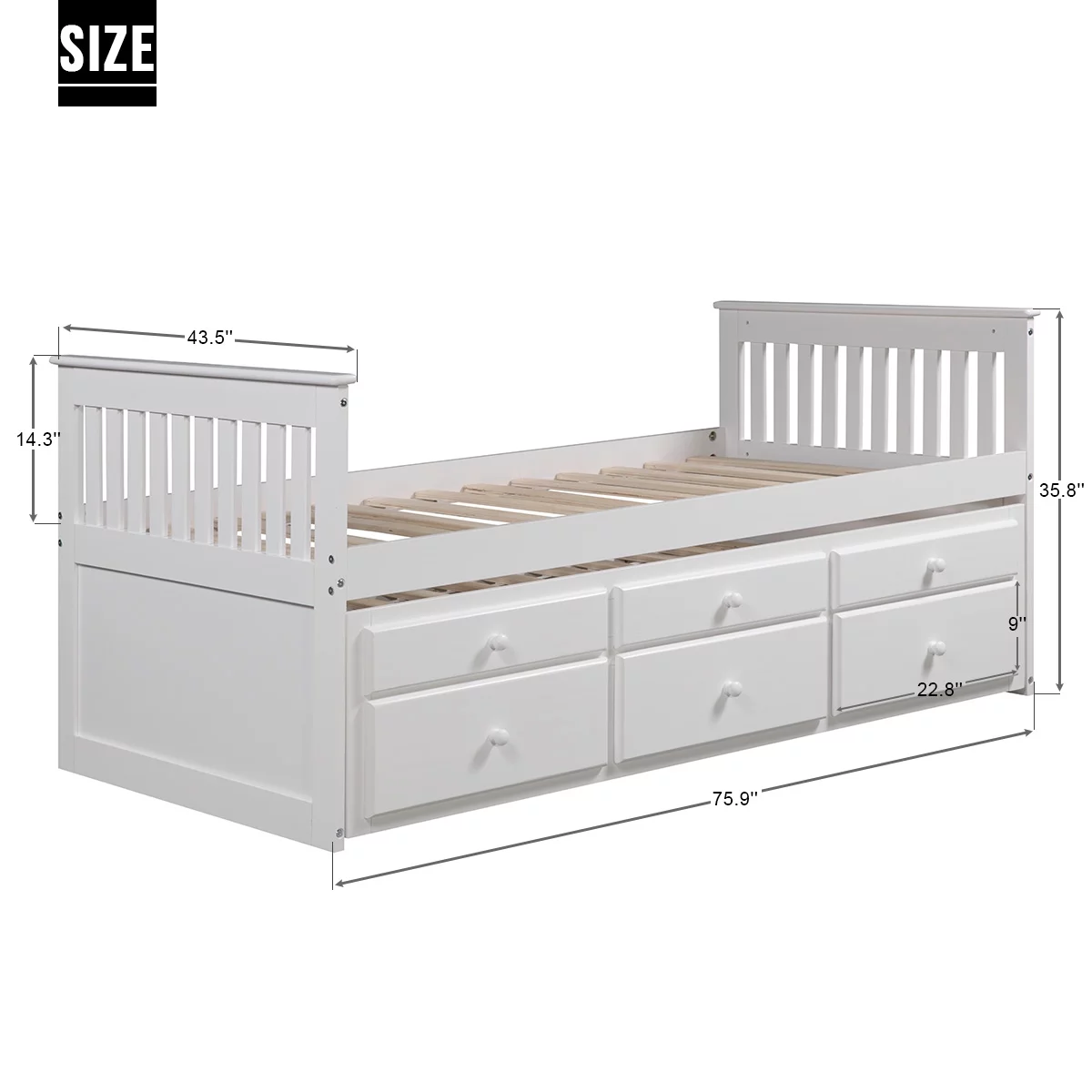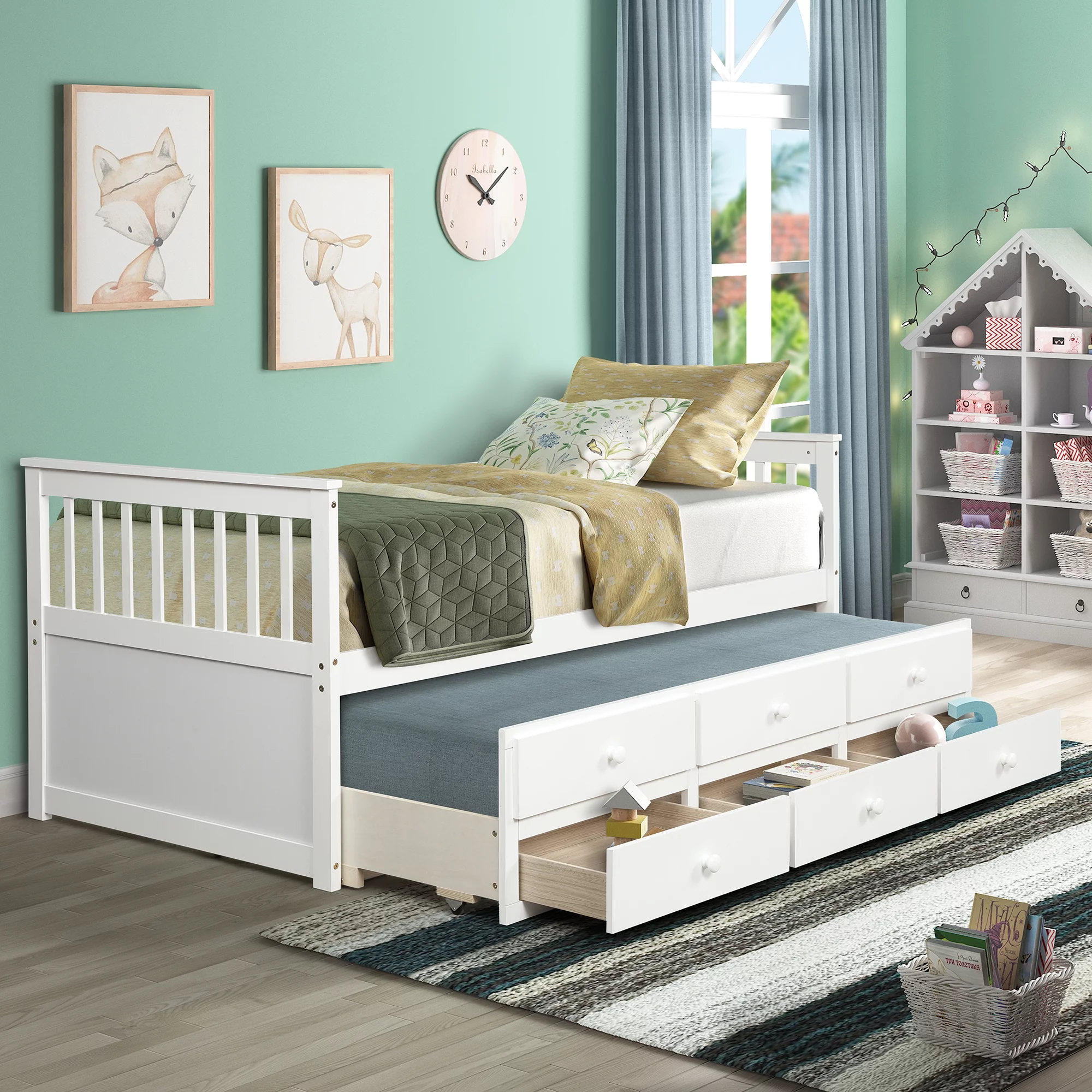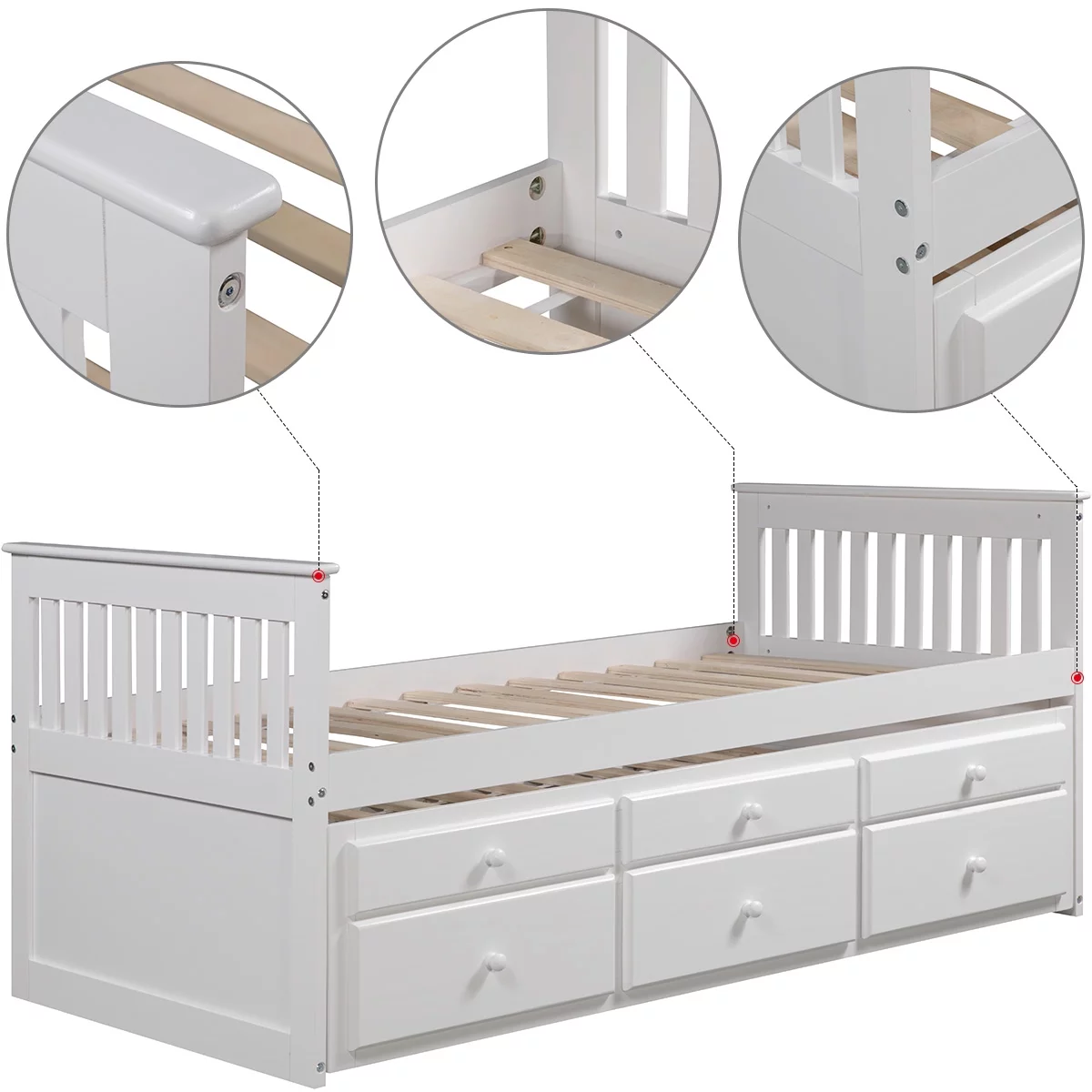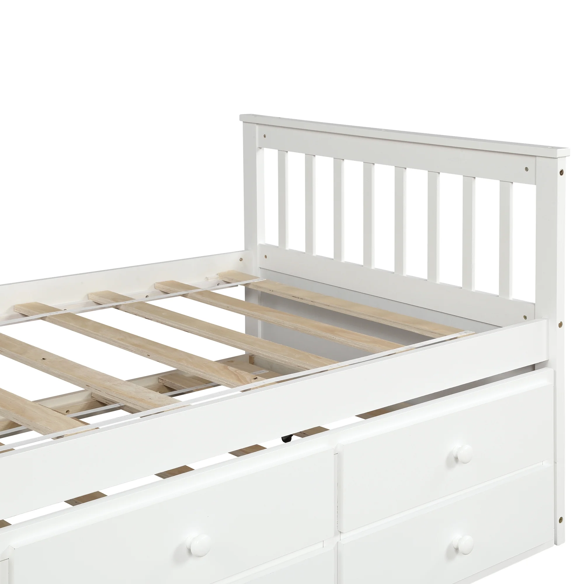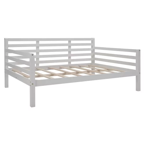 HomeStock Classic Traditional Retro Relaxation White Finished Wood Full Size Daybed With Roll-Out Trundle Bed