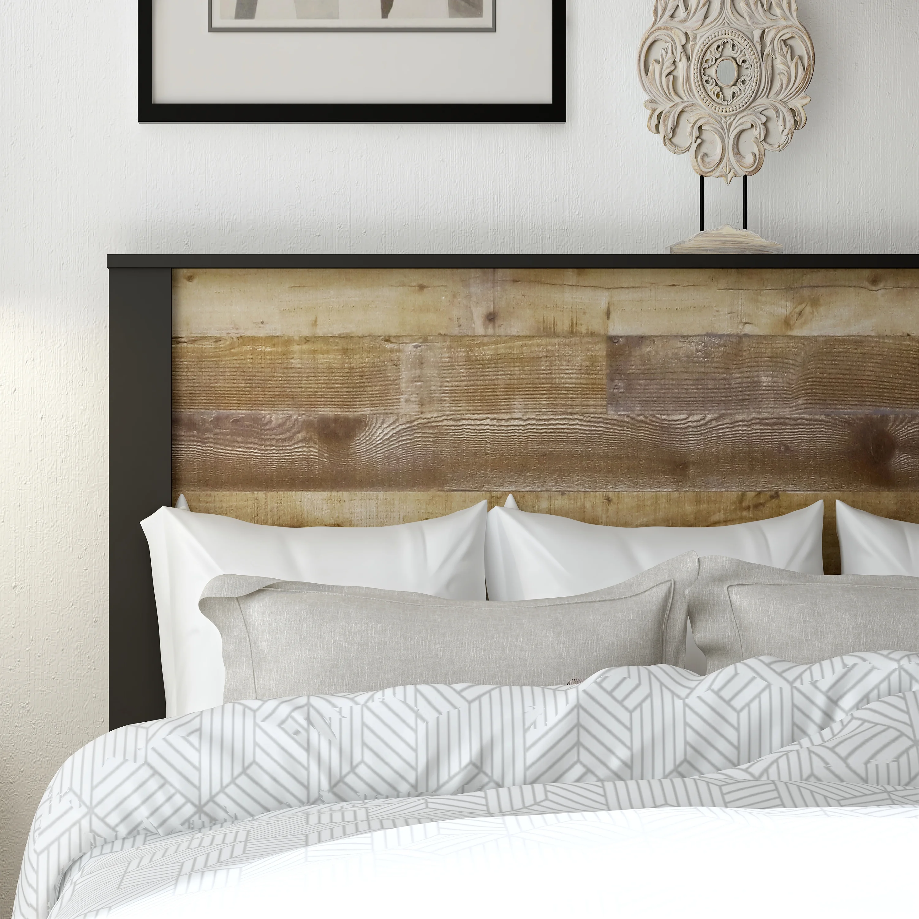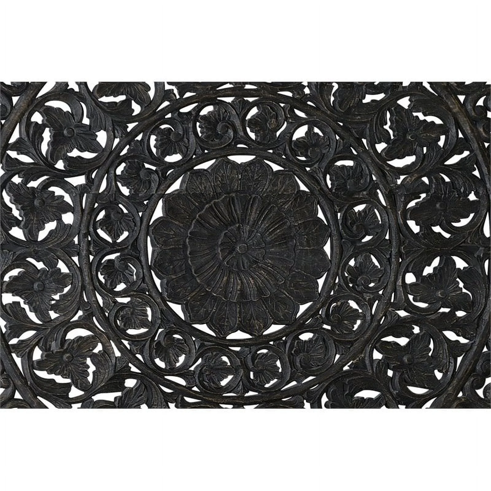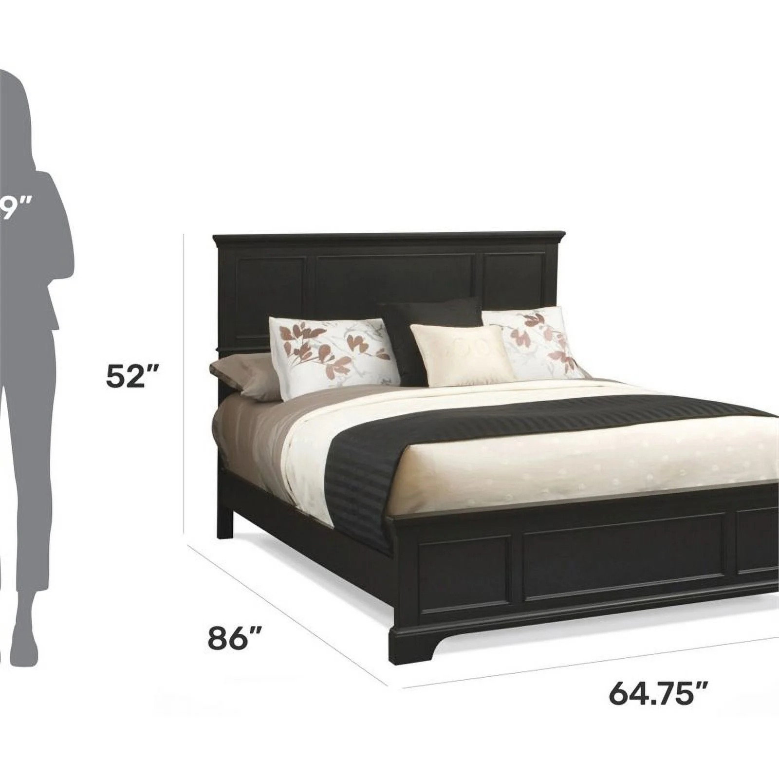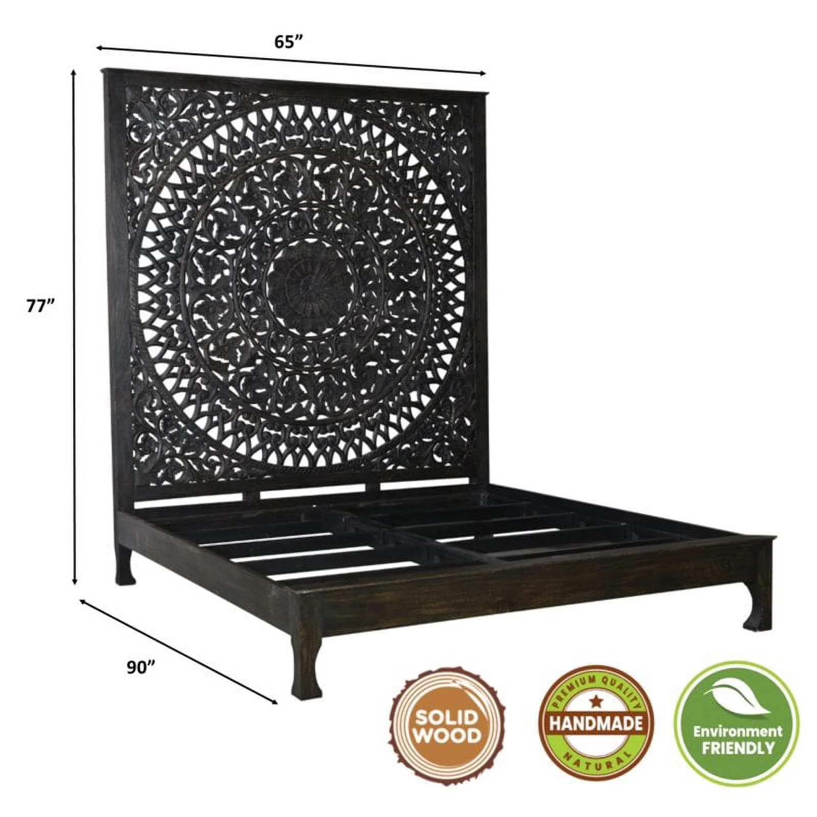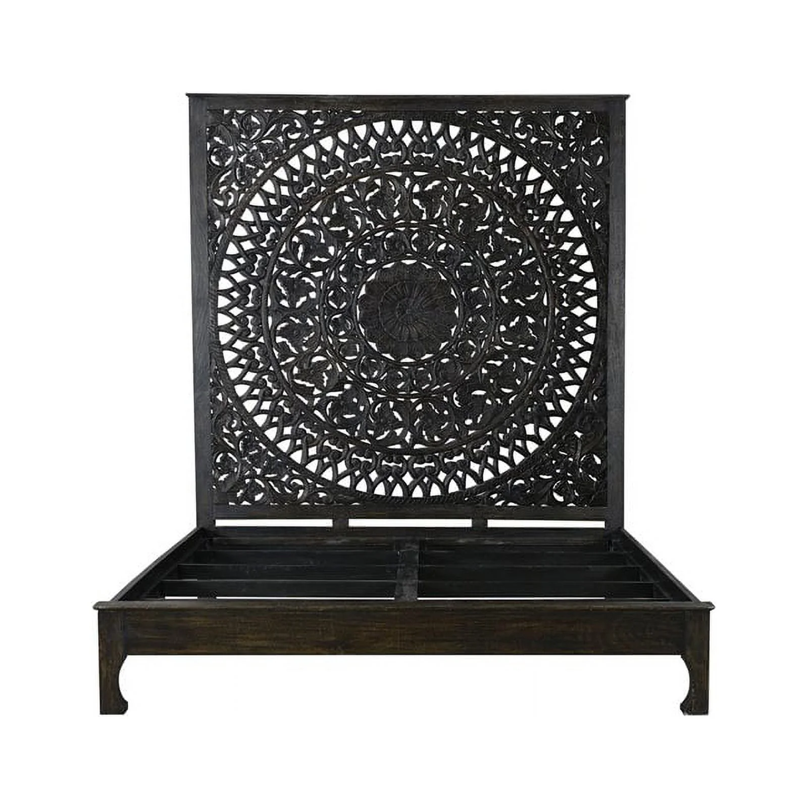 Taran Designs Gianna Carved Solid Wood Queen Panel Bed in Antique Black