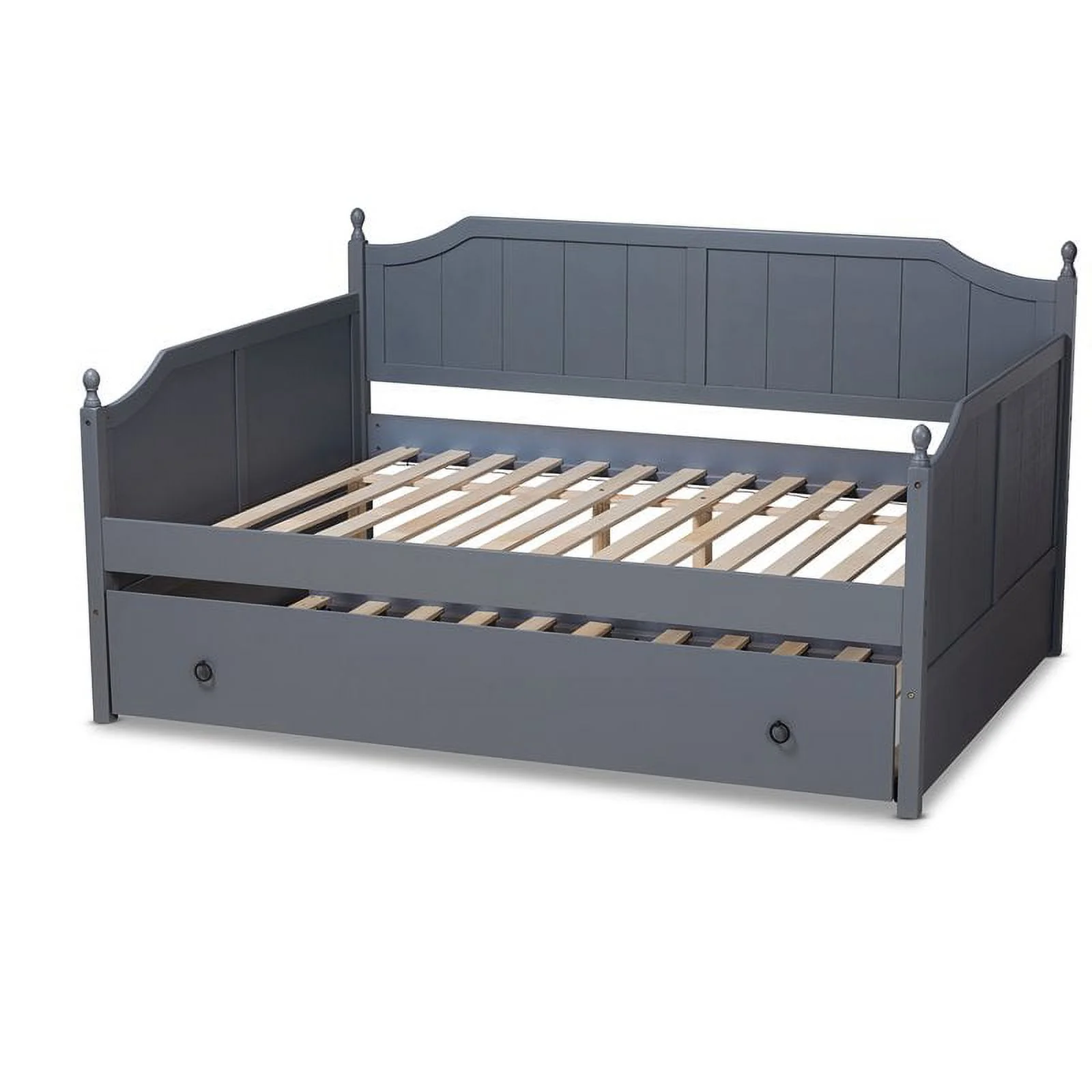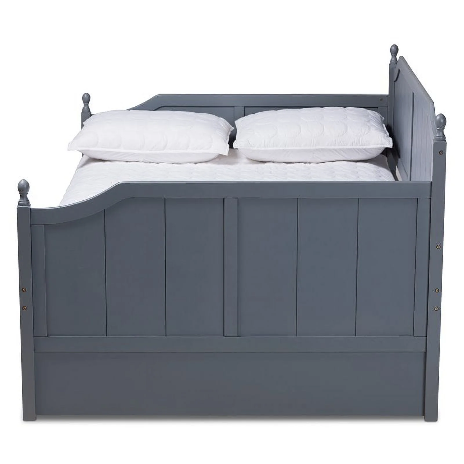 OS Home and Office Furniture Model 83223-3-KD, Solid Pine Full Daybed with Three Drawers and Twin Trundle in Charcoal Gray