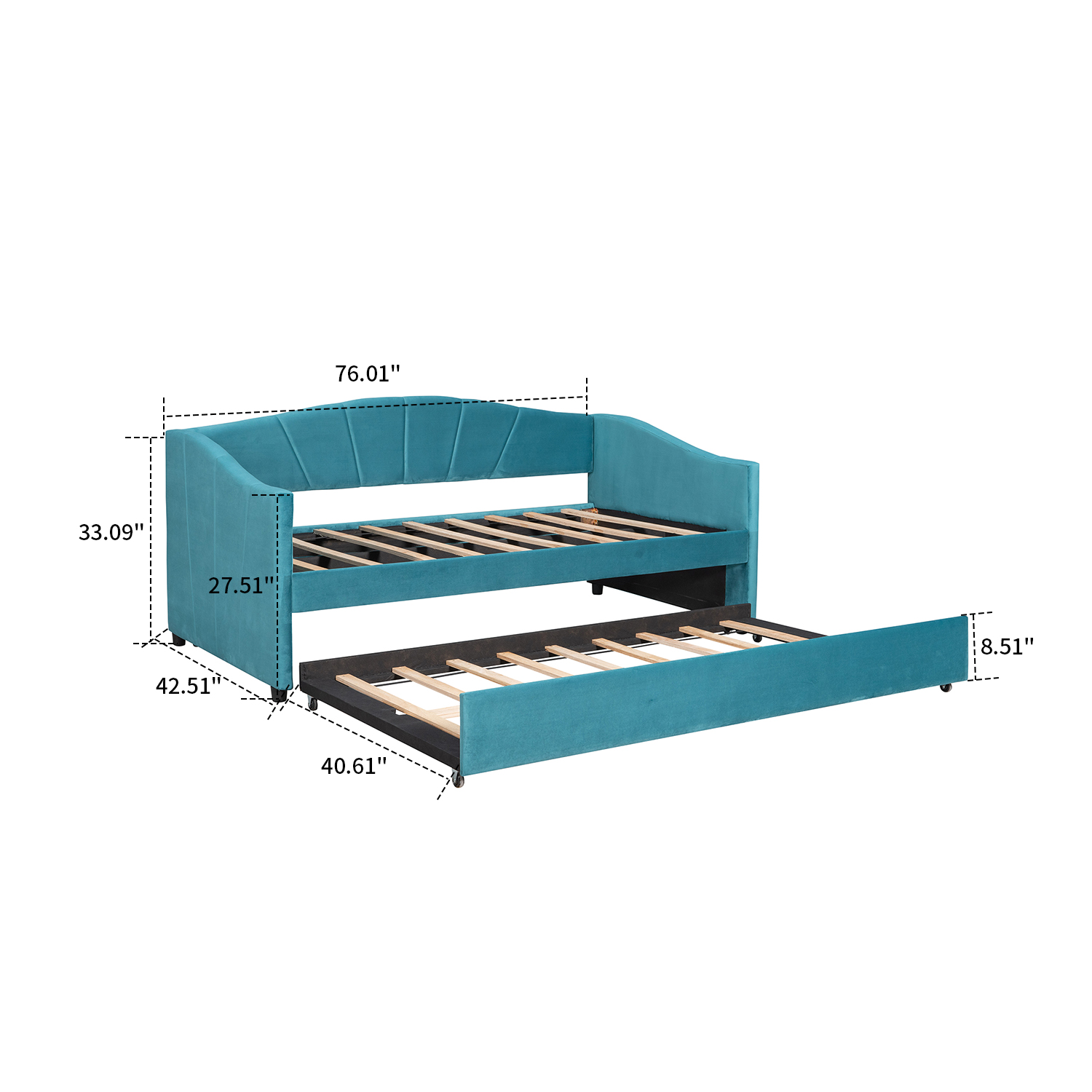 Elegant Twin Size Velvet Fabric Upholstered Daybed with A Trundle, Blue