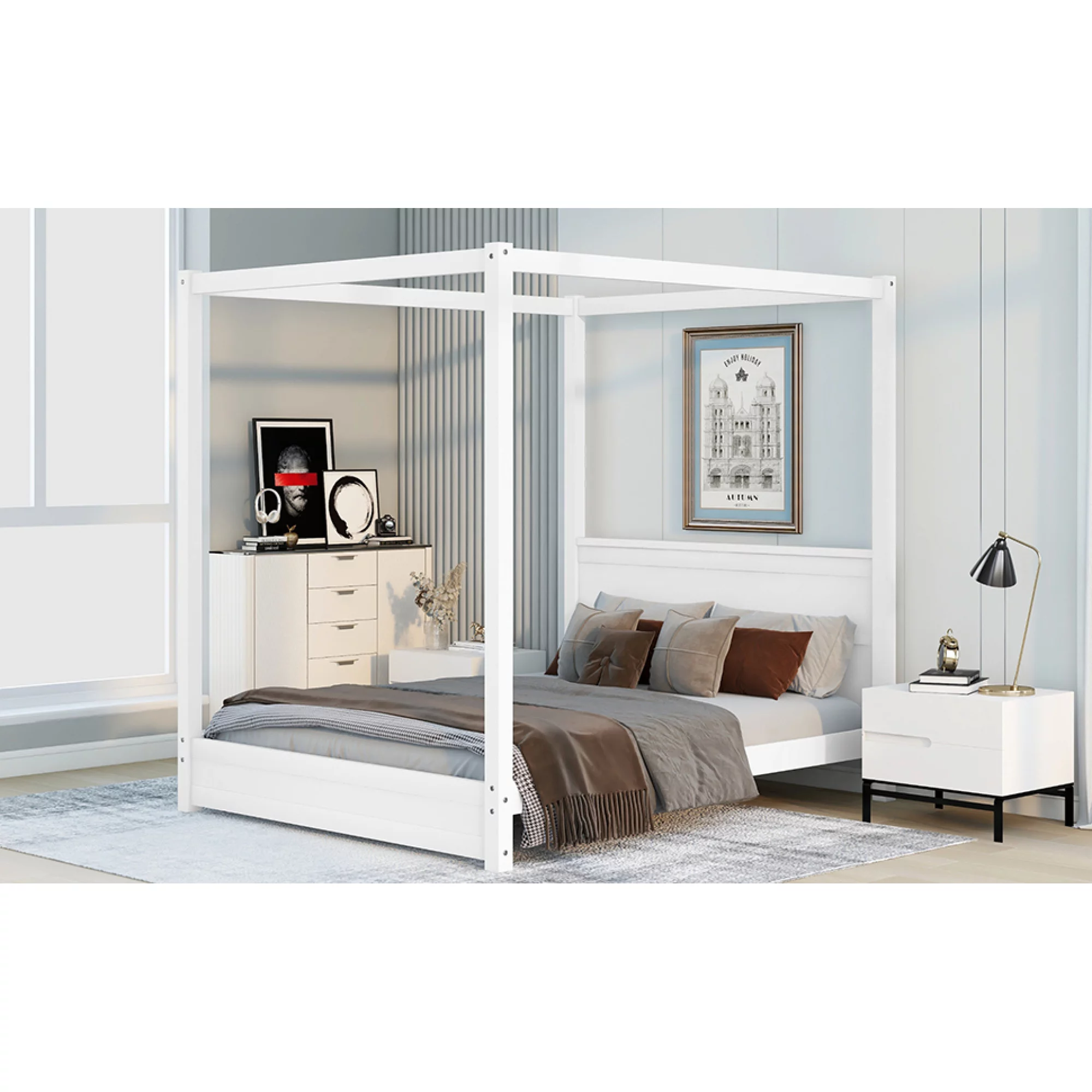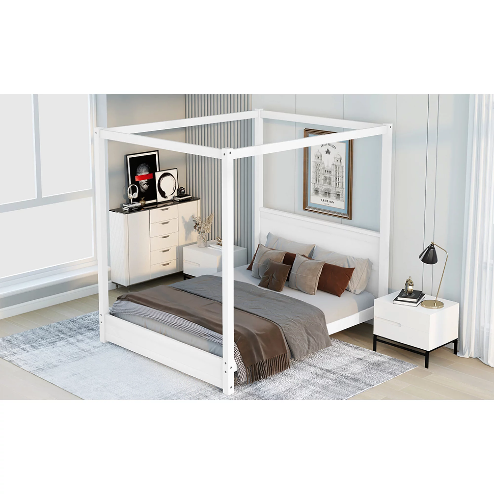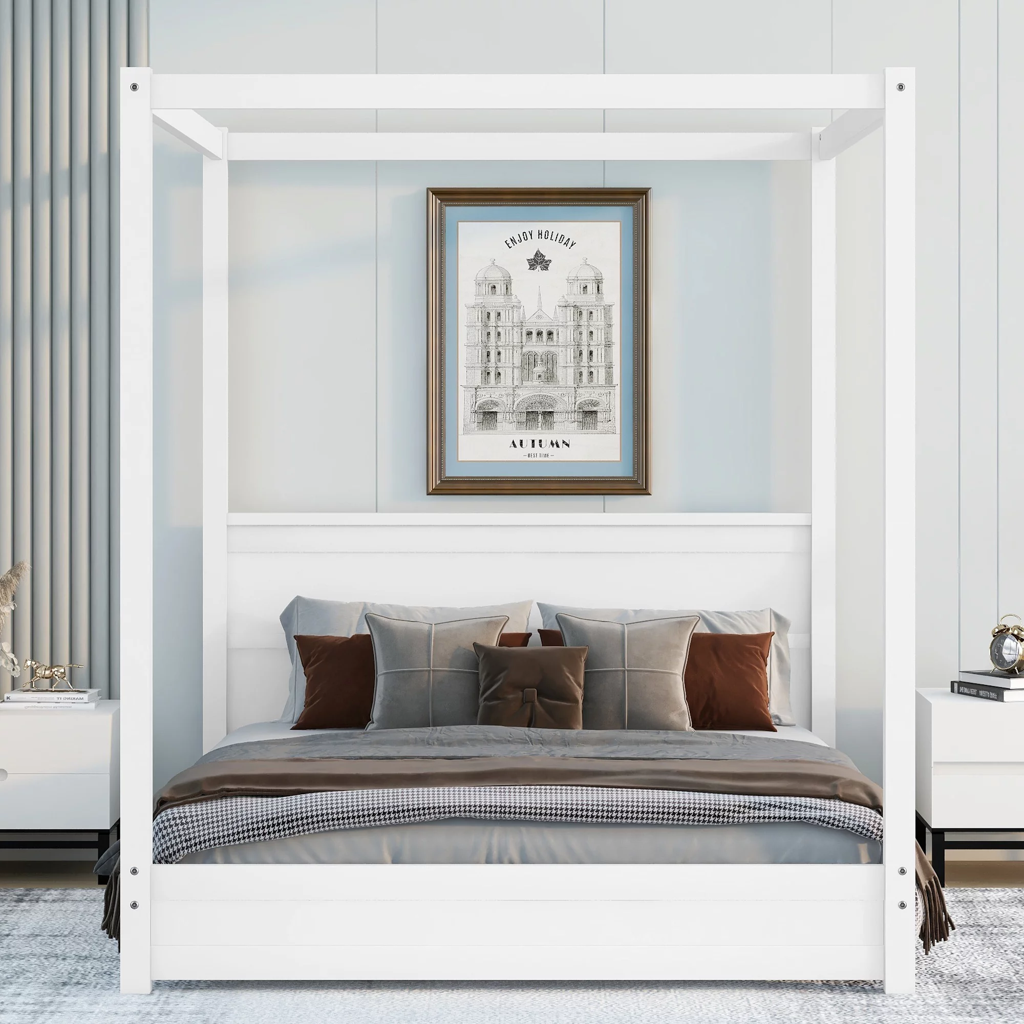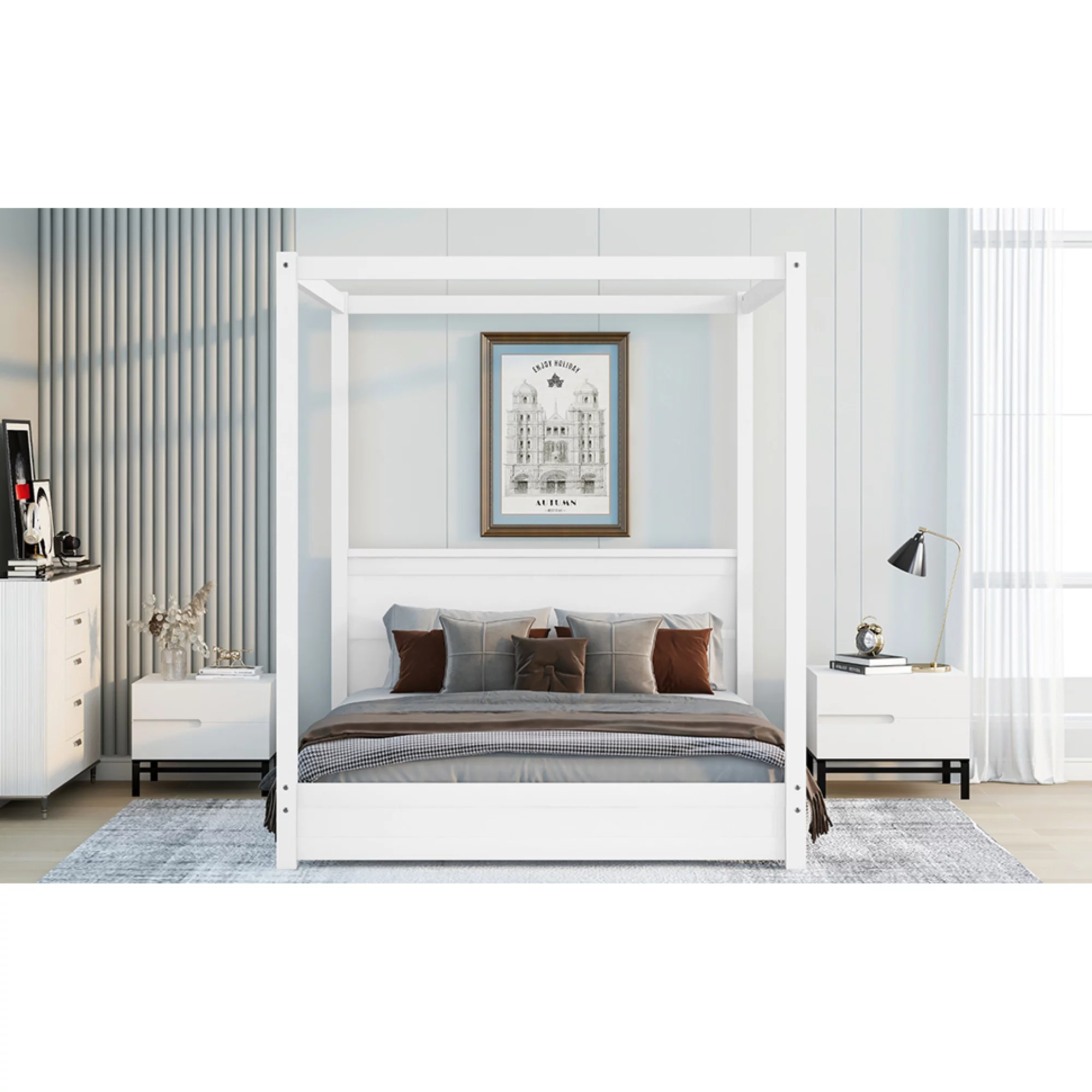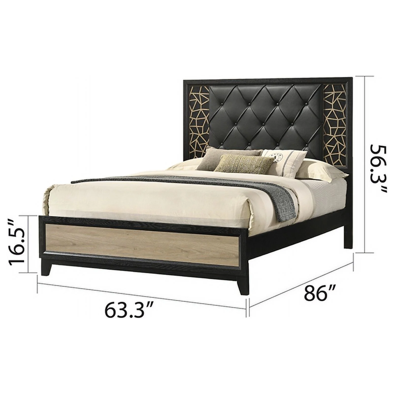 1pc Queen Size Bed Black Color Solid wood Veneers Headboard Footboard Rails Bedframe Design Panels