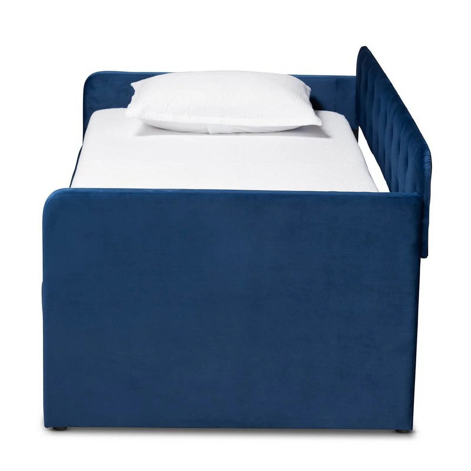 Bowery Hill Navy Blue Velvet Upholstered Twin Size Daybed with Trundle