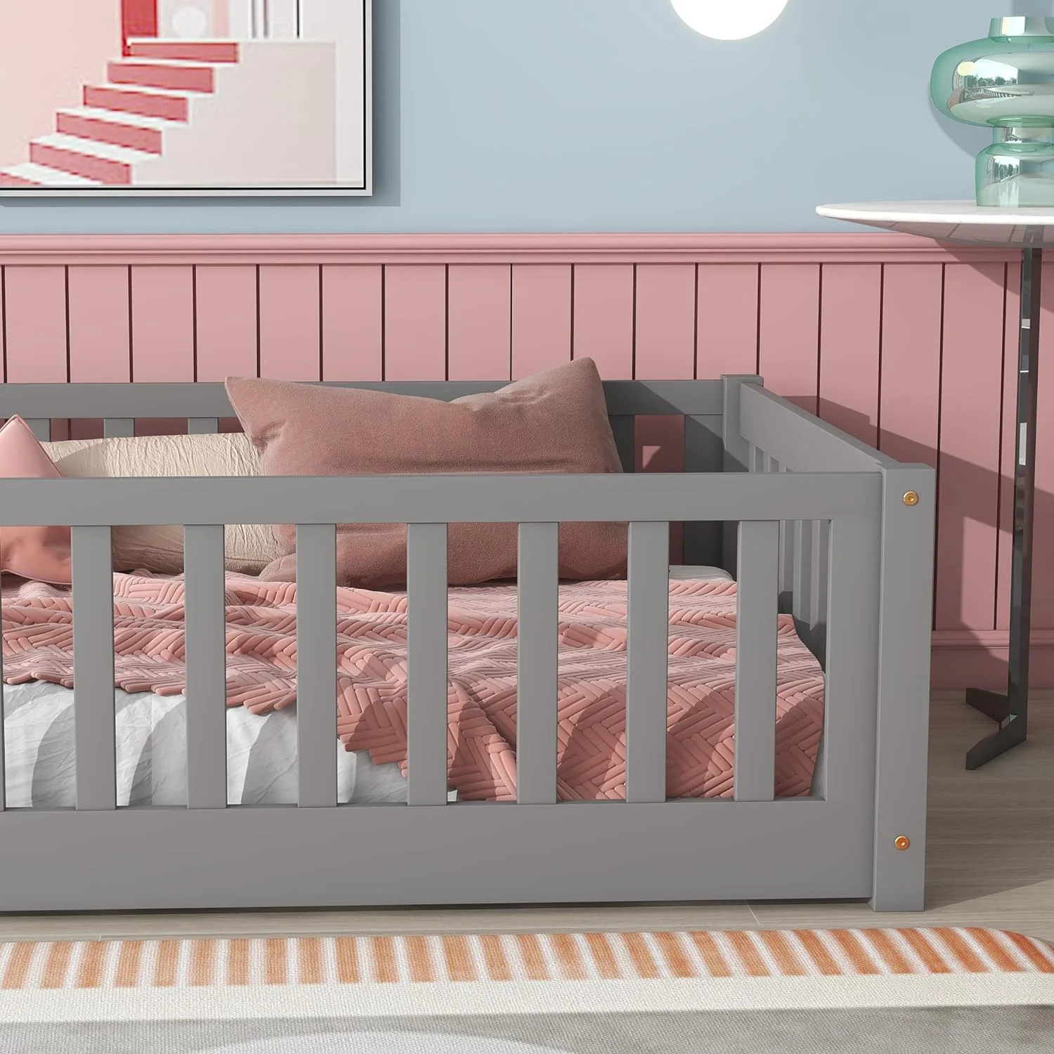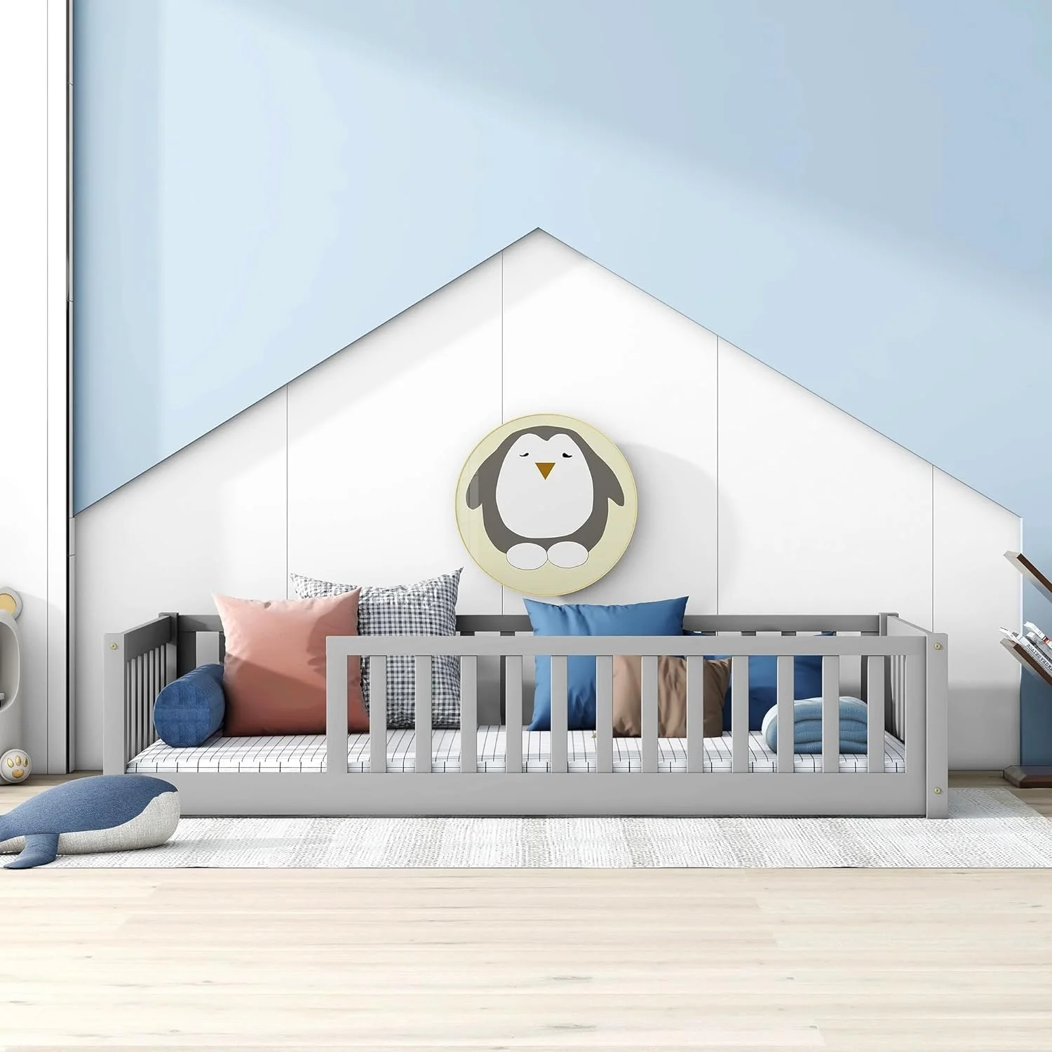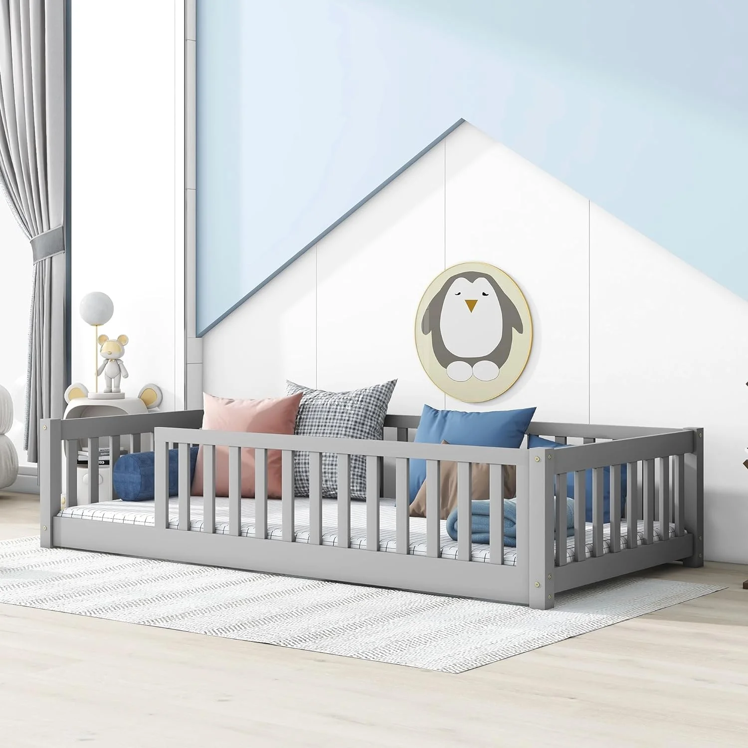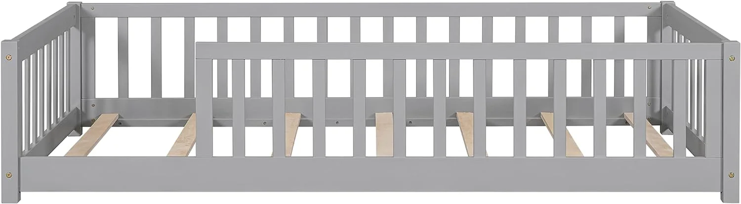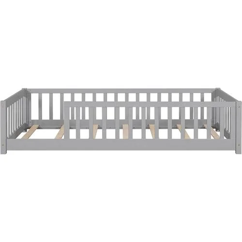 Madison Queen Low Profile Platform Bed with Matching Footboard in Grey