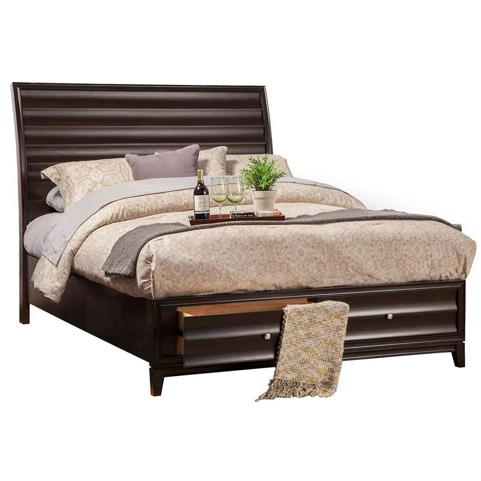 Nantucket Queen Low Profile Platform Bed with Matching Footboard in Espresso