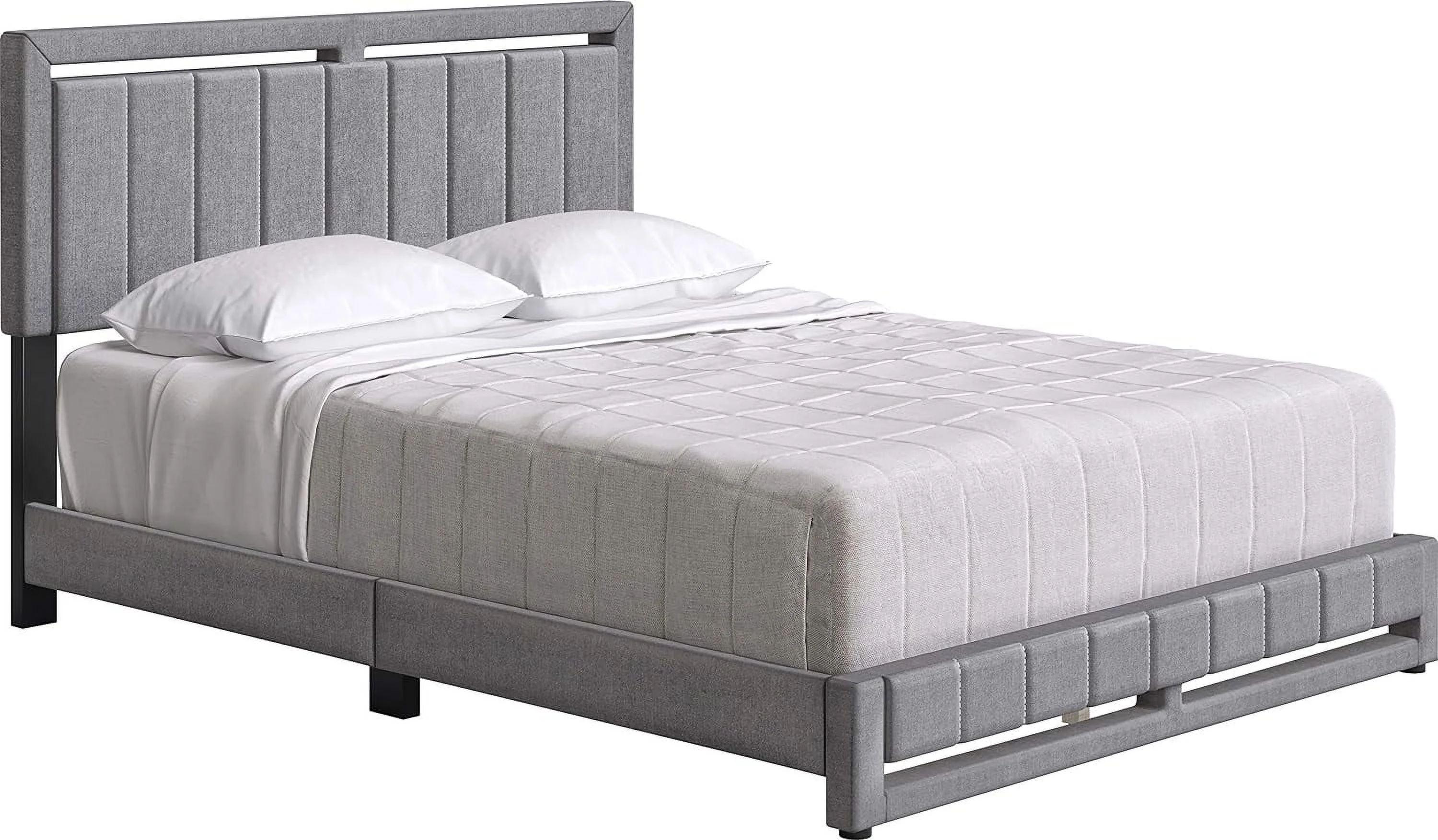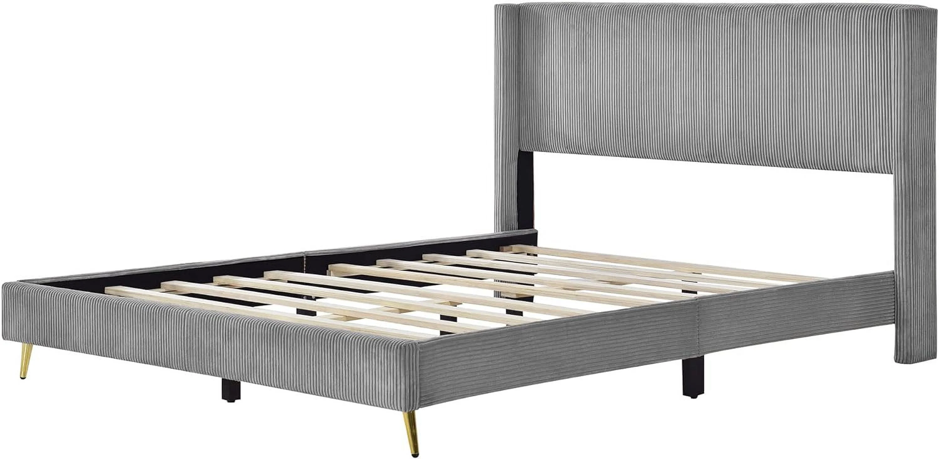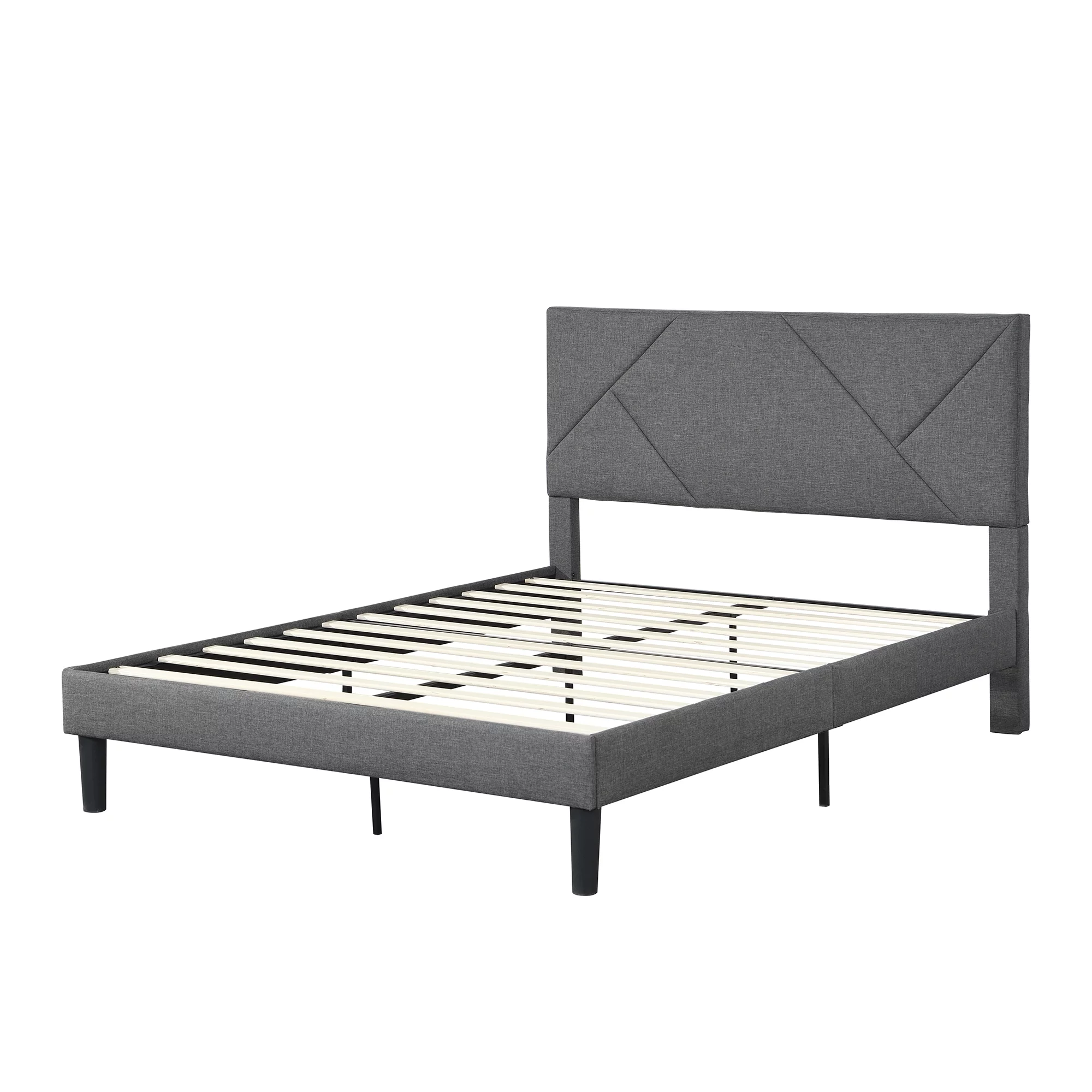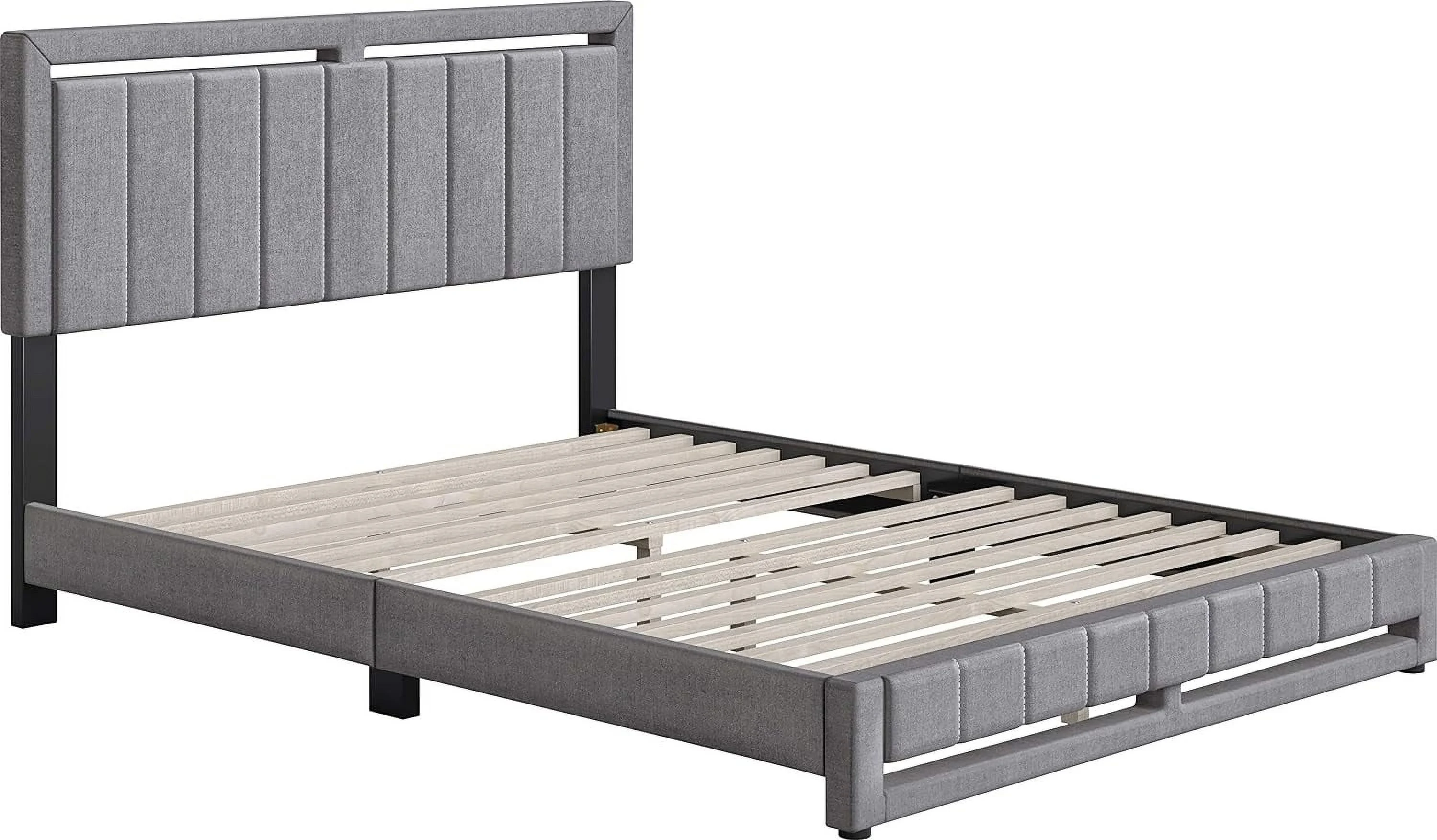 Queen Size Upholstered Platform Bed Frame ,Wood Slat Support, Easy Assembly,Grey