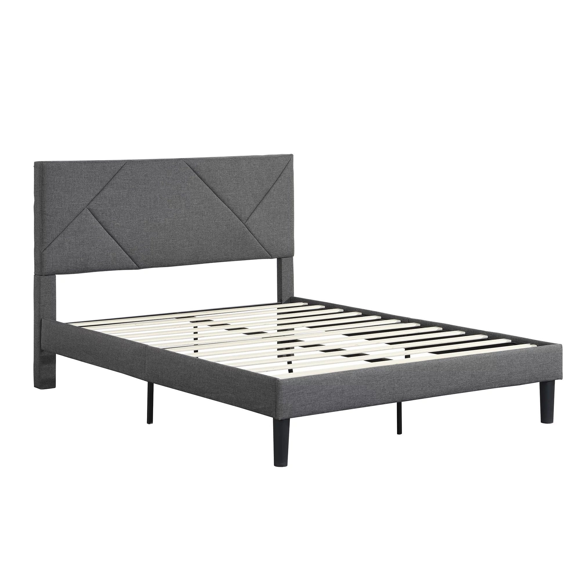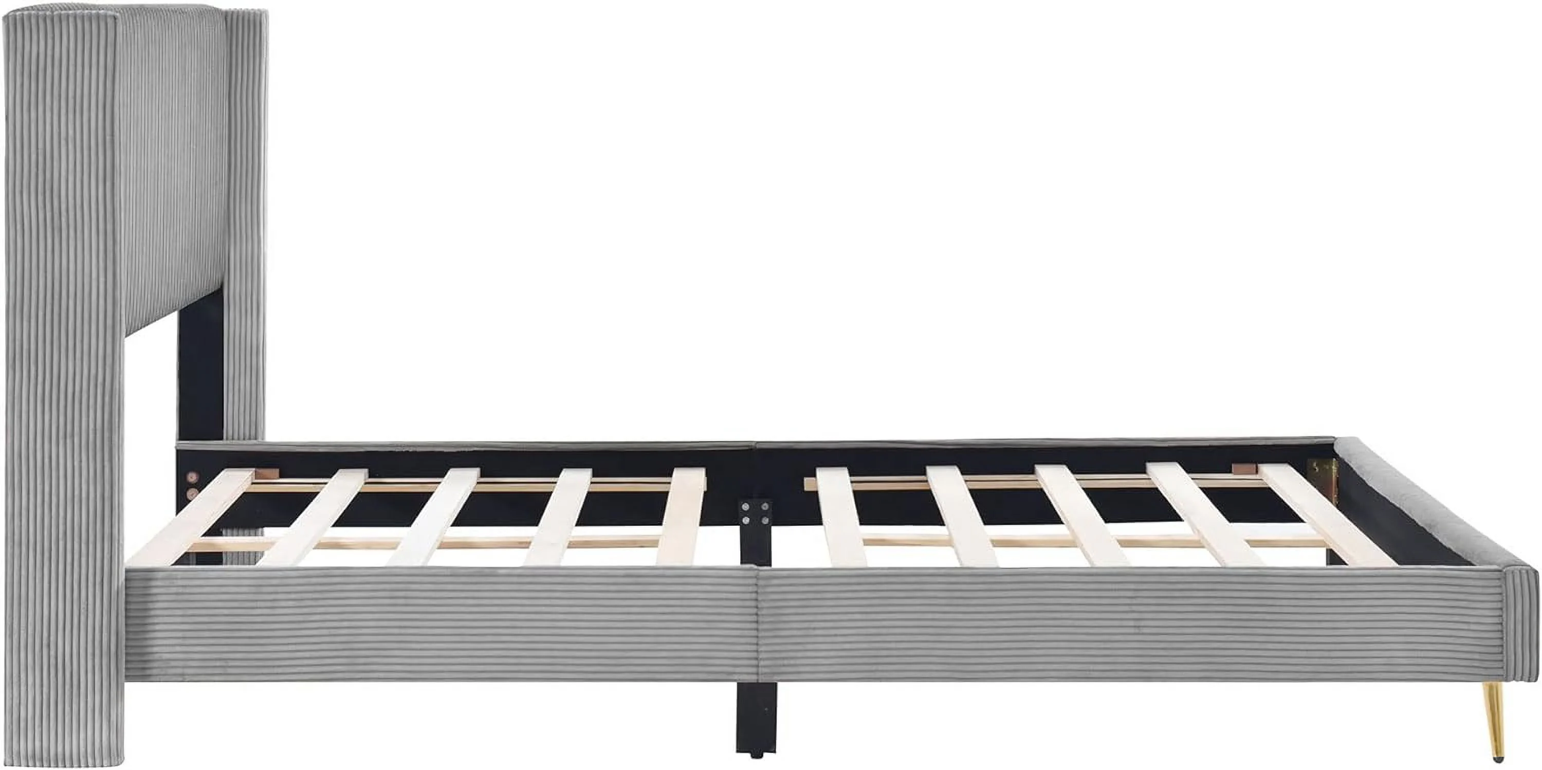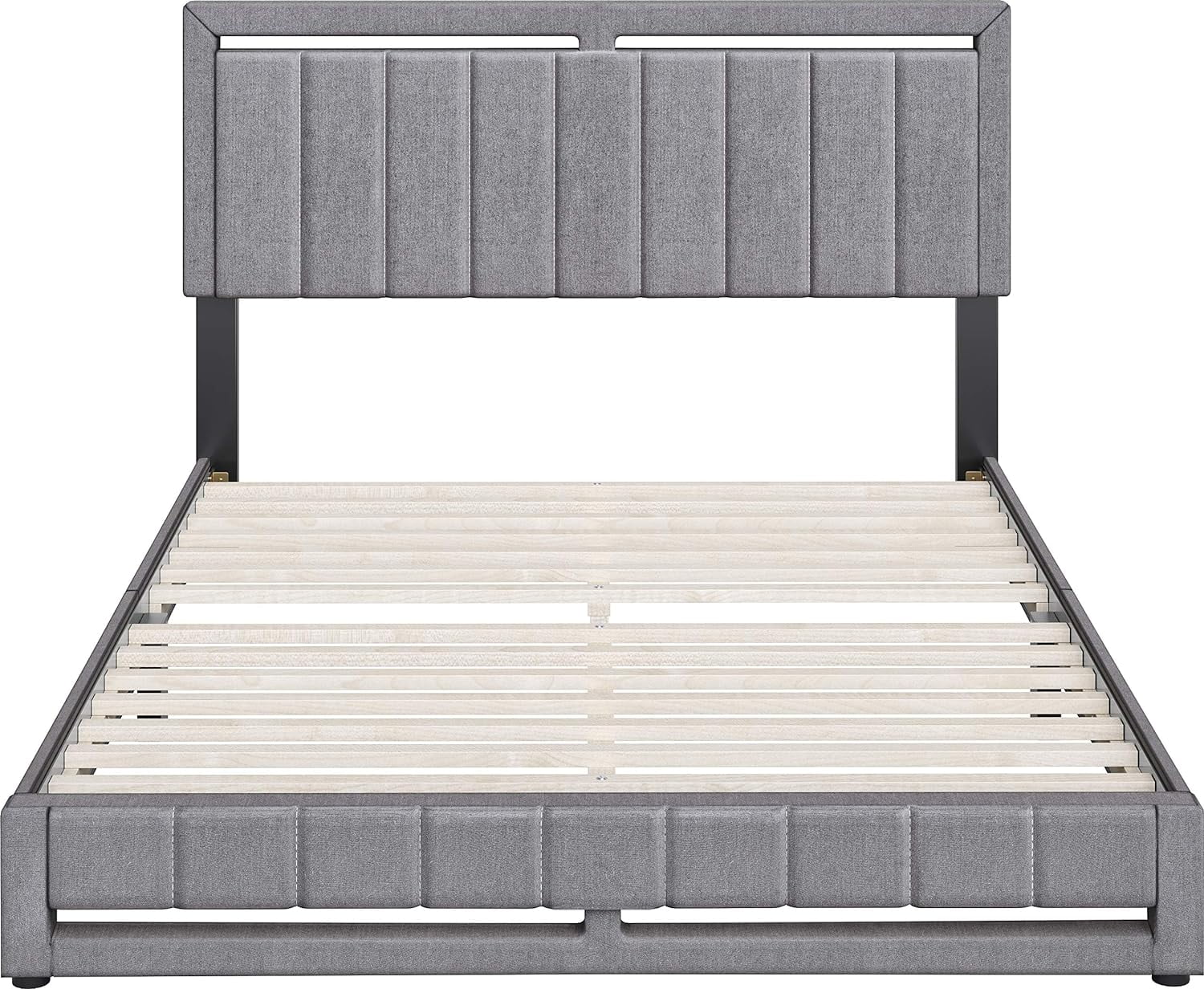 Queen Size Upholstered Platform Bed Frame ,Wood Slat Support, Easy Assembly,Grey