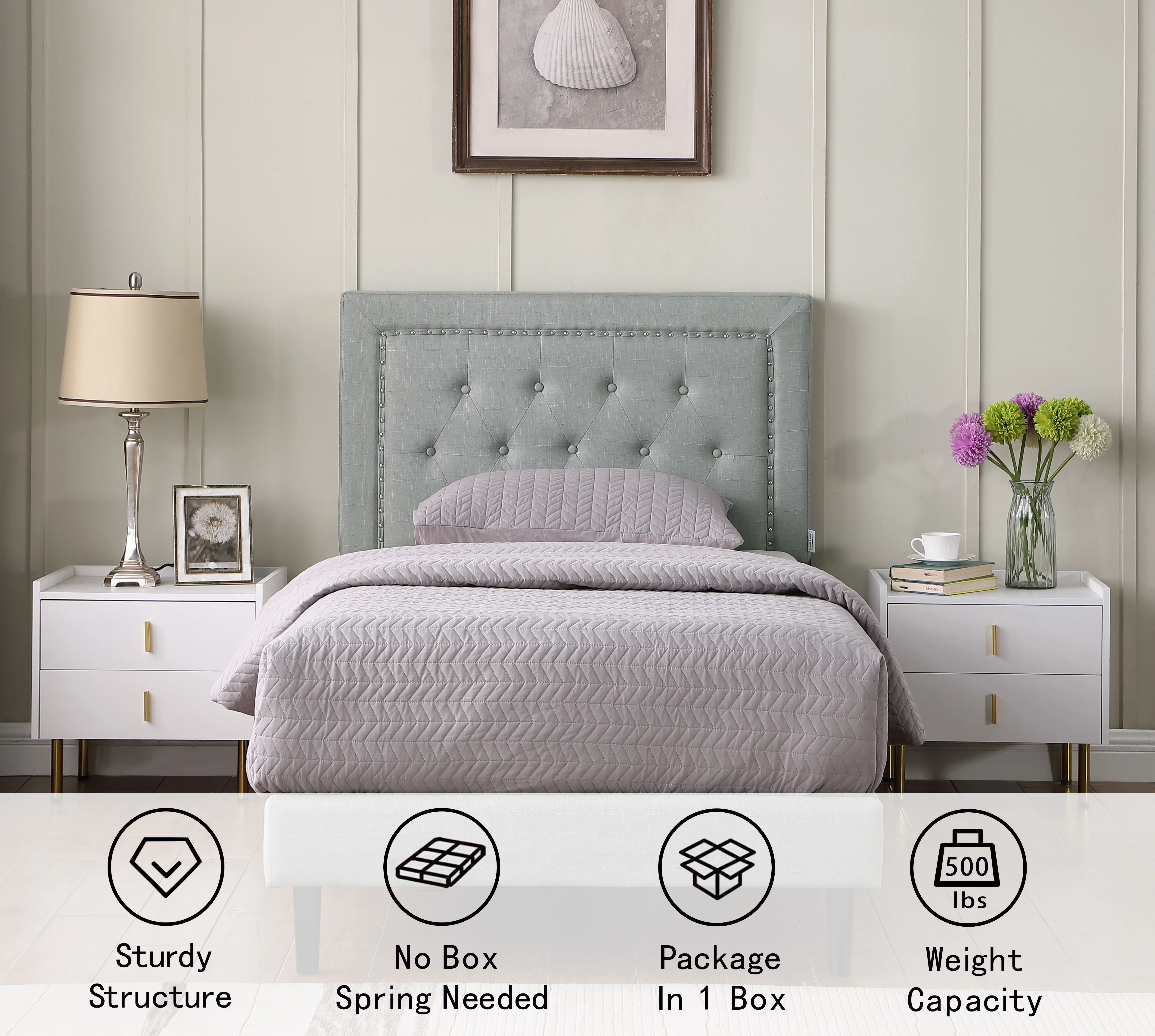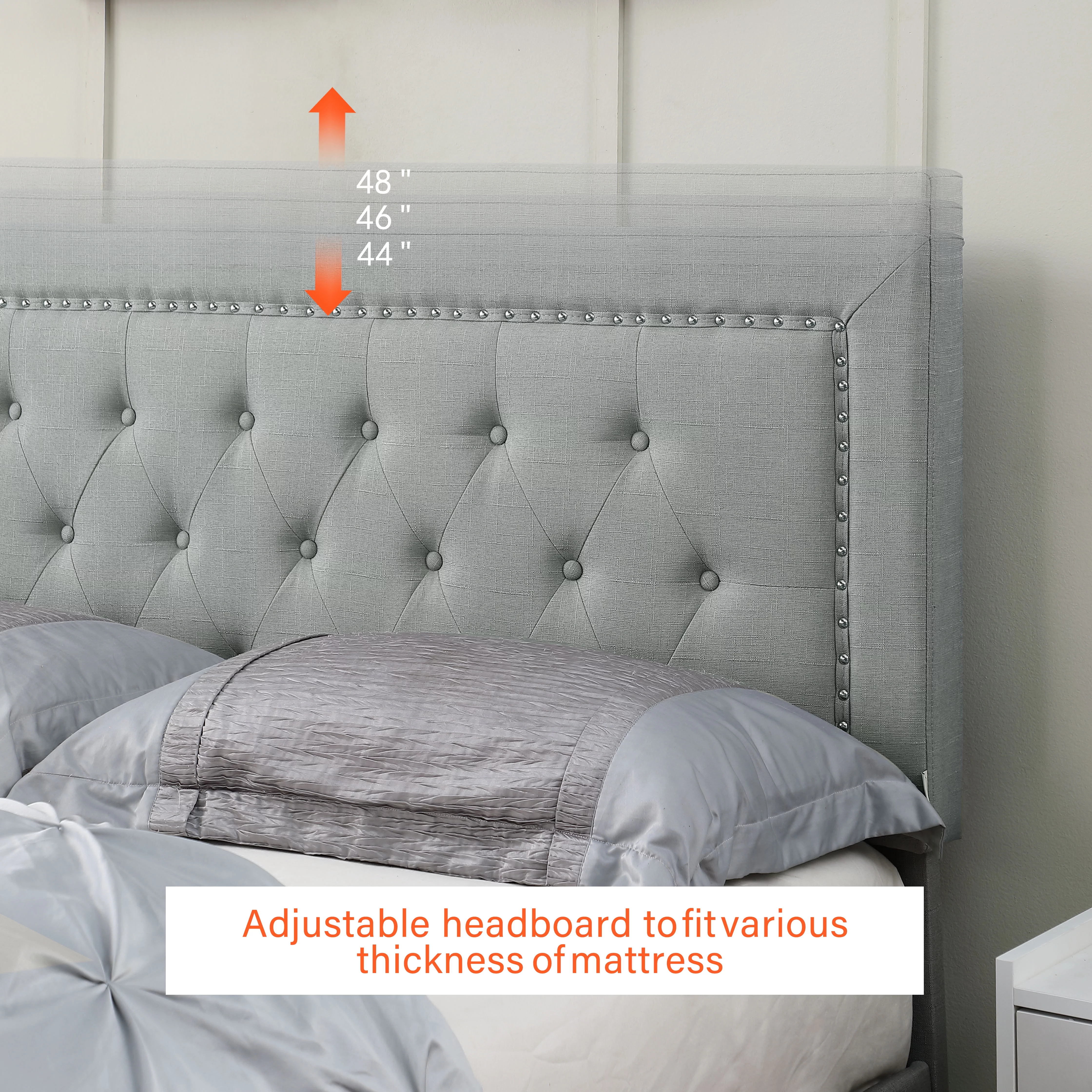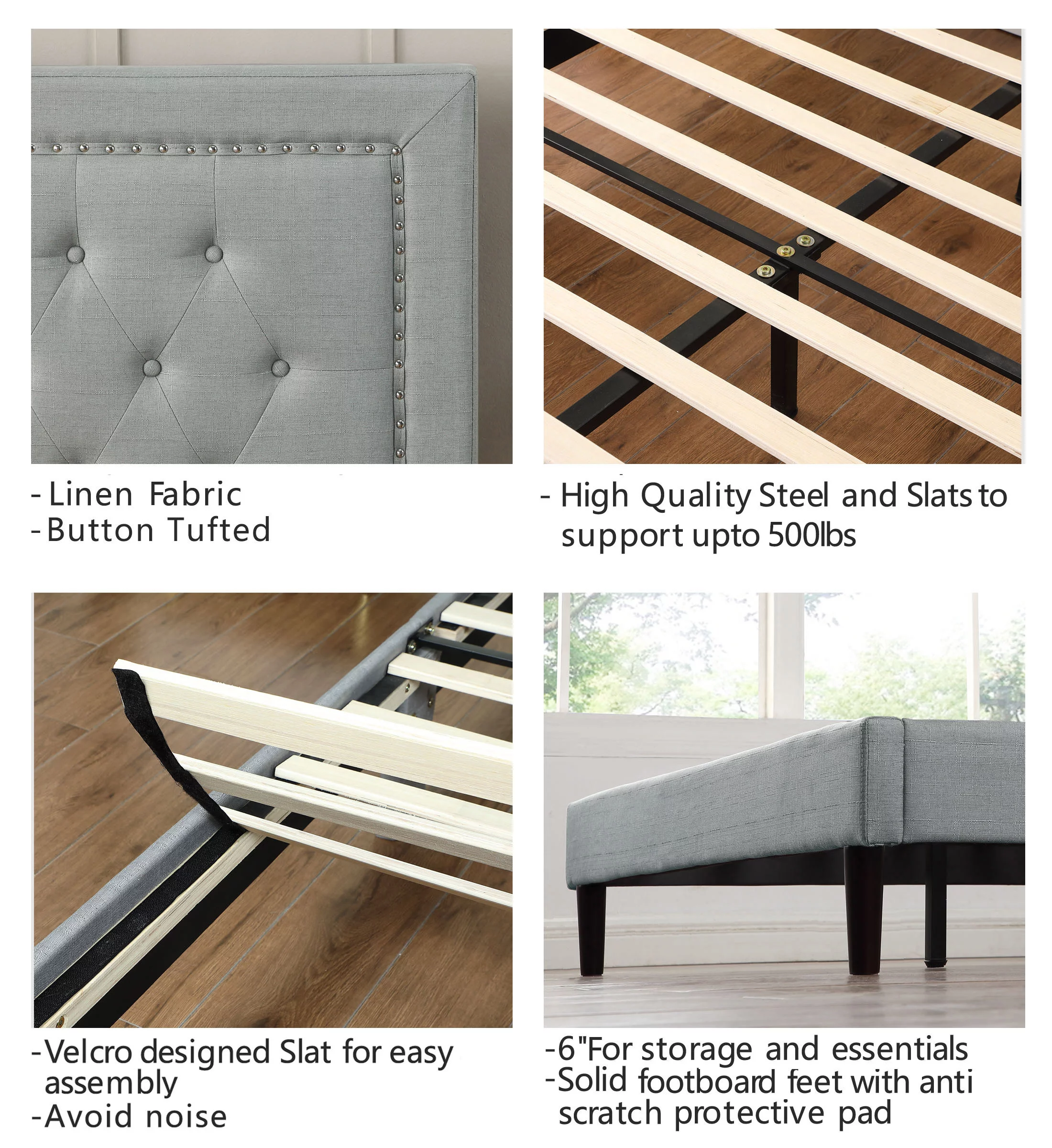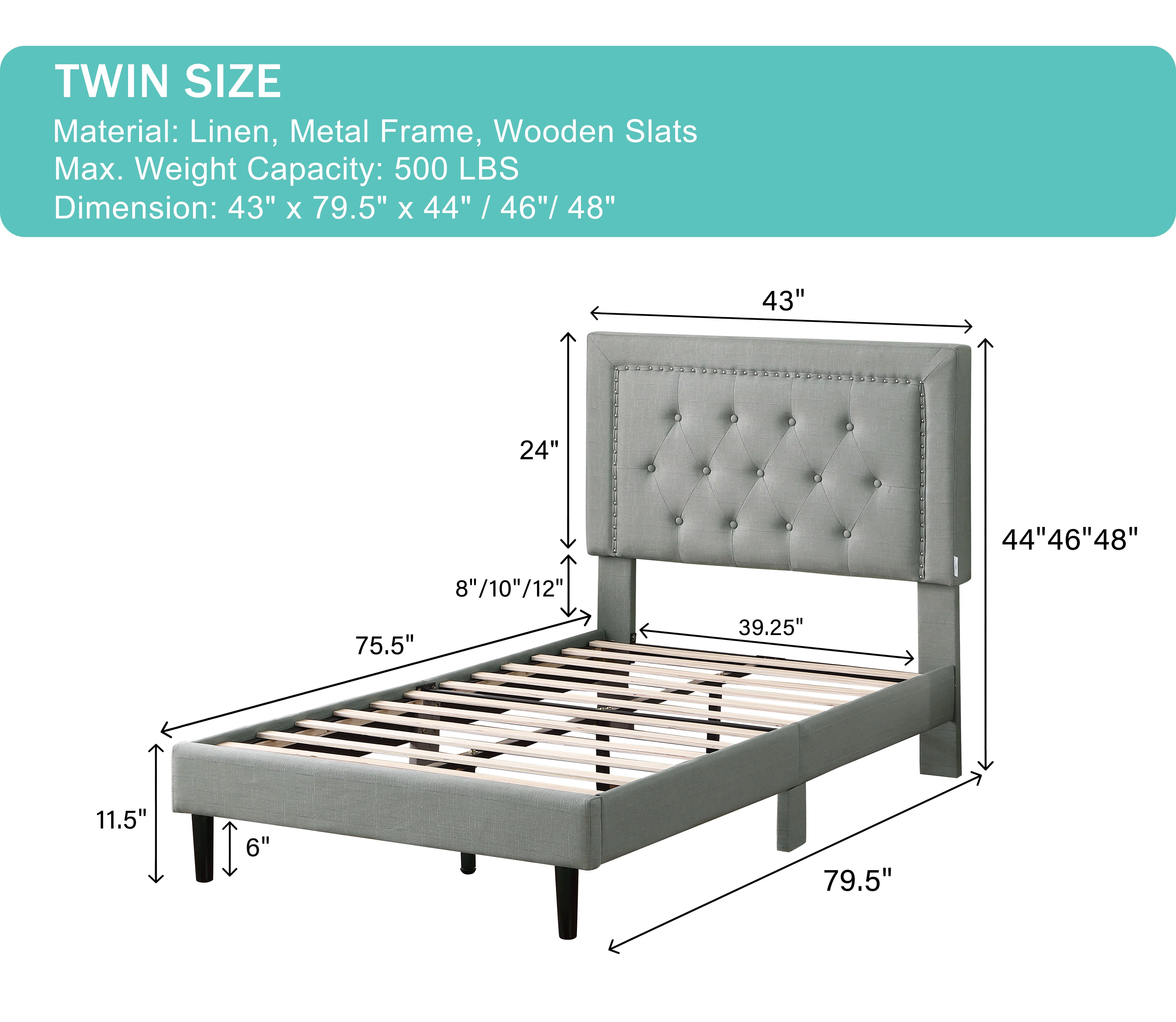 Queen Size Upholstered Platform Bed Frame ,Wood Slat Support, Easy Assembly,Grey