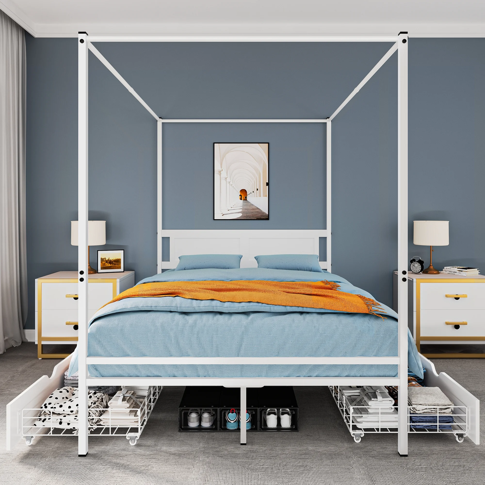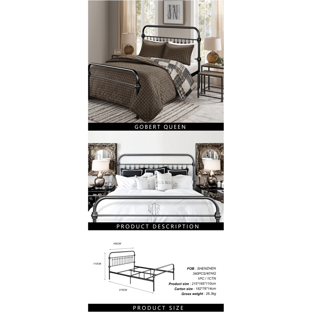 Teledu Metal Bed Frame Full Size Standerd Bed Frame (Black) (86.4" Lx59.6" Wx44" H)