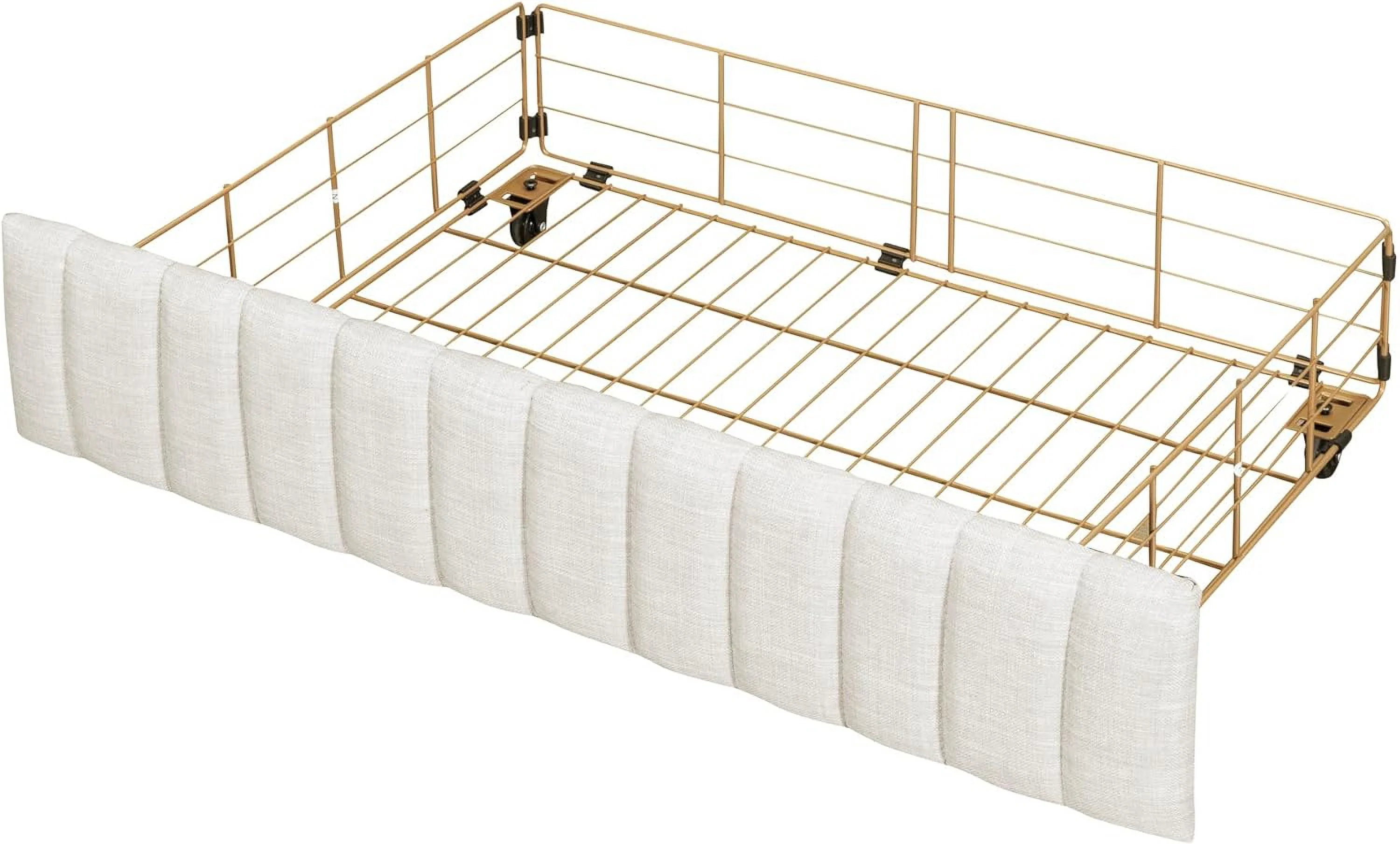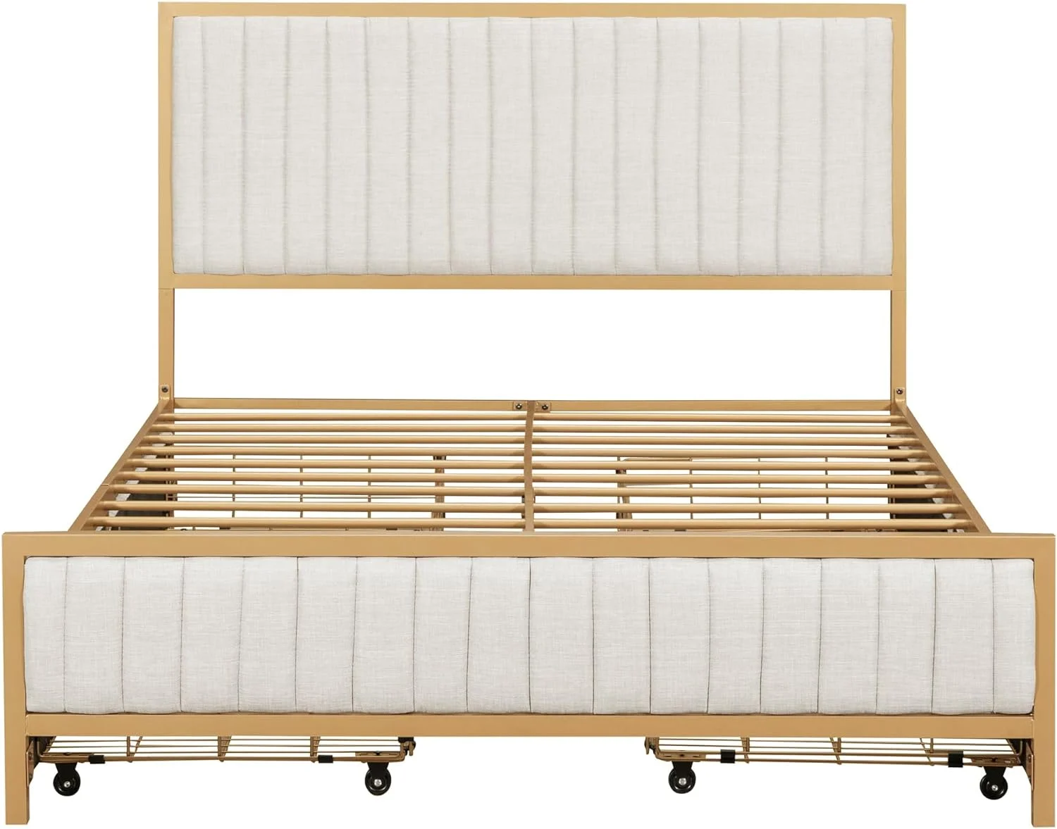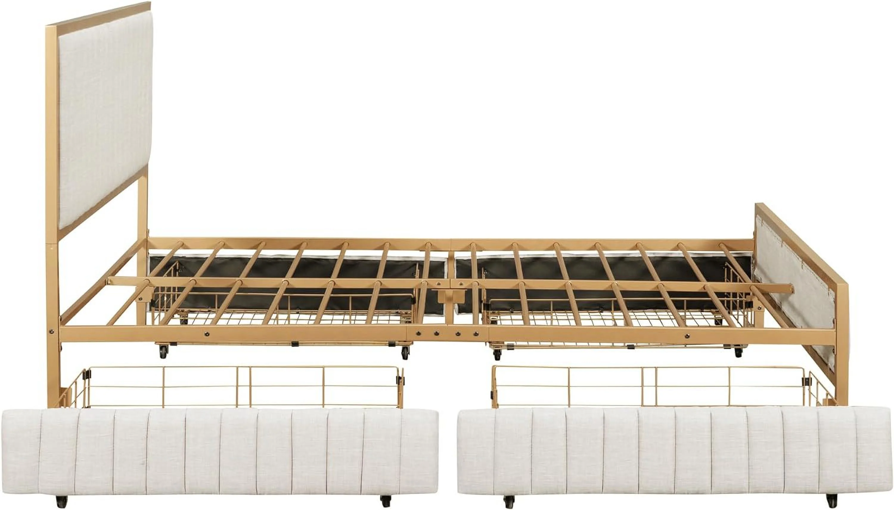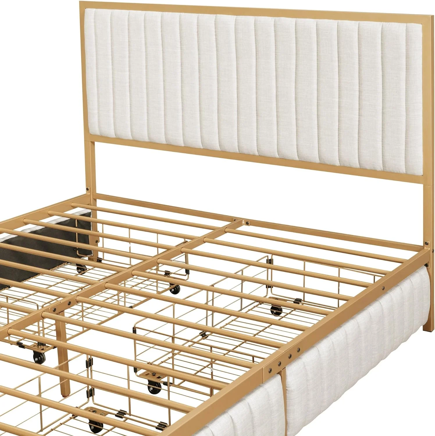 Modern Linen Curved Upholstered Platform Bed , Solid Wood Frame , Nailhead Trim, Cream (Queen)