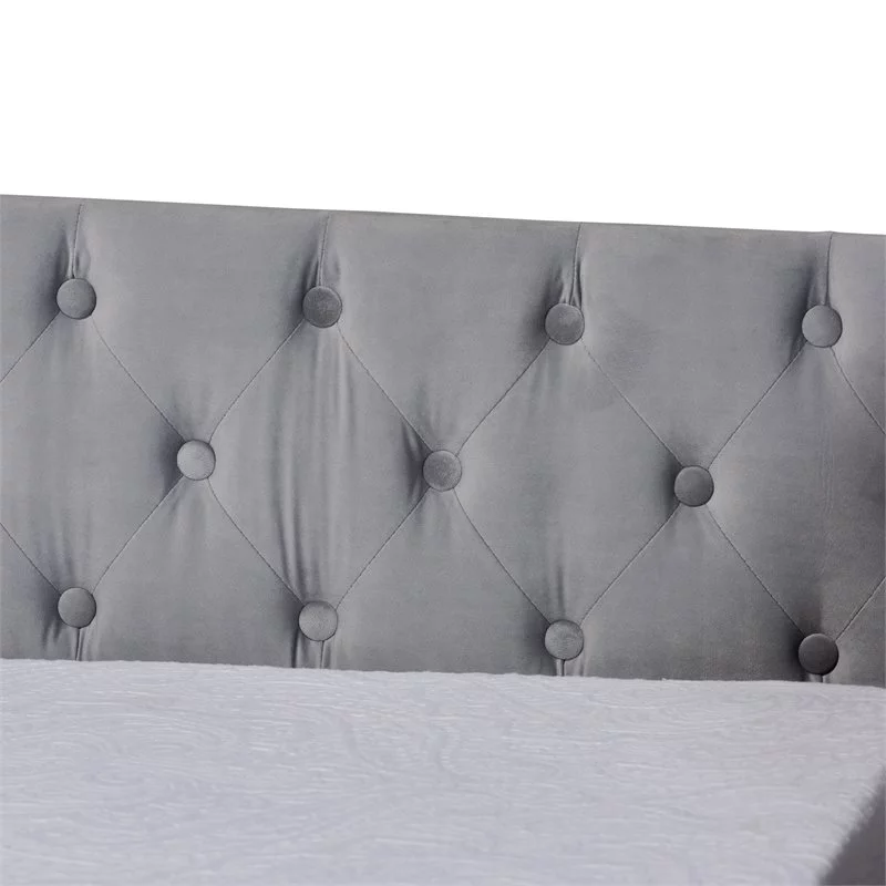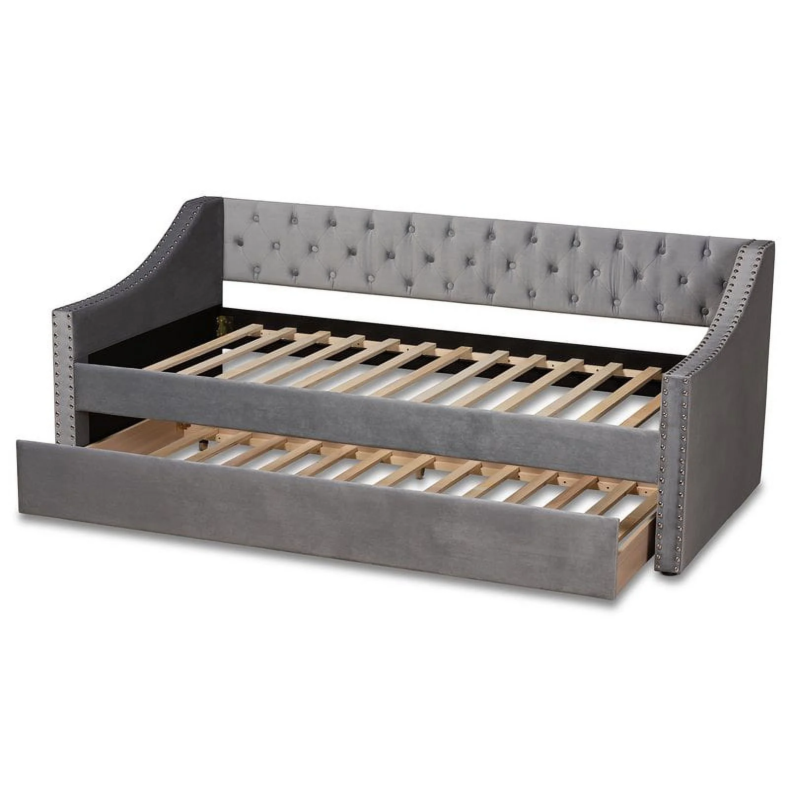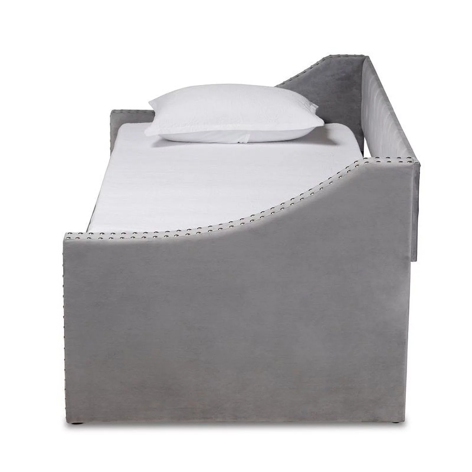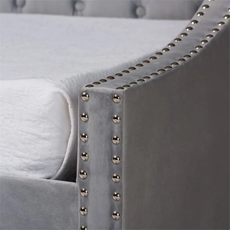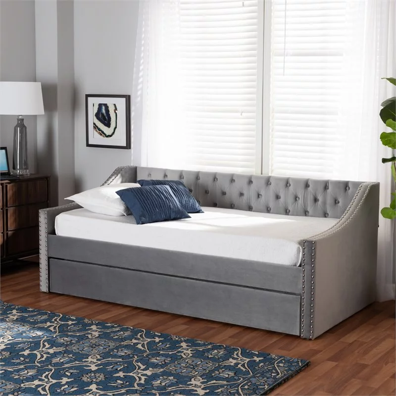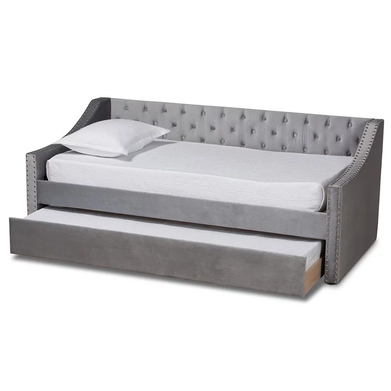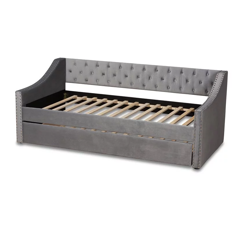 Bowery Hill Contemporary Velvet Upholstered Twin Size Daybed w/ Trundle in Gray