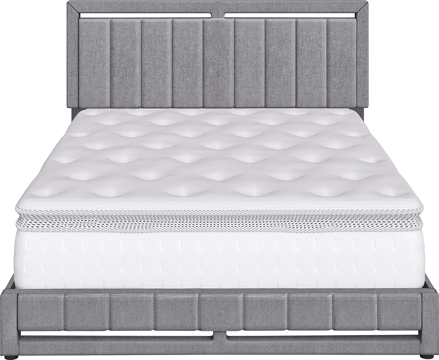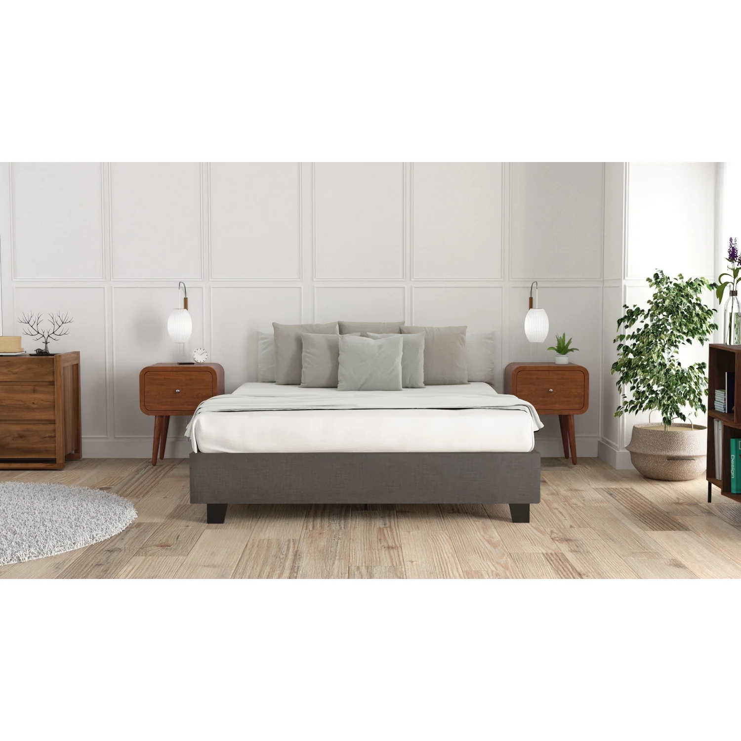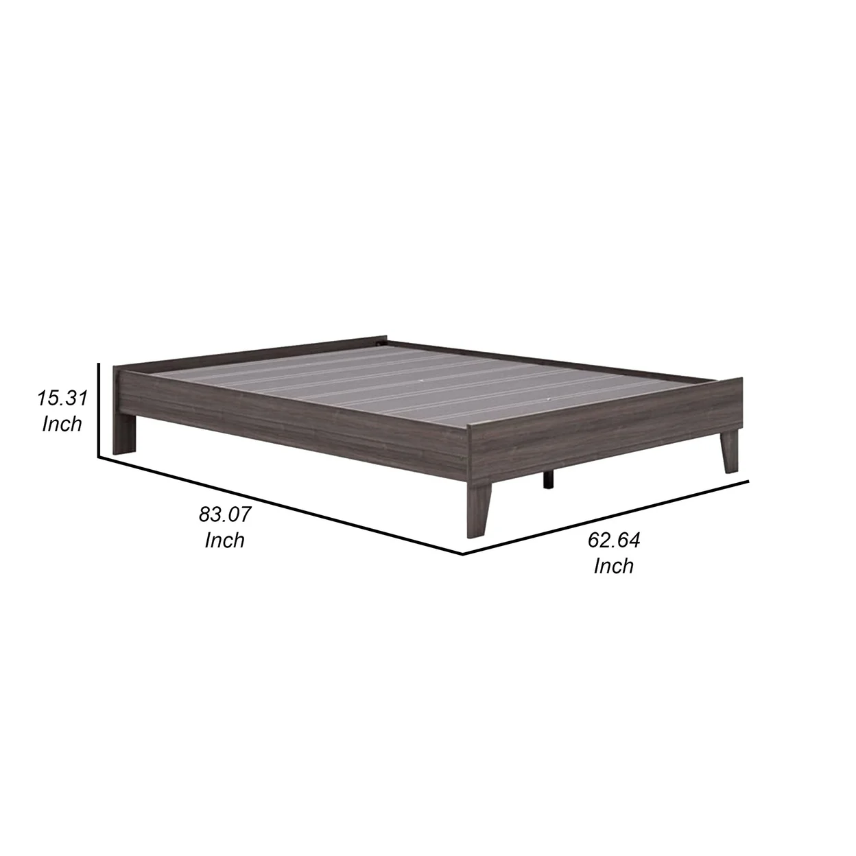 15.31 in. Zof Low Profile Footboard Rails Wood Platform Bed, Rustic Gray - Queen Size