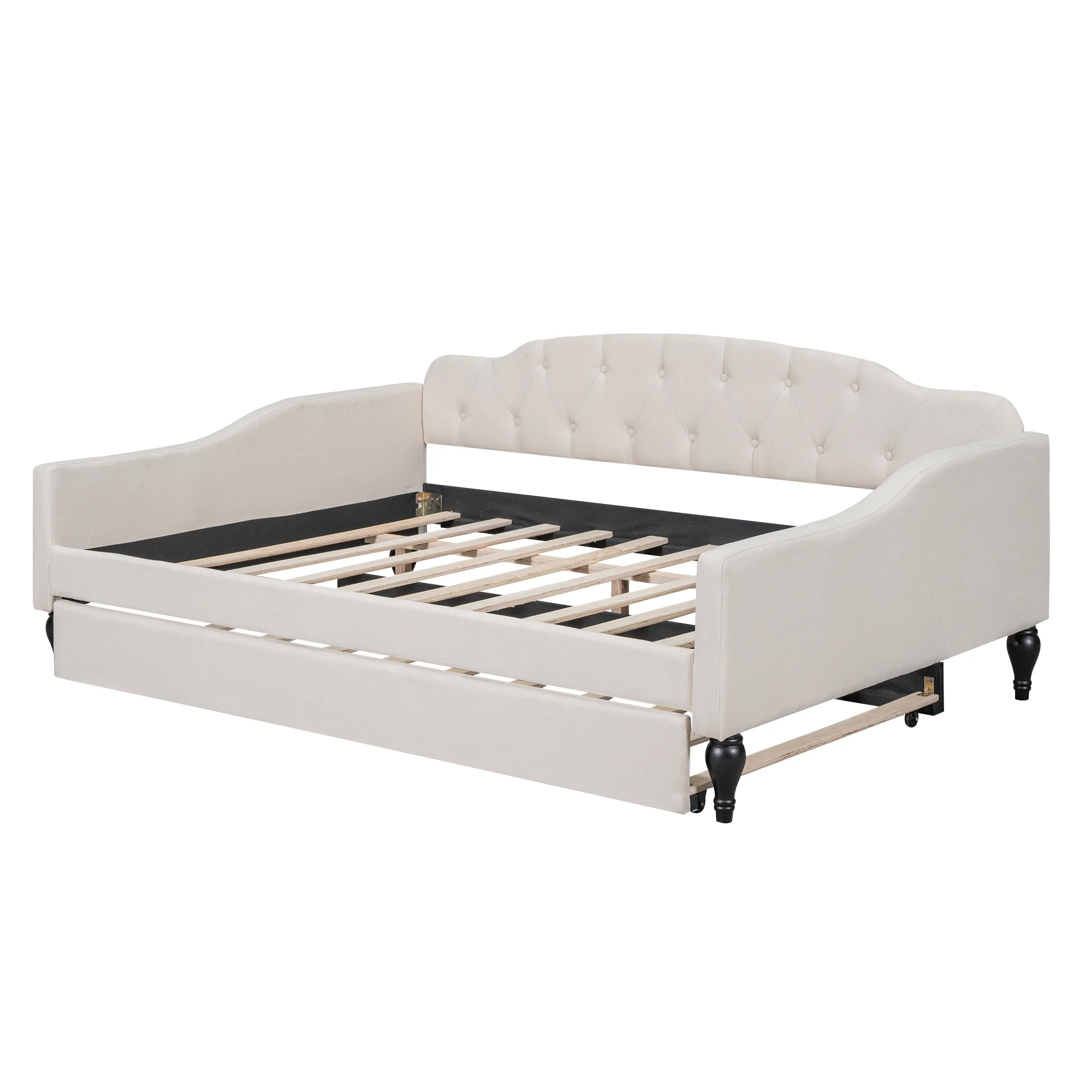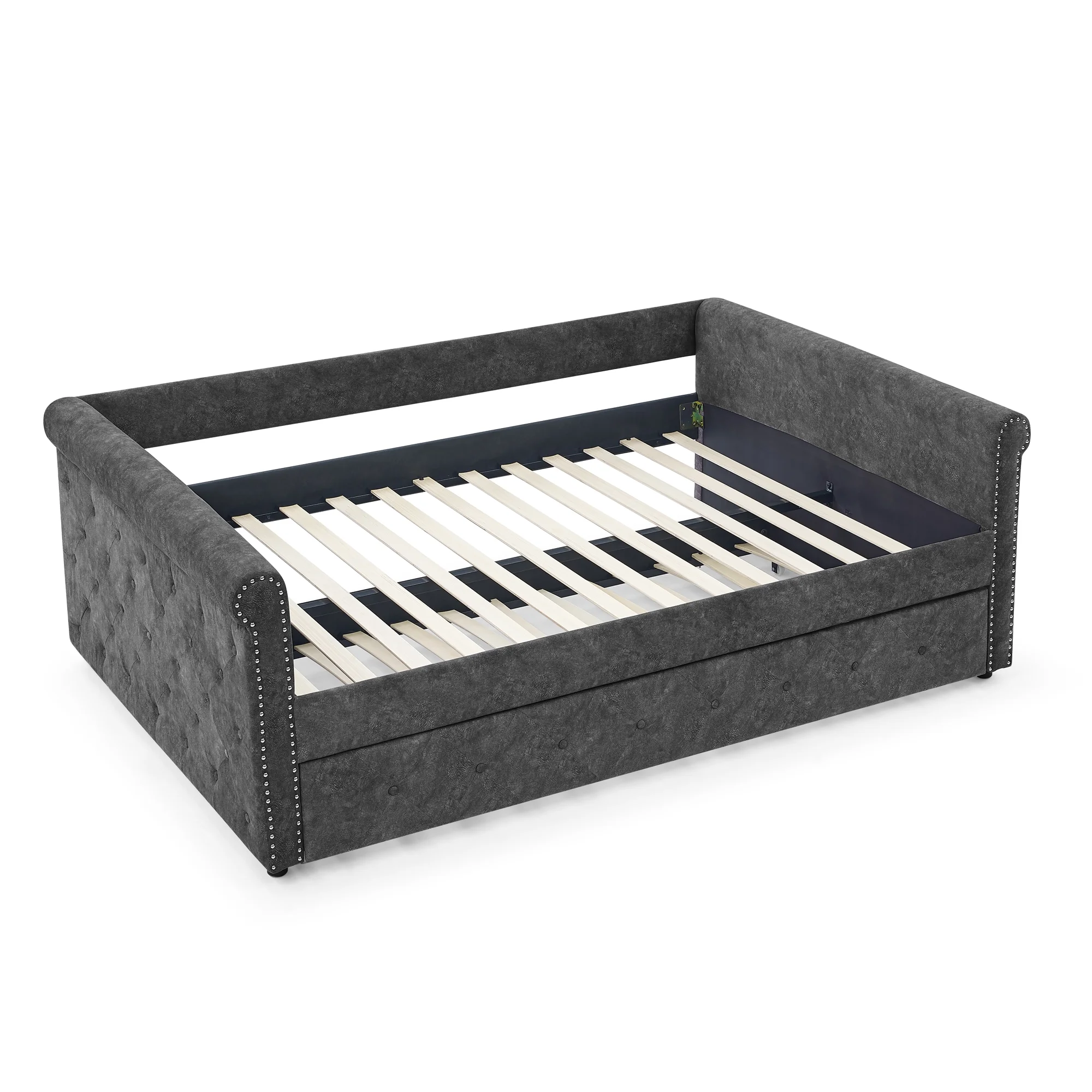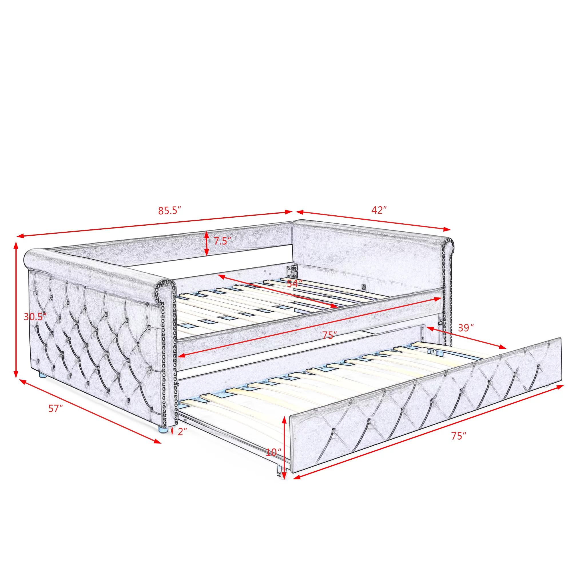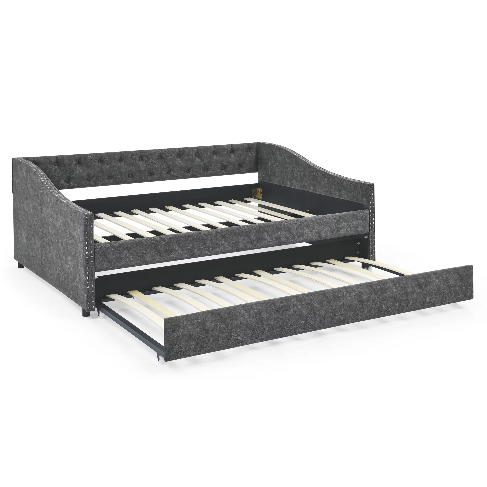 Trundle Upholstered Tufted Sofa Bed Daybed with Button and Copper Nail on Arms