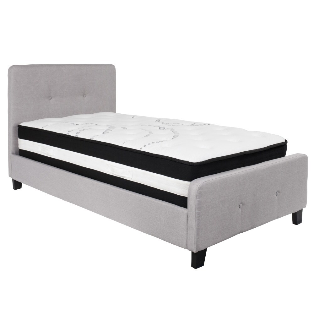 Flash Furniture Button Tufted Upholstered Platform Bed with Pocket Spring Mattress Light Gray Twin