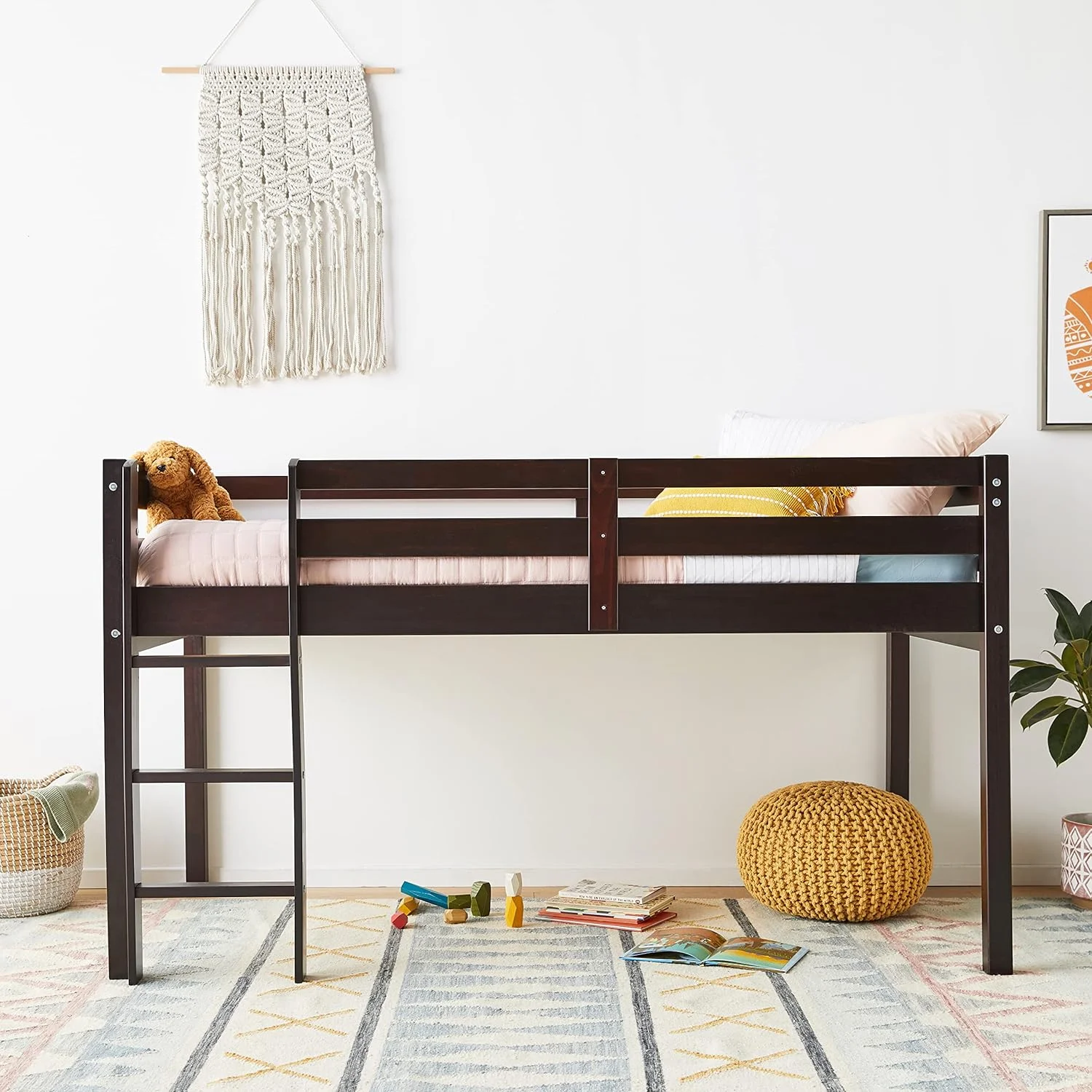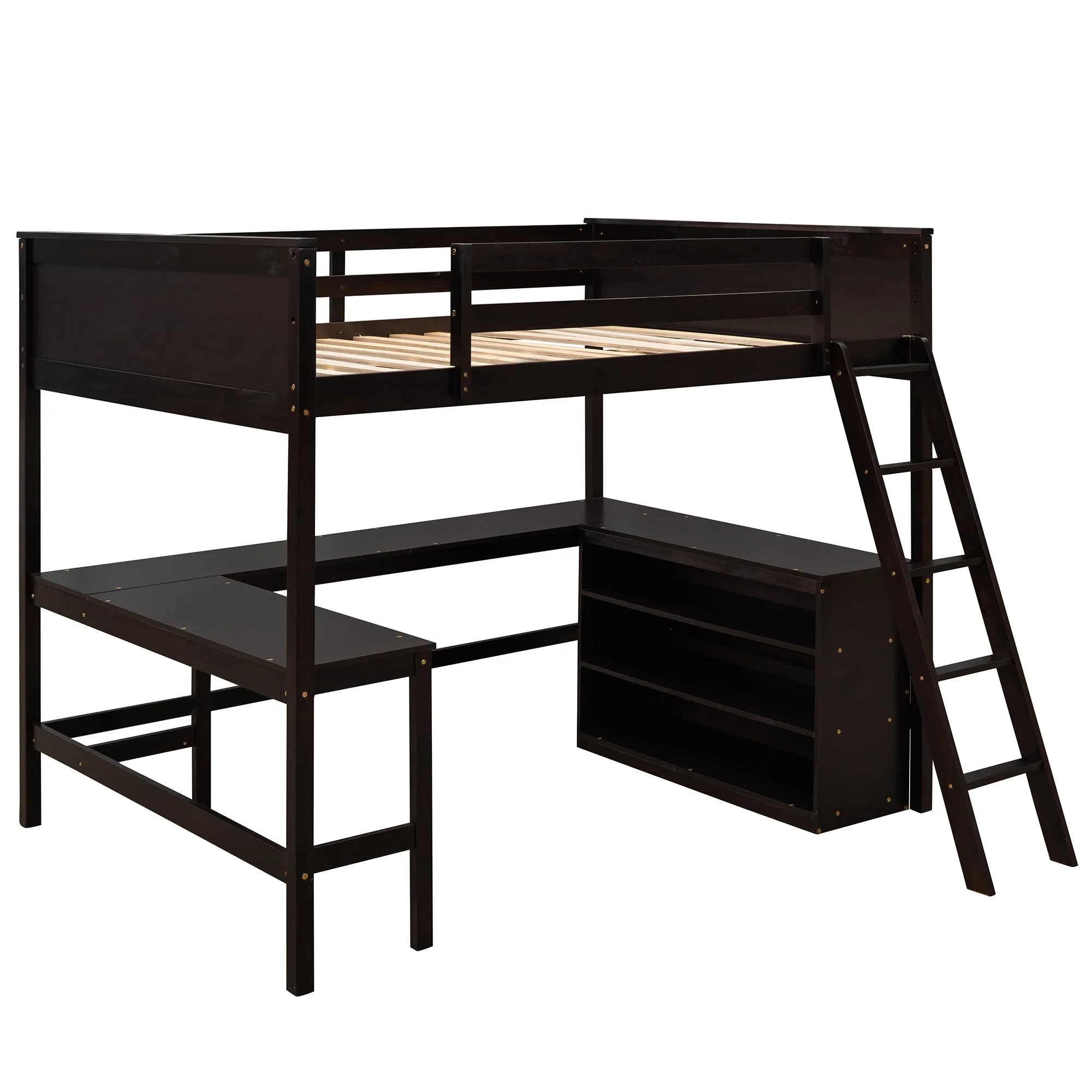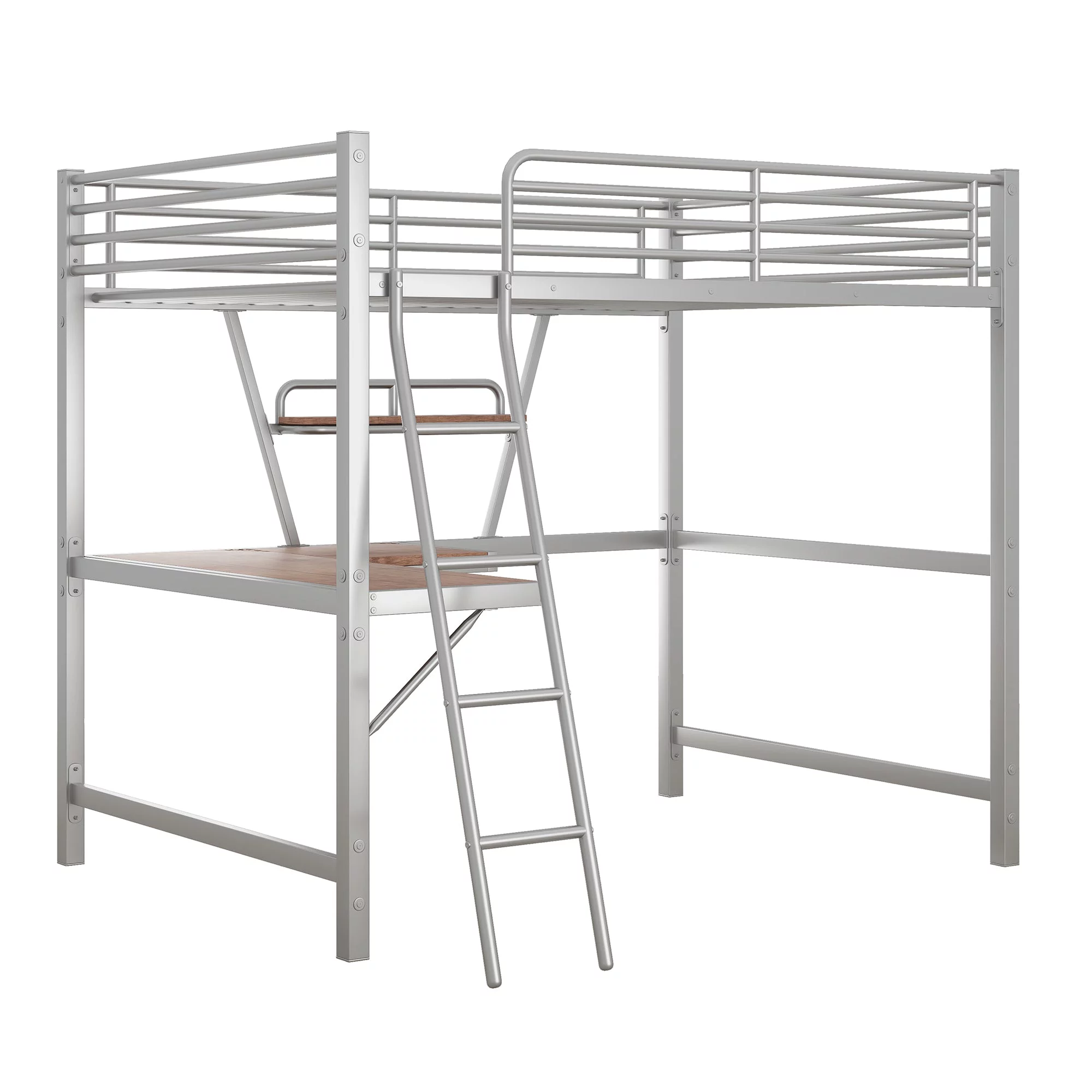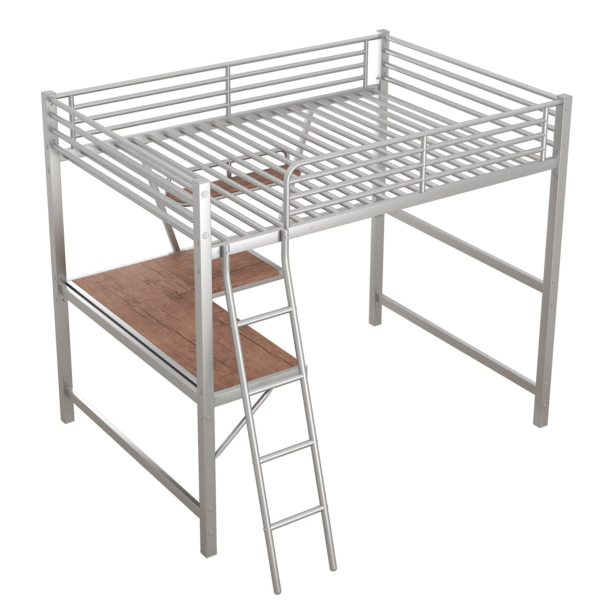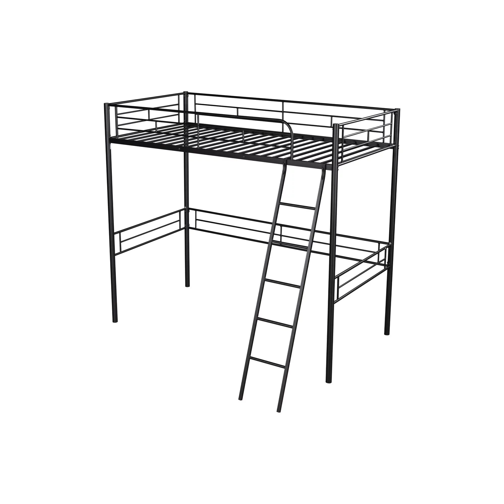 Metal Lfot Bed, Loft Bed With Ladder & Guardrails, Size Loft Bed Frame, No Box Spring Needed (Black, Loft)