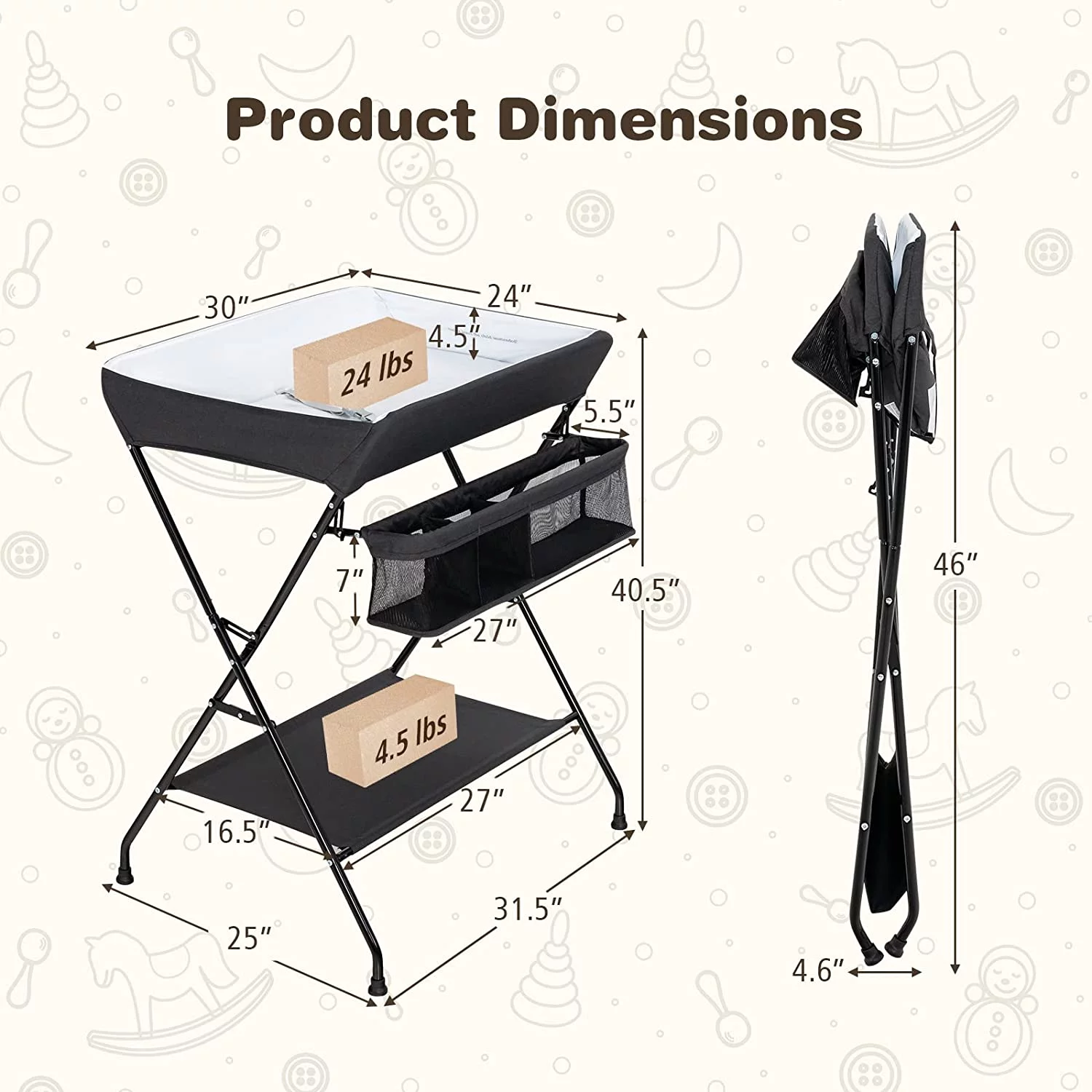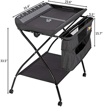 LALAHO Folding Baby Changing Table,Diaper Table,Lockable Wheels,Storage Basket, Black