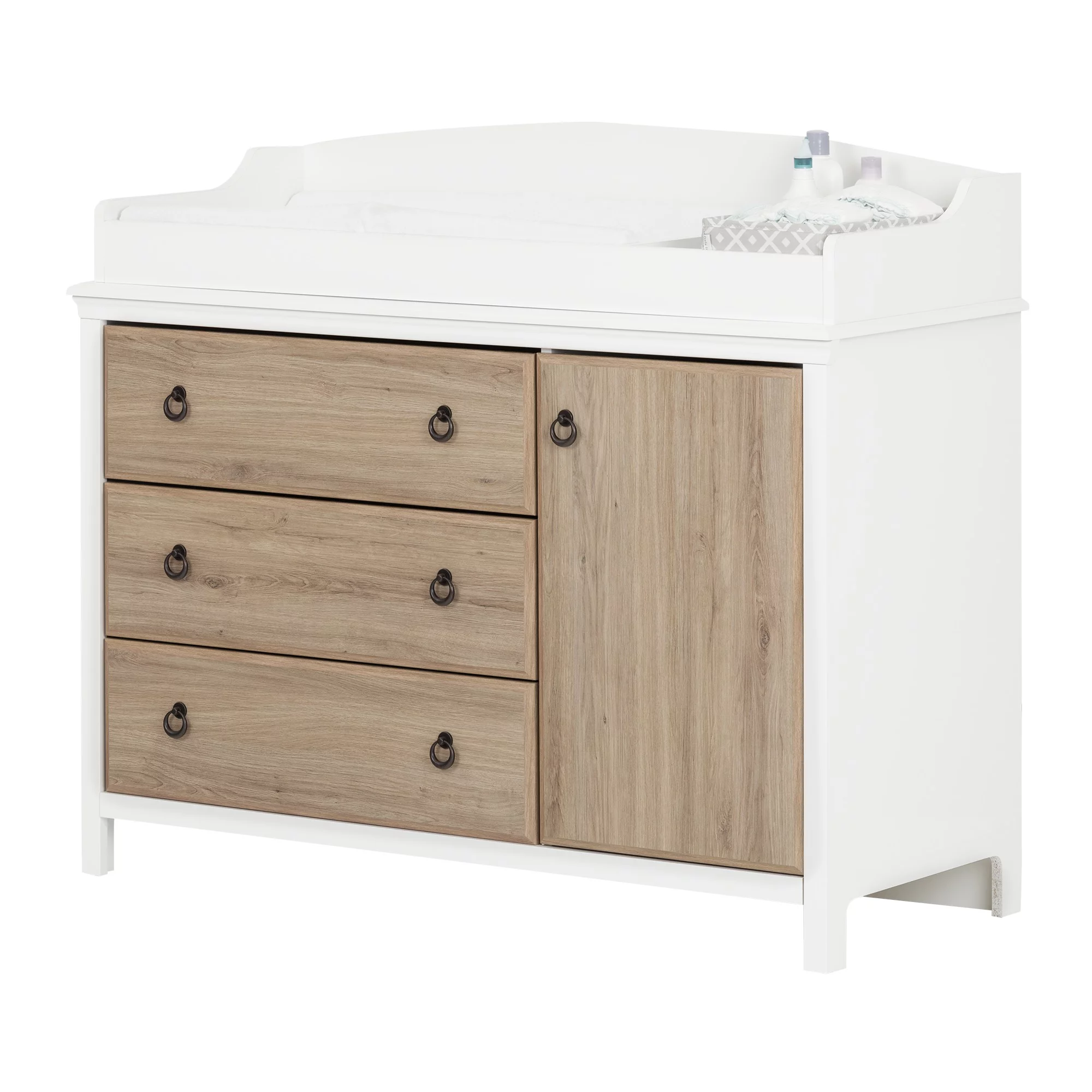South Shore Catimini Changing Table with Removable Changing Station, Pure White and Rustic Oak