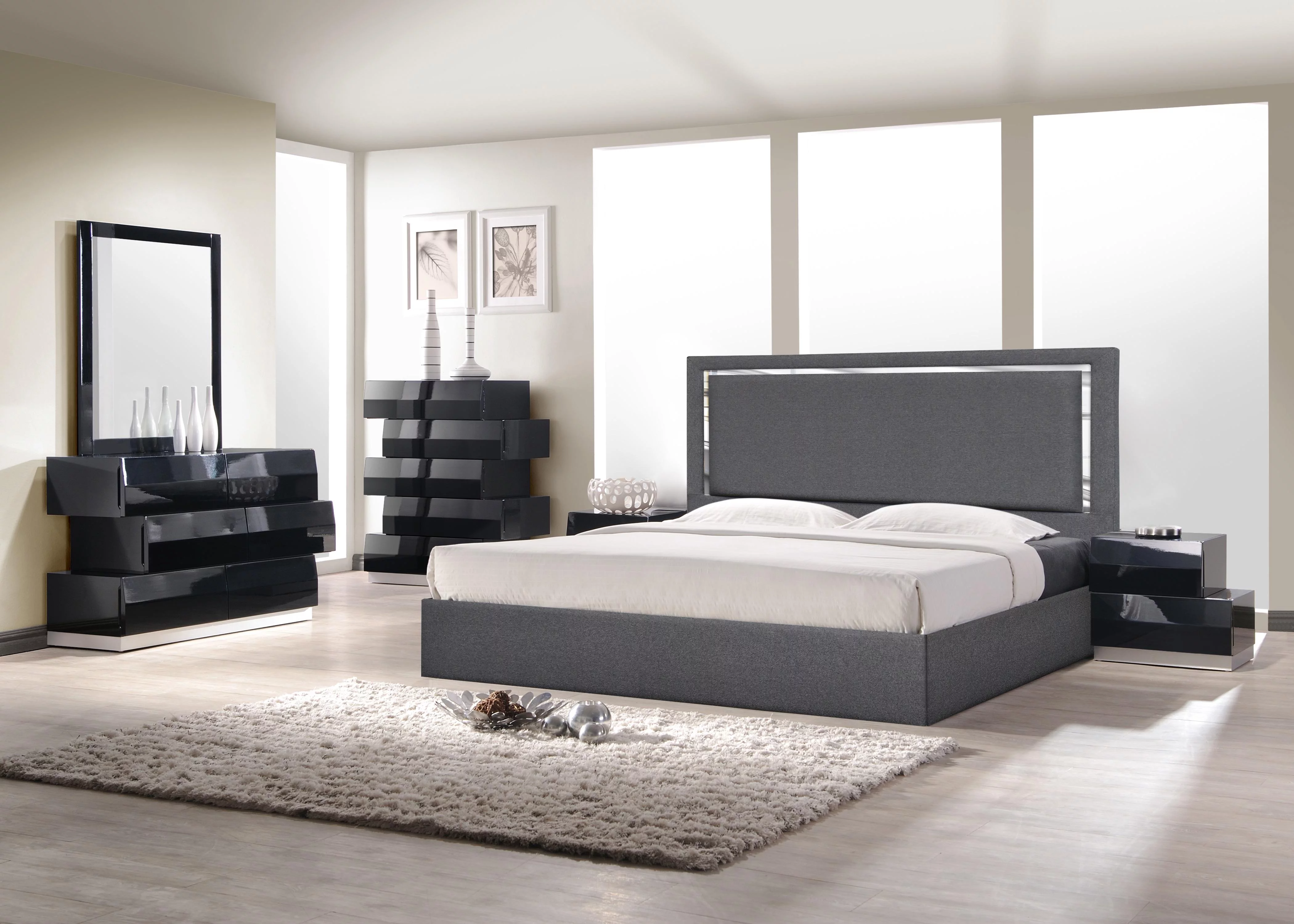 Charcoal Woven Canvas Fabric King Platform Bed Contemporary J&M Monet