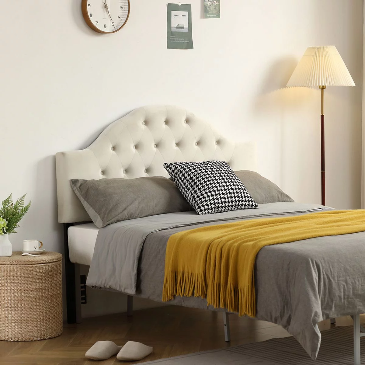 Bornmio European Style Curved Buckle Decoration Iron Frame Soft Bag Headboard White